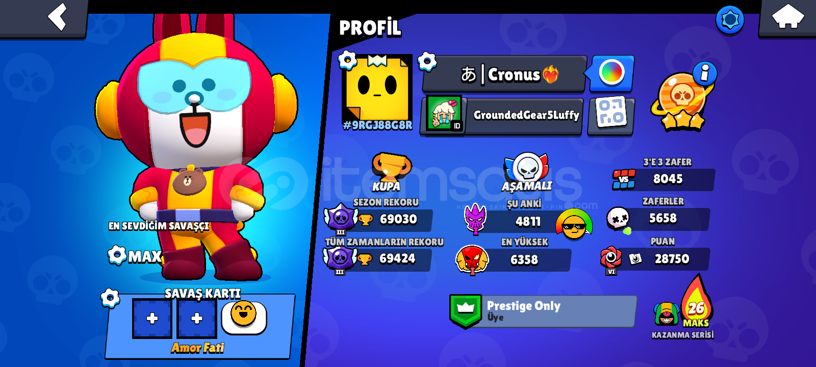 2 Defa efsanevi olunmuş hesap 6x bp plus ve 1x Bp 87 ender 98 Süper Ender 117 destansı 8 gizemli 10 efsanevi kostüm ve 8 hiperjarj...