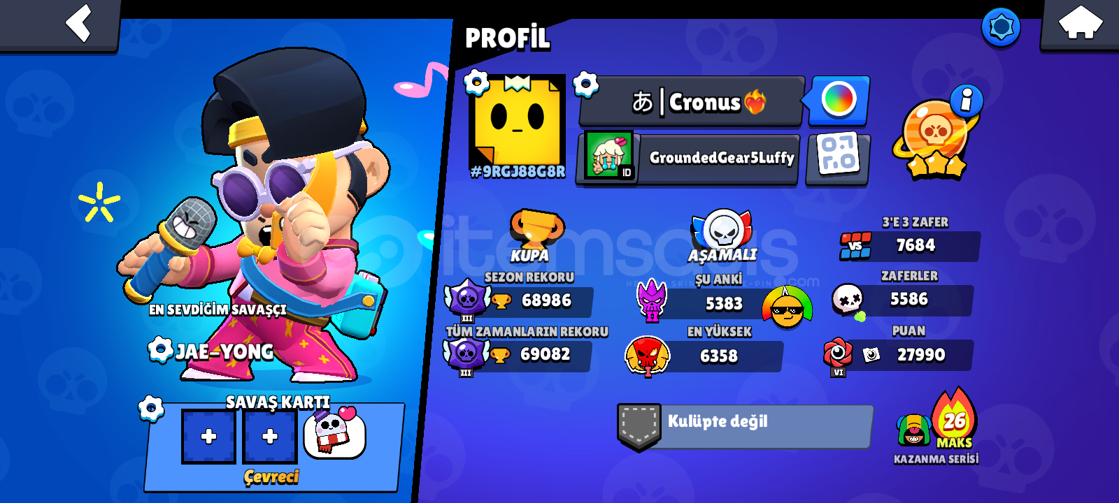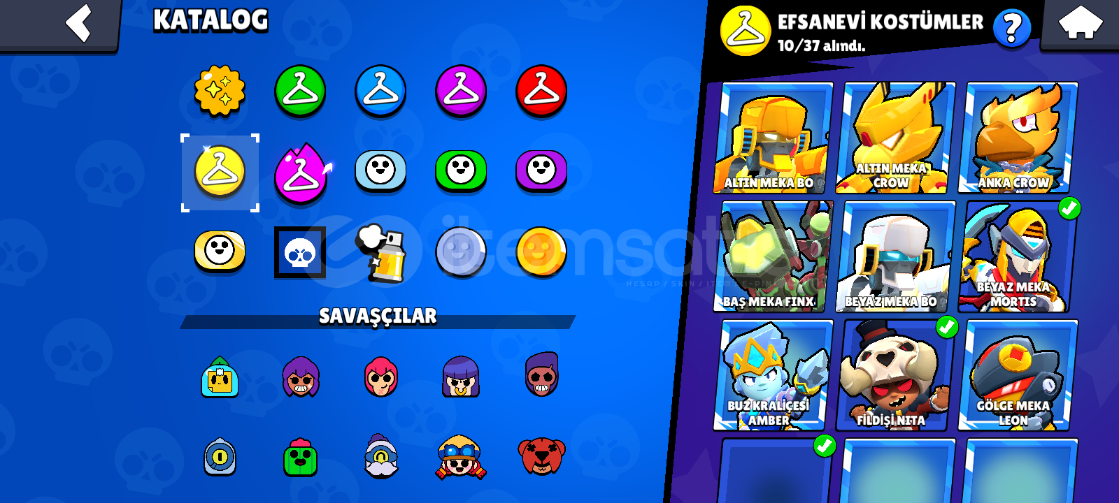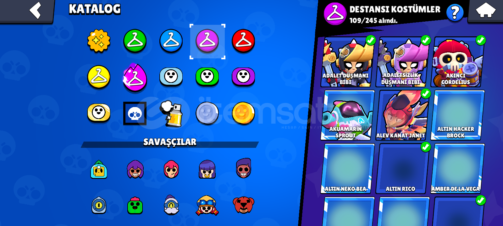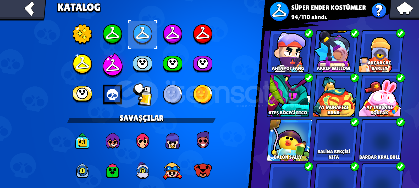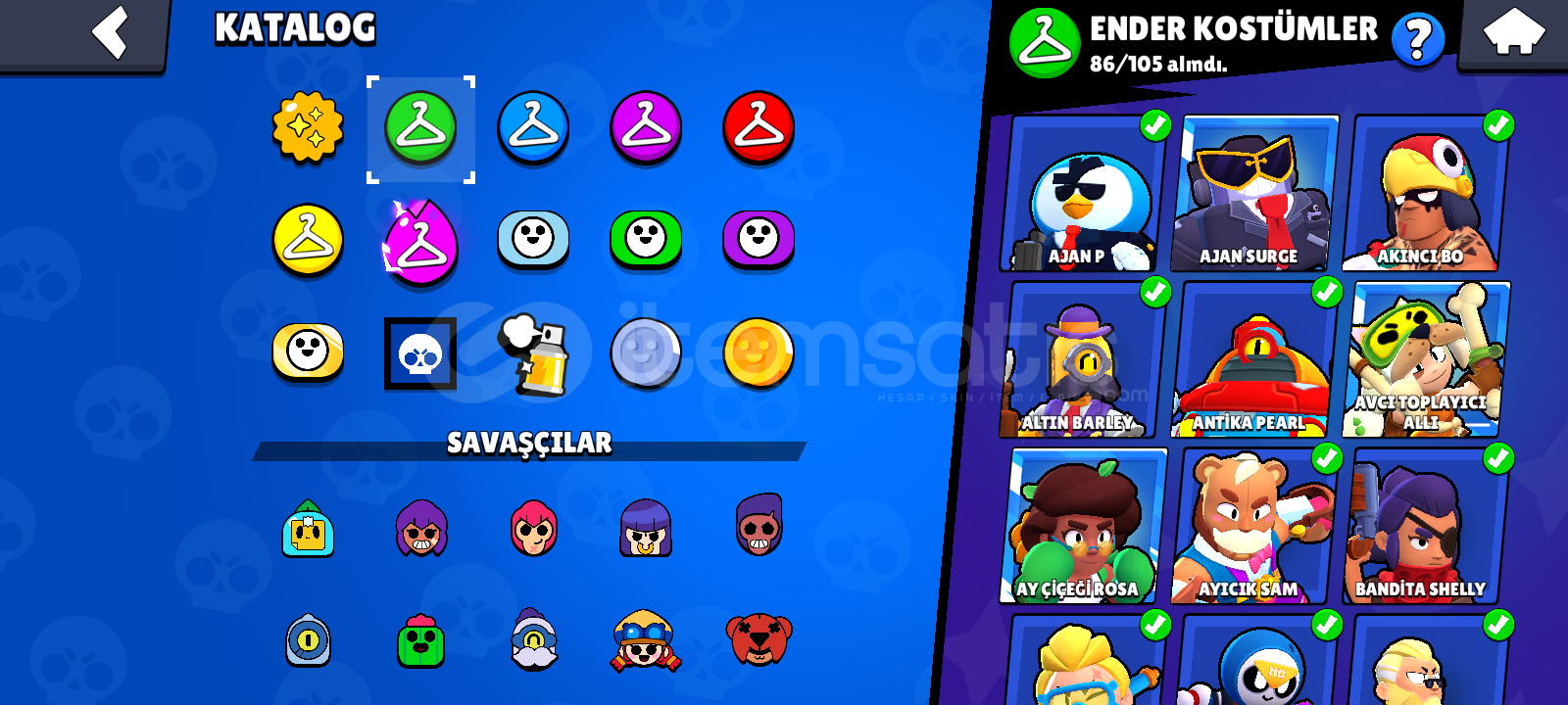2 Defa efsanevi olunmuş hesap 6x bp plus ve 1x Bp 86 ender 94 Süper Ender 109 destansı 8 gizemli 10 efsanevi kostüm ve 8 hiperjarj kostümü vardır