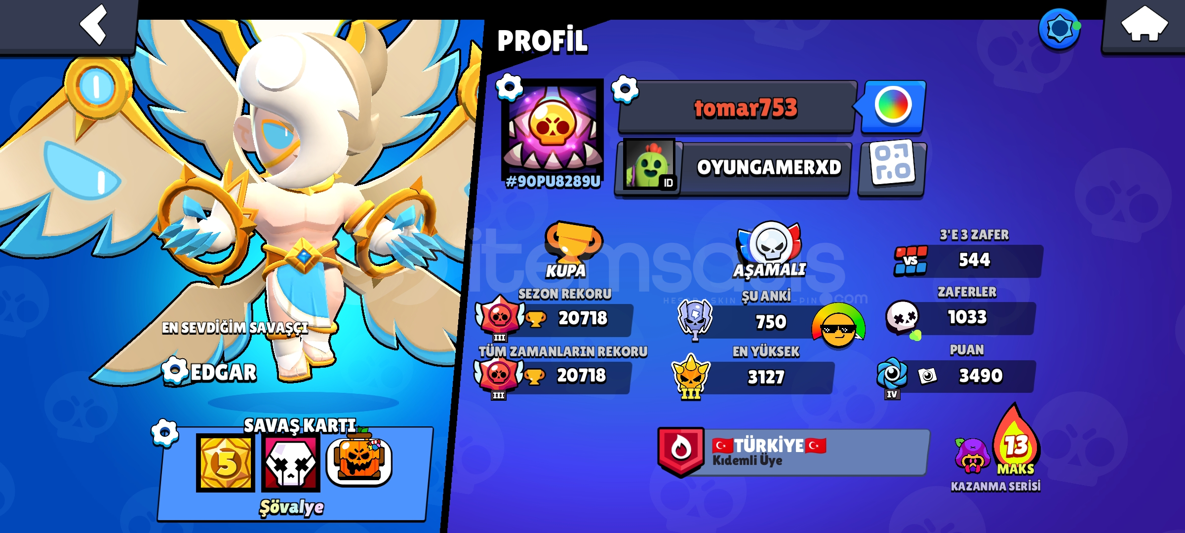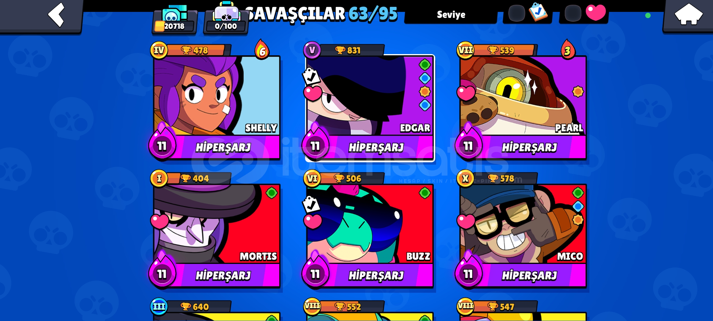 Hesabın Özellikleri 20.178 Kupa 63 Savaşçı 11 tane Karakterin Hiperşarjı Önceki Brawl Plus Ödüller...
