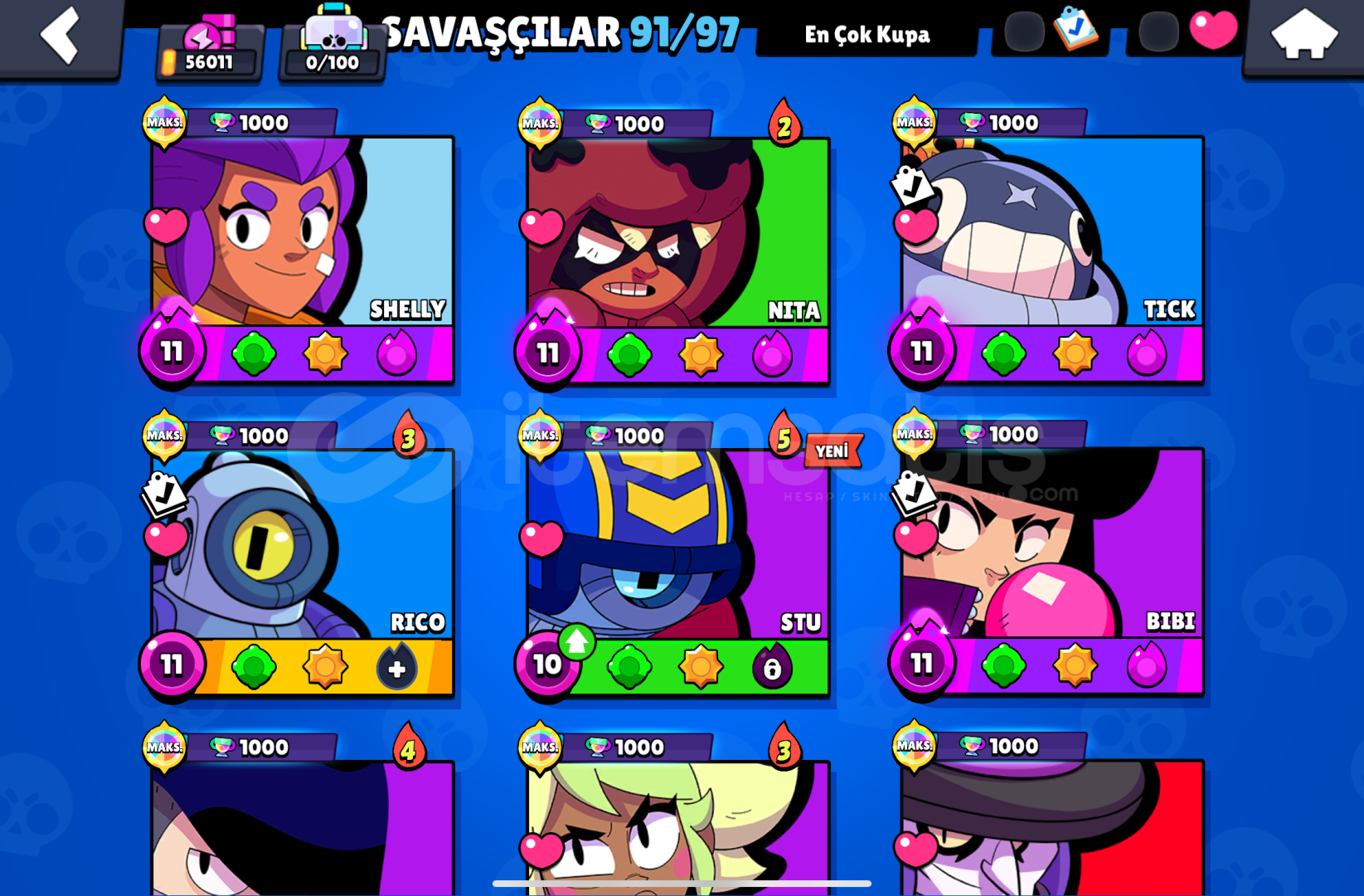 brawl stars hesap 56k kupa hesapta 88 taş var hesap hem emek hemde para da yatırılmıştır uyguna hesap