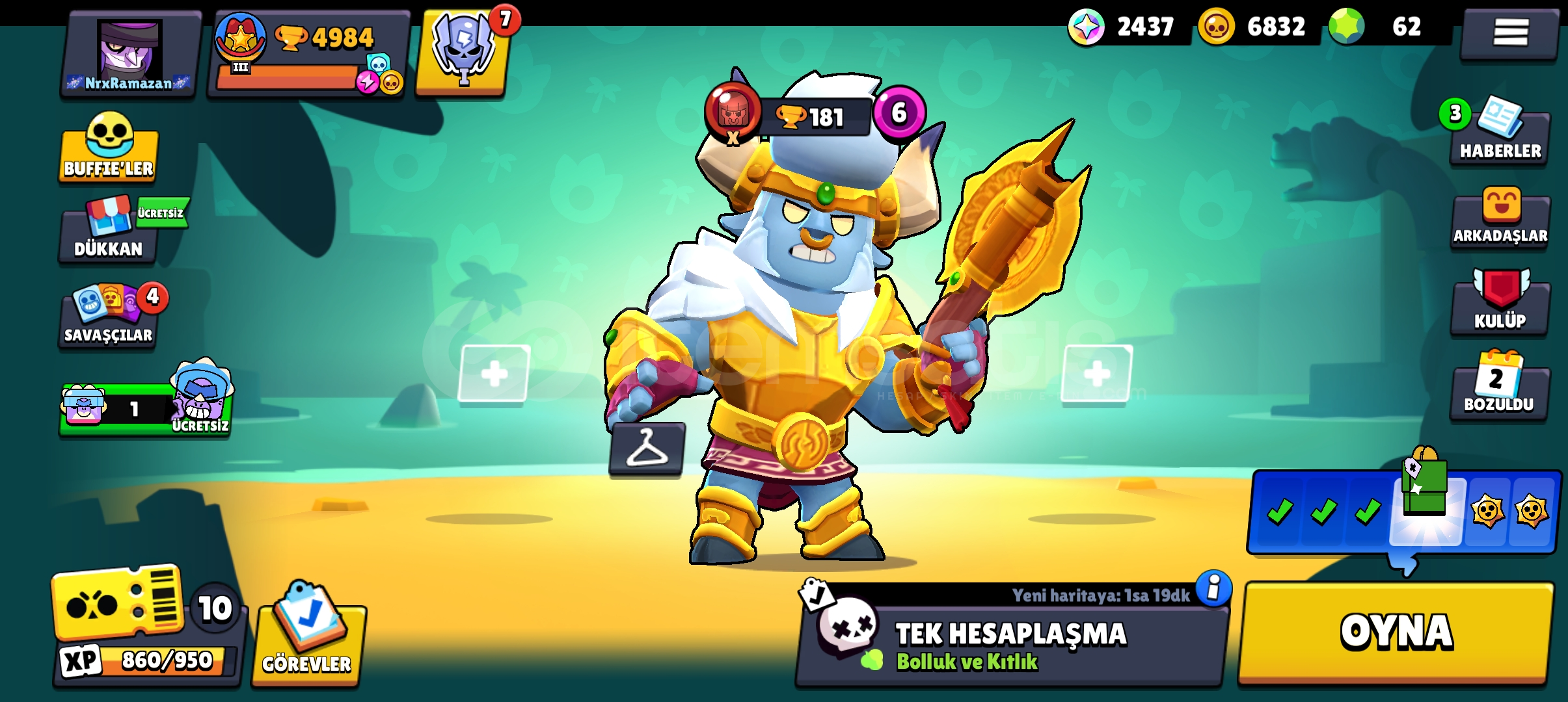 Hesap 5k Kupa oynamadigimdan dolayı satıyorumHesapta 62 taş var isim degisebilirsiniz 60 taş veripMaili değişecekBaykuş Shelly gibi guzel kostümler var HesaptaAlana Hayırlı Olsun