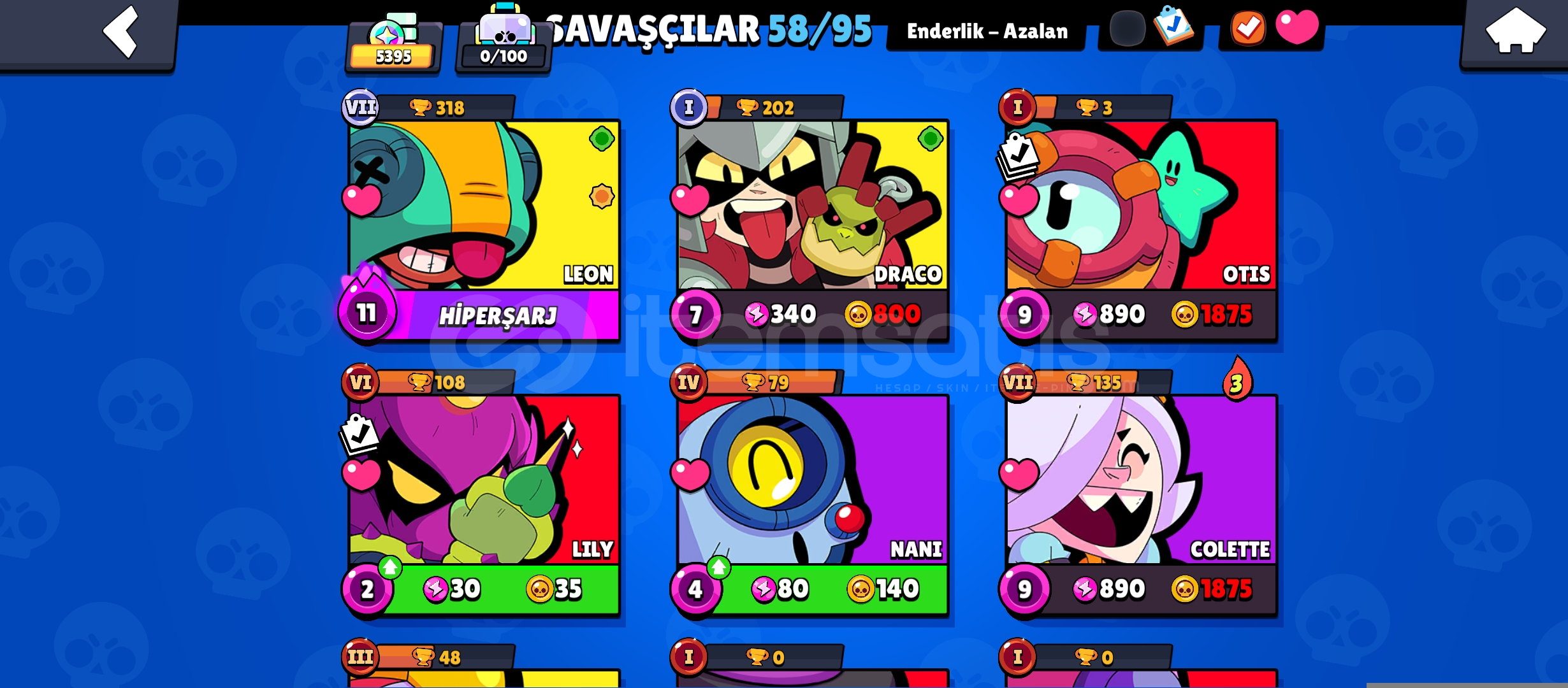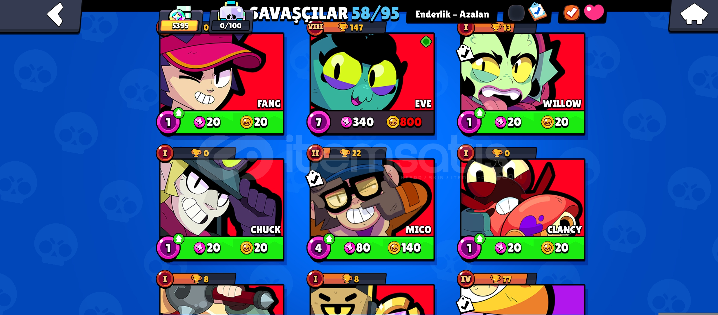 Öncelikle merhabalar hesap mail değişimine açıktır hesabın maili direk devredilir Geri çekilme lüksü asla yokturhesapta 5k kupa 58 karakter ve birsürü şey varBrawl pass acık değil ama fullendi 10k dan fazla yükseltme puanı vardır