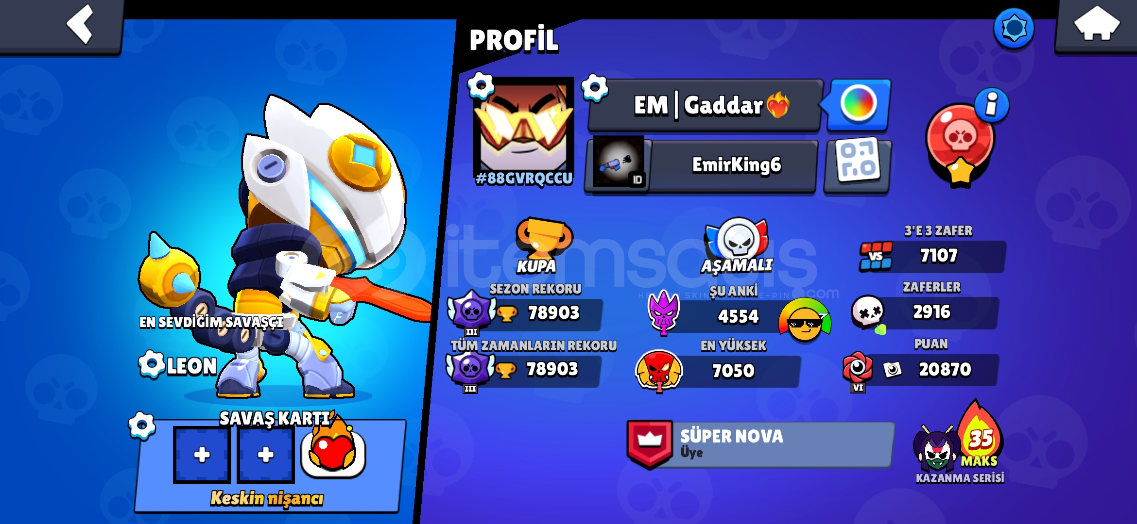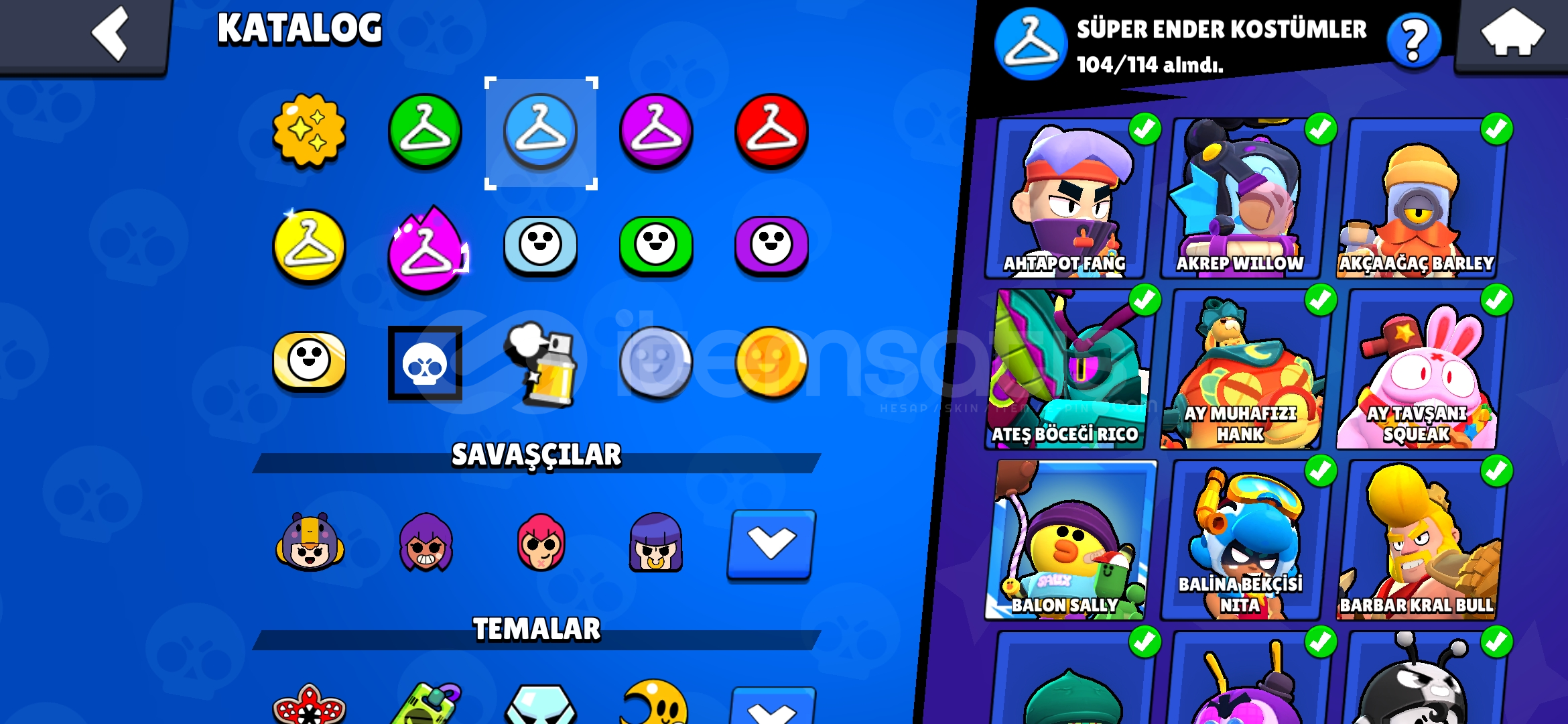 Hesap bilgileri 78900 kupa95 karekter var Hesap 2020 de açılmıştır19 Max lvl karakter 48 Max Rank karekter 6 Ünvan 3 Yıldız aşamalı efsanevi 20800 kayıt seviyesi 69 Ender kostüm 104 süper Ender kostüm 76 destansı kostüm 7 gizemli kostüm 5 efsanevi kostüm 7 hyper şarj kostüm 113 sıradan rozet 42 Ender rozet 19 destans...