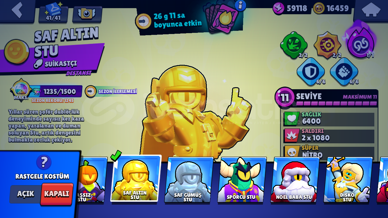 CR HESABI İSE 7,5K 5 EVRİM 2 BP 7 KULE KÖSTÜMLÜ HESAP
