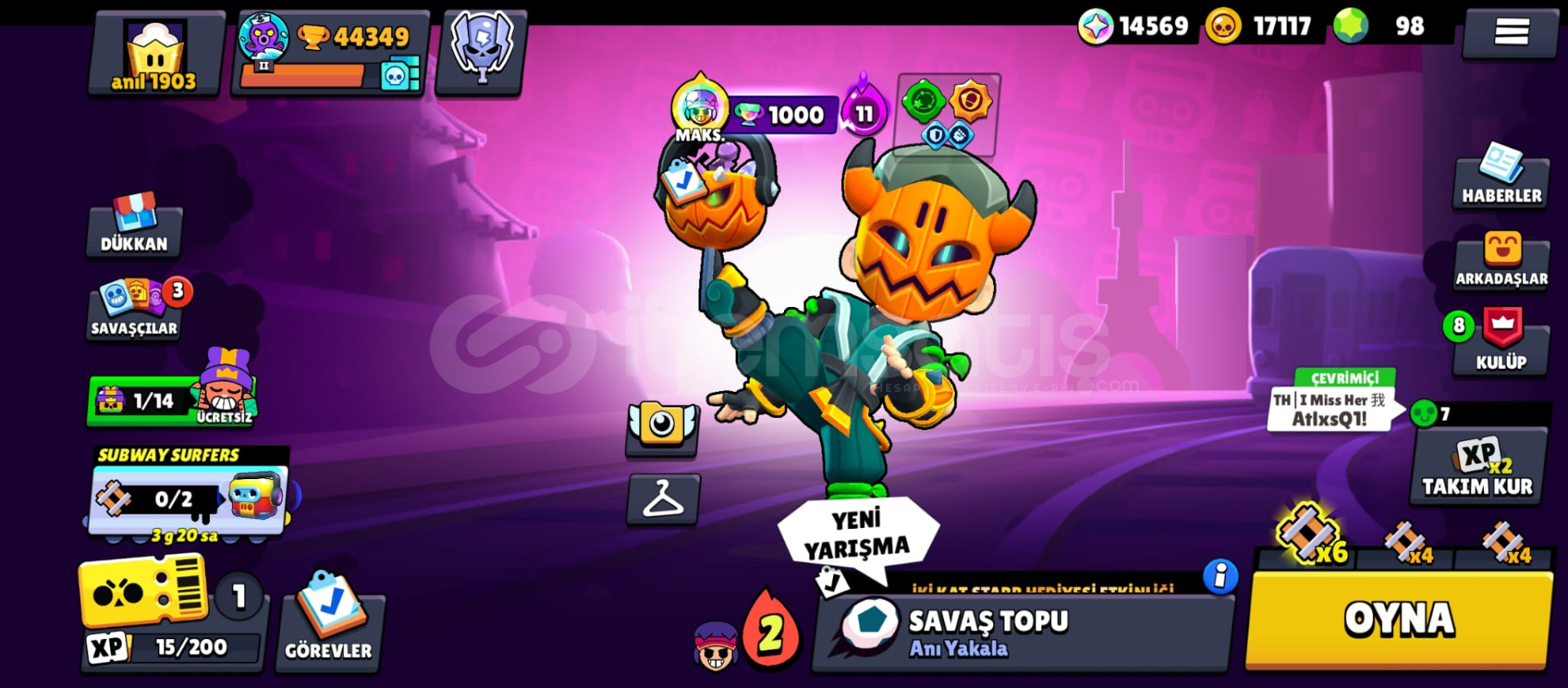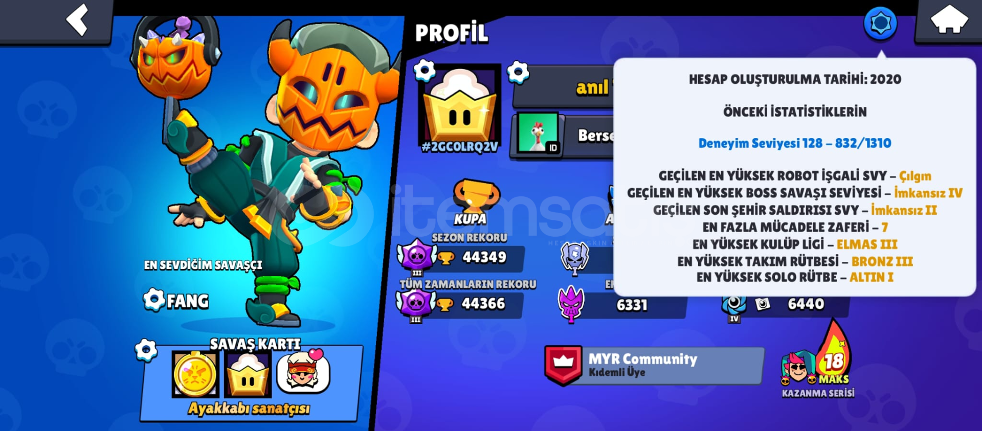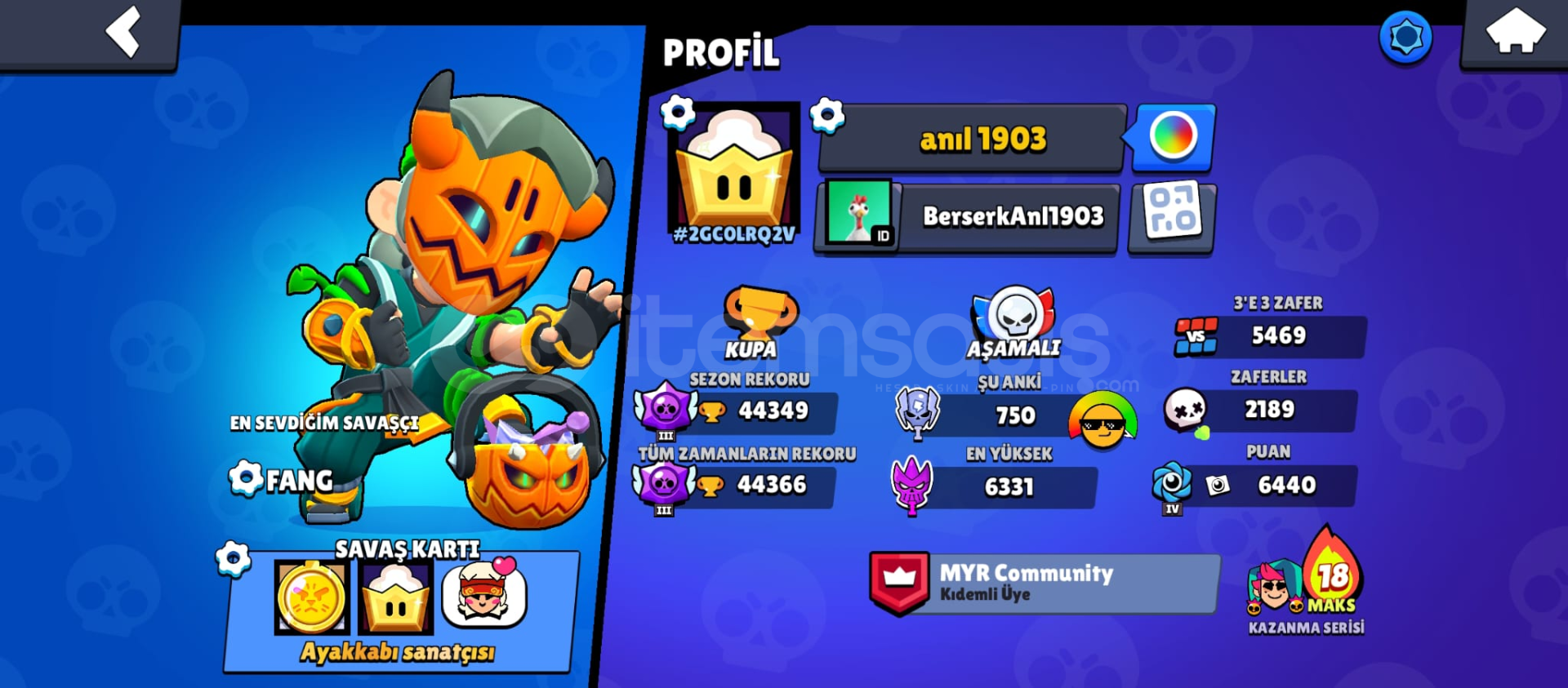 89 karakter 63 Ender 63 Süper Ender 38 destansı 4 gizemli 1 efsanevi 2 iper şarj 4 tane nadir PSG shelly retro nani red wizard barley college emz en nadir kostümler 2020 hesap 18 kazanma seviyesi toplam 170 skin 2 brawl pass1 tane brawl pass en iyisi açıldı en yüksek aşamalı seviyesi gizemli 1 98 elmas 6440 kayıt seviyesi2 ünvan toplam 217 rozet 96 spreyler 211 oyuncu simgeleri 14569 mücevher 6072 güç puanı 17117...