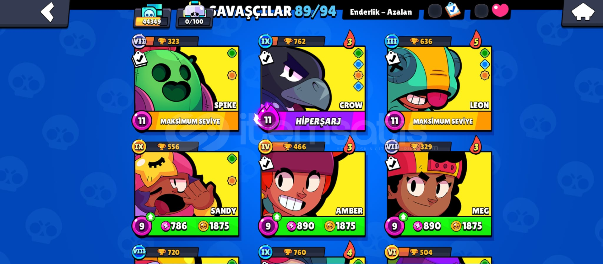 89 karakter 63 Ender 63 Süper Ender 38 destansı 4 gizemli 1 efsanevi 2 iper şarj 4 tane nadir PSG shelly retro nani red wizard barley college emz en nadir kostümler 2020 hesap 18 kazanma seviyesi toplam 170 skin 2 brawl pass