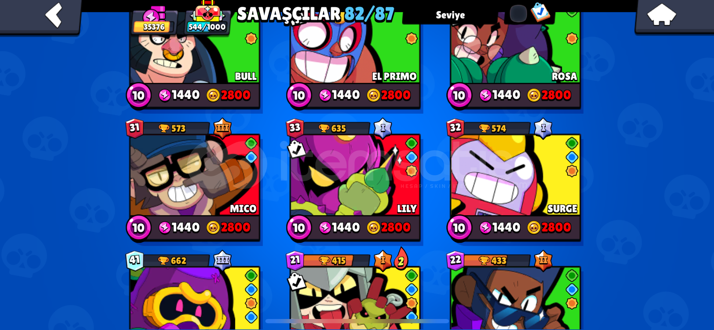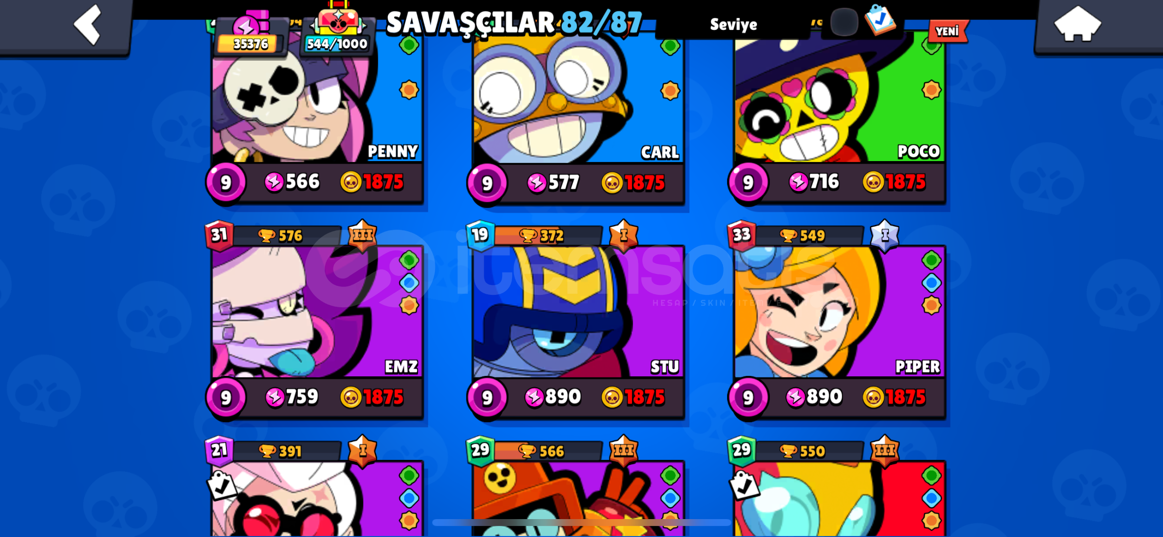kostümler36 ender kostüm29 süper ender20 destansı 1 gizemli direk mail verilicektir.9 karakter hiperle beraber full leveldir 11 maks level karakter diğerleri ortaya karışıktırClash of clans hesabıyla değişim olur15 belediye ve üstüşuan güncel olarak 87 karakter fotolar güncel değildir