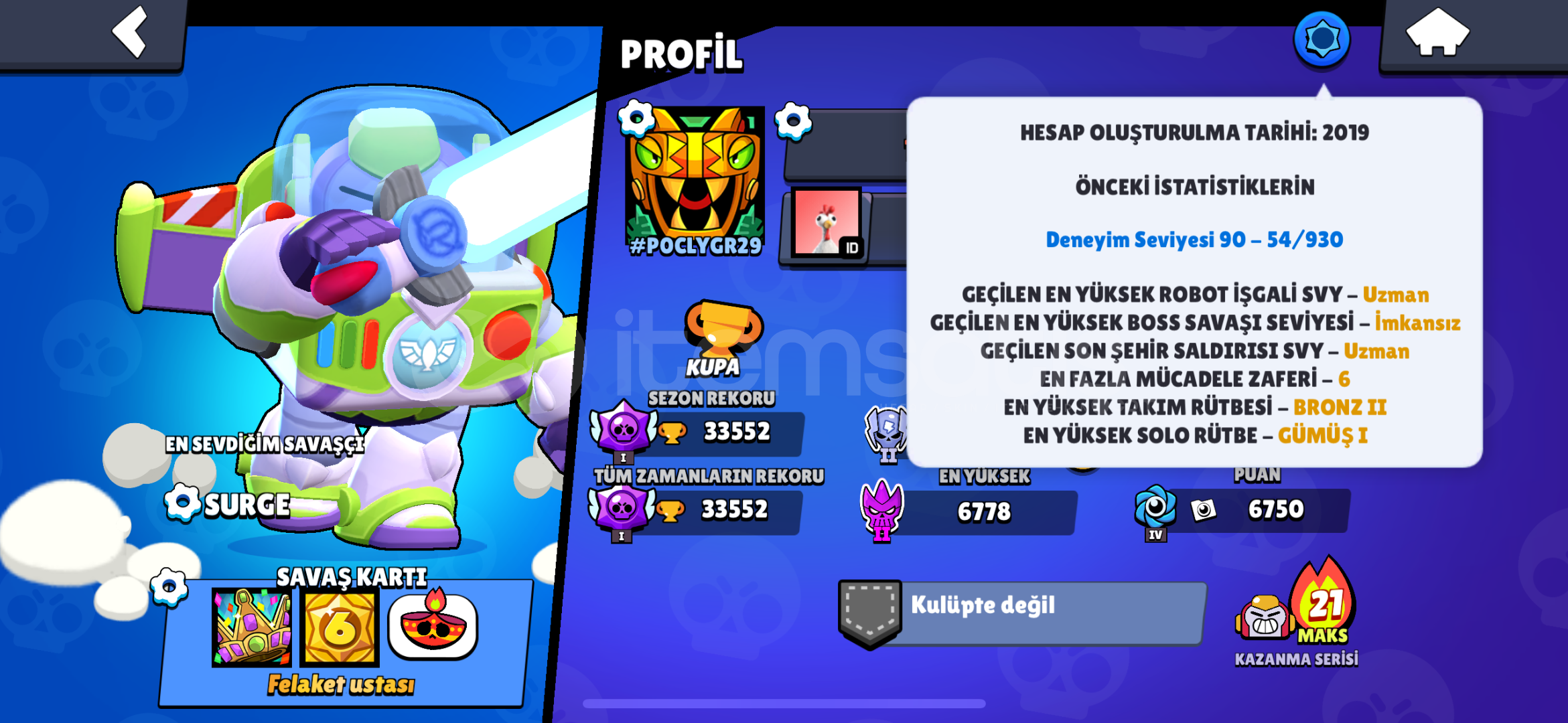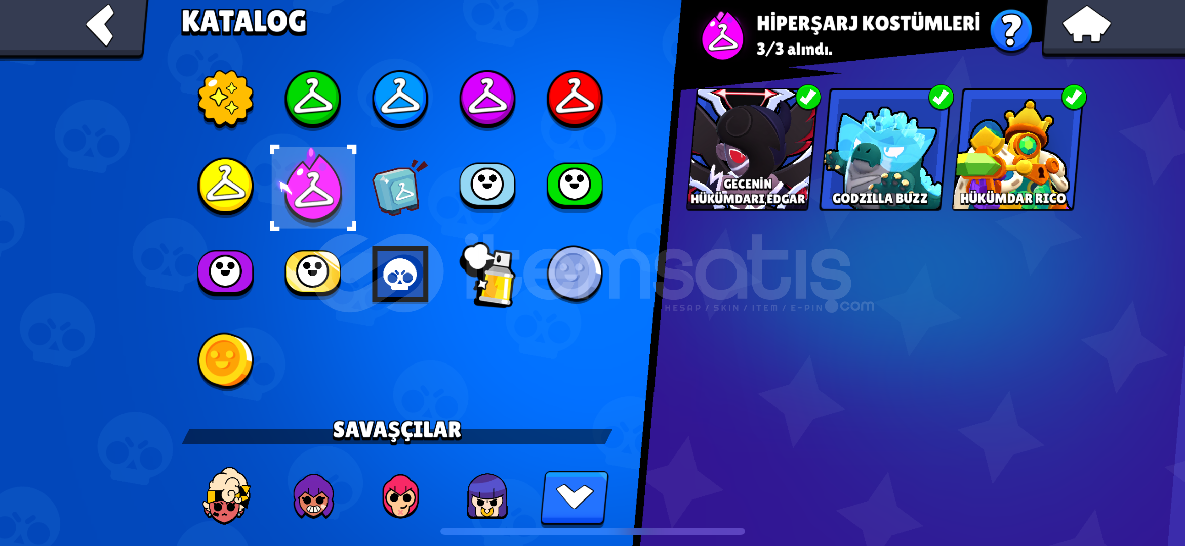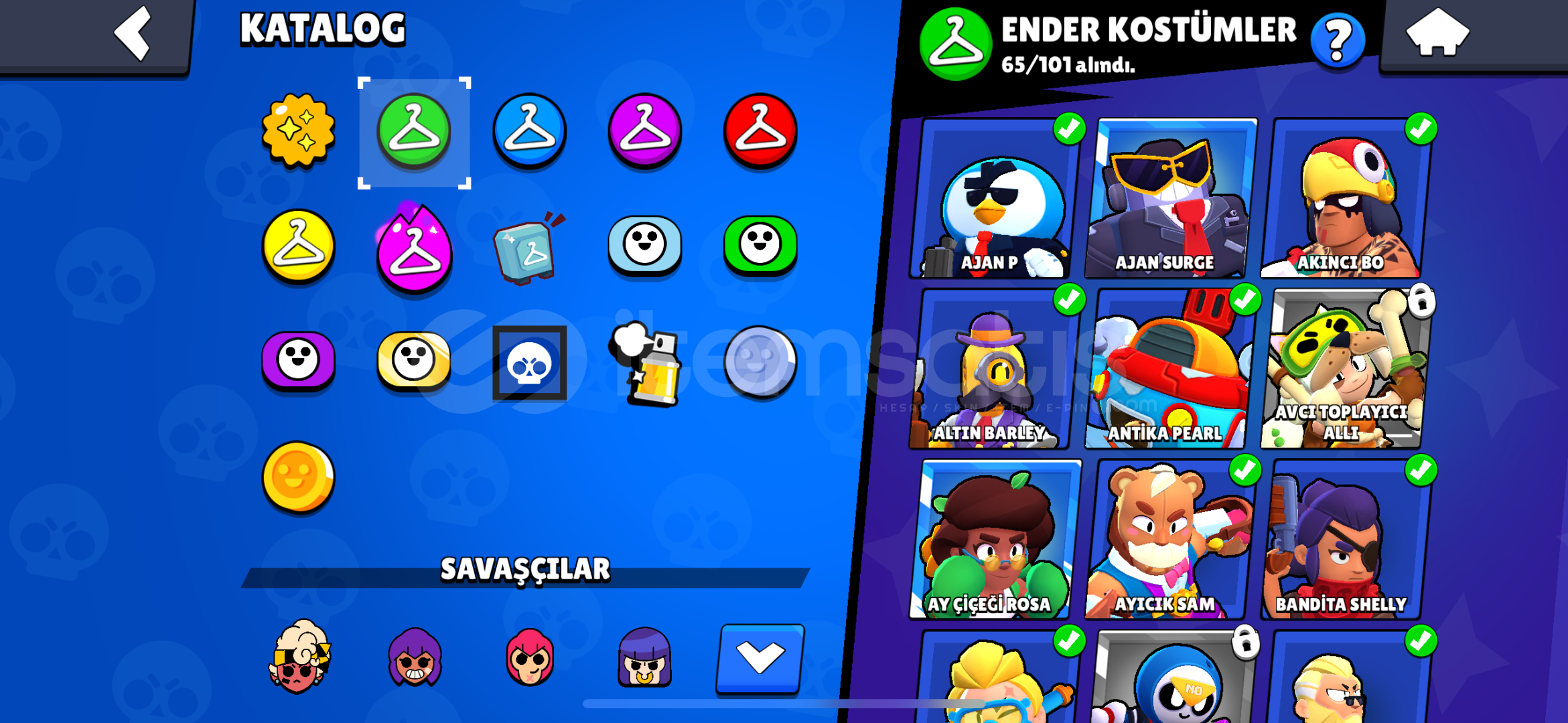 öncelikle merhaba öncelikle brawls star hesabı 33 k şuan hesabı özetlicek olursam 82 karakter ve 136 skin vardır 21 karakterde hiper şarz vardır 2 ünvan ve bazı ender kostümler GECENİN HÜKÜMDARI EDGAR GODZİLLA BUZZ HÜKÜMDAR RİCO 89 rozet 25 emoji vardır ayriyetten içinde 5 bin kupalıl clas royale 18 level hayday 20 level clasofclans vardır hesap İLK MAİLLE VERİLECEK...
