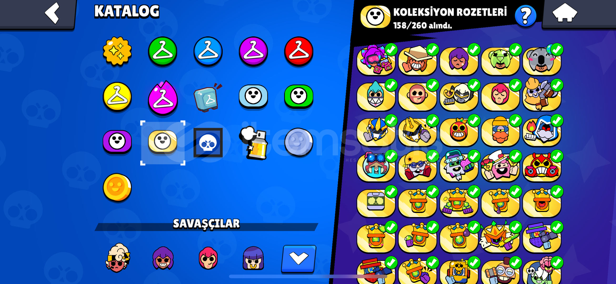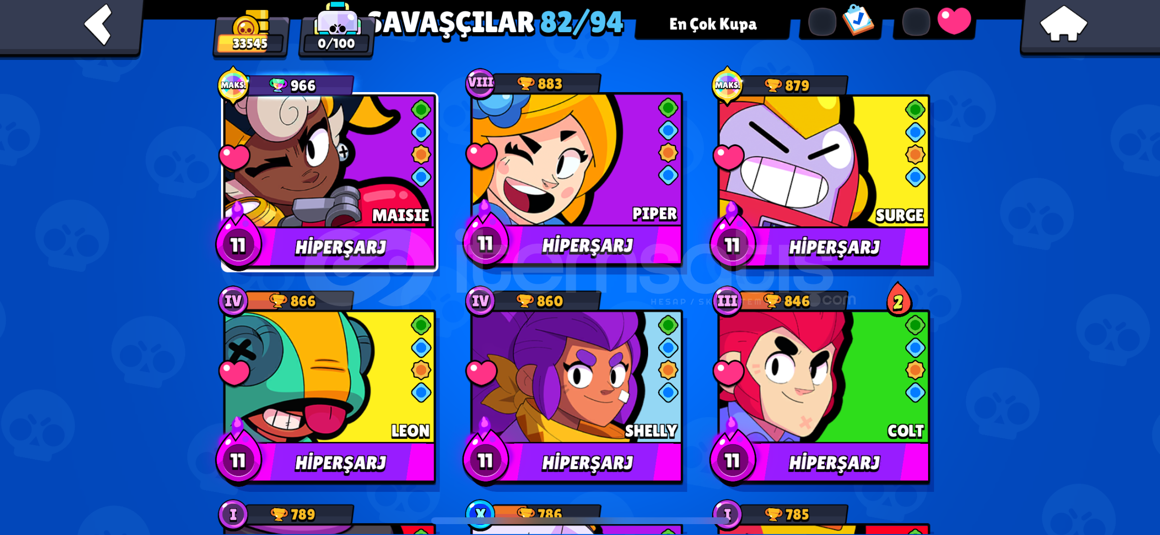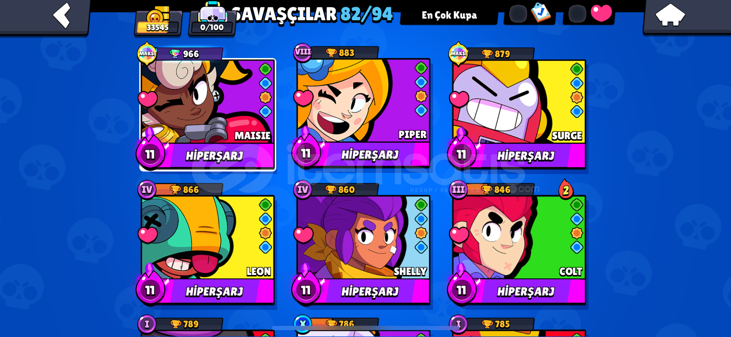 öncelikle merhaba öncelikle brawls star hesabı 33 k şuan hesabı özetlicek olursam 82 karakter ve 136 skin vardır 21 karakterde hiper şarz vardır 2 ünvan ve bazı ender kostümler GECENİN HÜKÜMDARI EDGAR GODZİLLA BUZZ HÜKÜMDAR RİCO 89 rozet 25 emoji vardır ayriyetten içinde 5 bin kupalıl clas royale 18 level hayday 20 level clasofclans vardır hesap İLK MAİLLE VERİLECEKTİR .