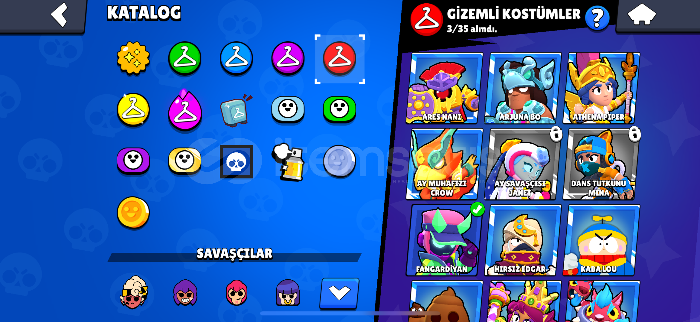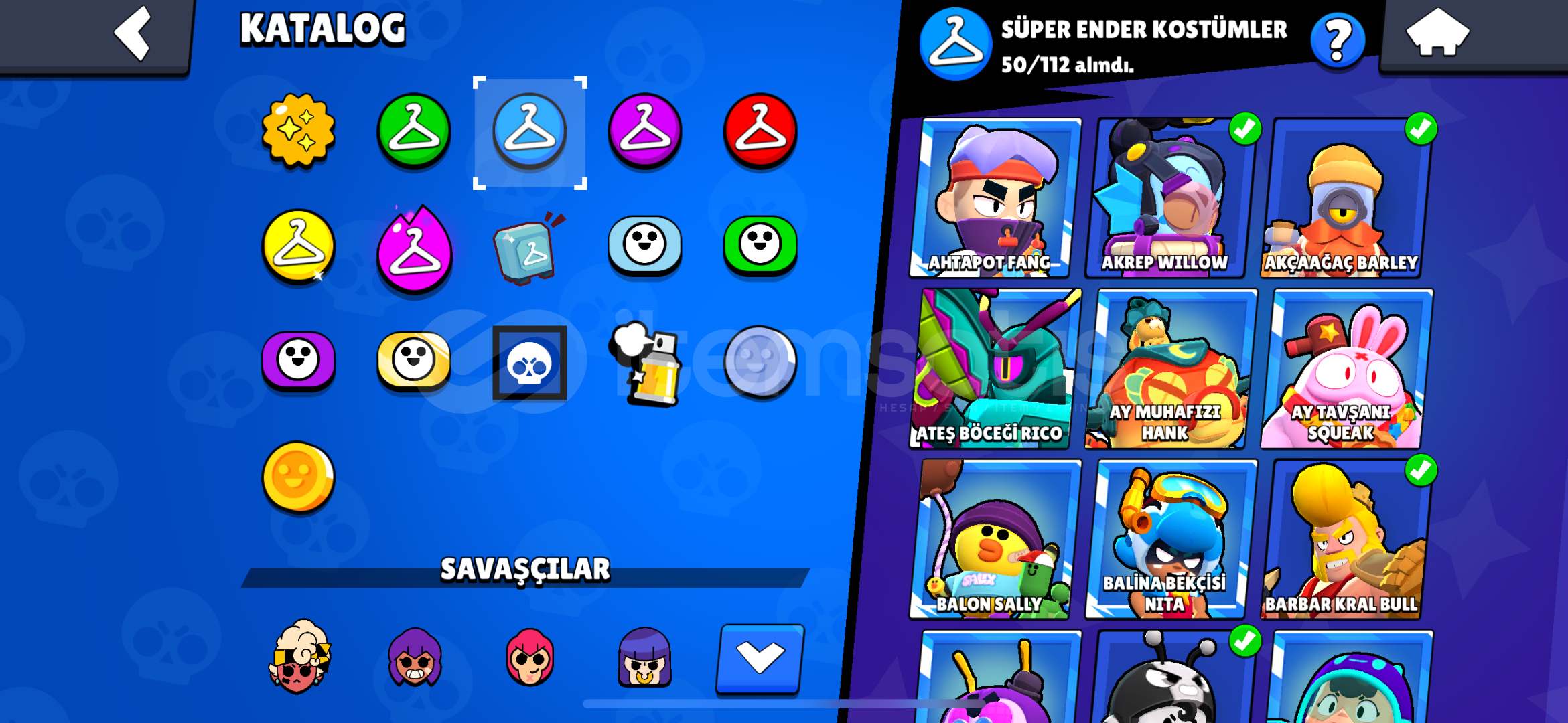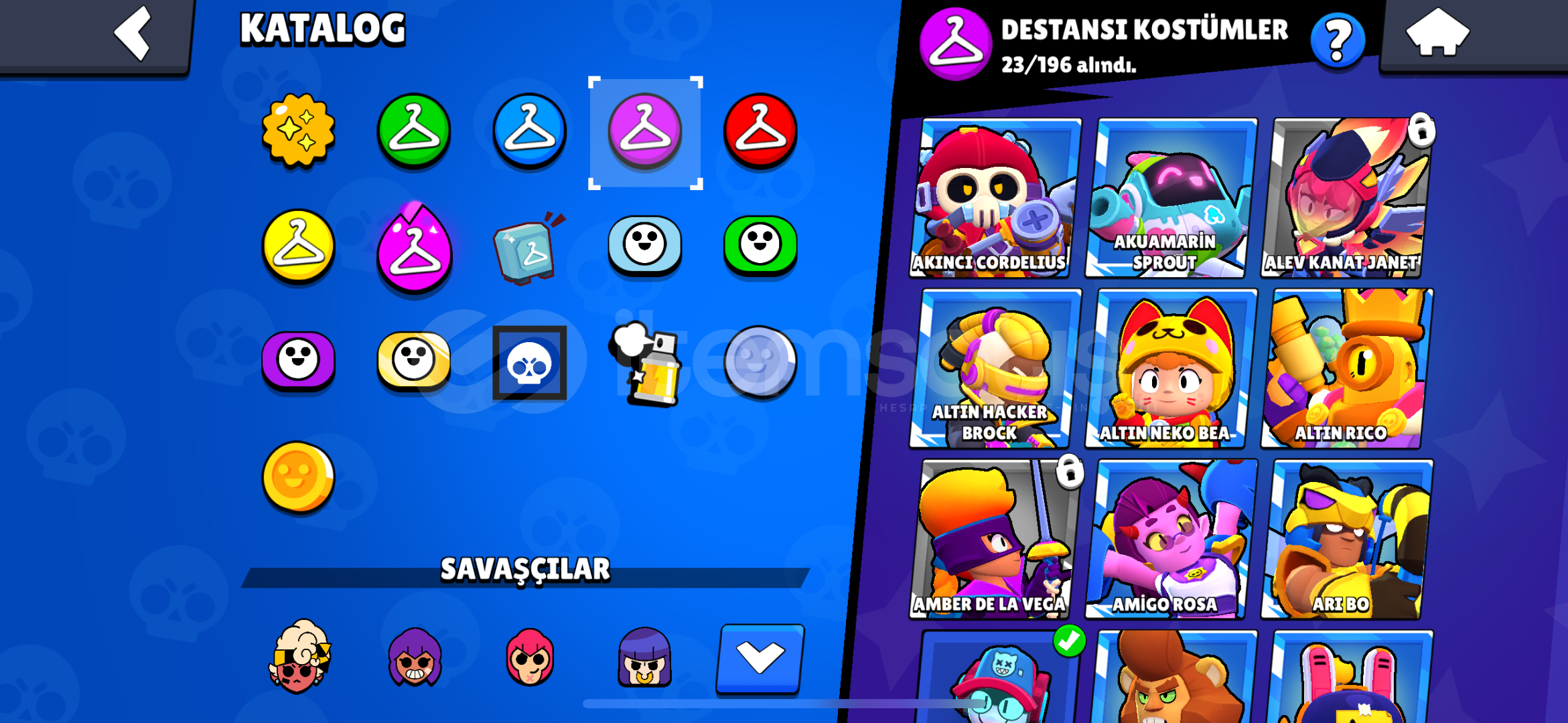 öncelikle merhaba öncelikle brawls star hesabı 33 k şuan hesabı özetlicek olursam 82 karakter ve 136 skin vardır 21 karakterde hiper şarz vardır 2 ünvan ve bazı ender kostümler GECENİN HÜKÜMDARI EDGAR GODZİLLA BUZZ HÜKÜMDAR RİCO 89 rozet 25 emoji vardır ayriyetten içinde 5 bin kupalıl clas royale 18 level hayday 20 level clasofclans vardır hesap İLK MAİLLE VERİLECEKTİR .