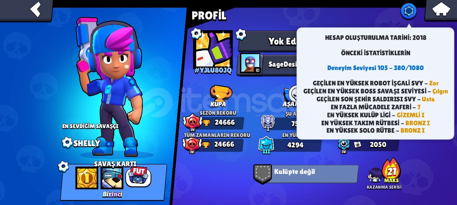 BrawlStars yıldız Shelly hesap 25k 2 sezon brawl