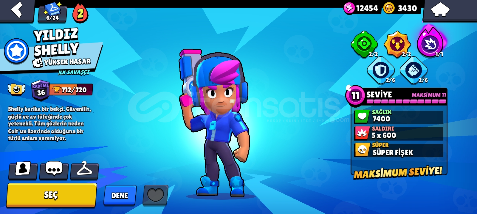mail değişiyor BrawlStars yıldız Shelly li hesap 25kHesapta13 ggizemli karakter 7 efsanevi karakter var