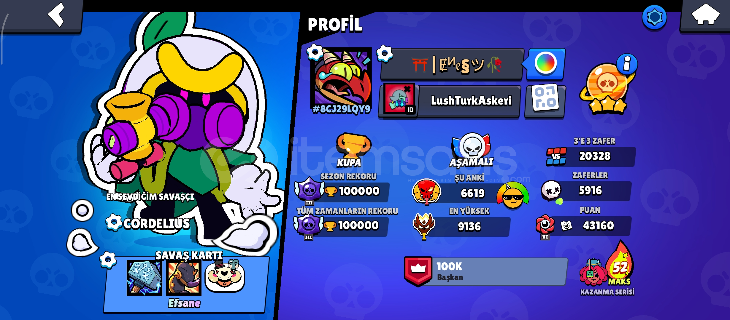 100000 kupa bs hesabı ve Clash royale 10 k kupa