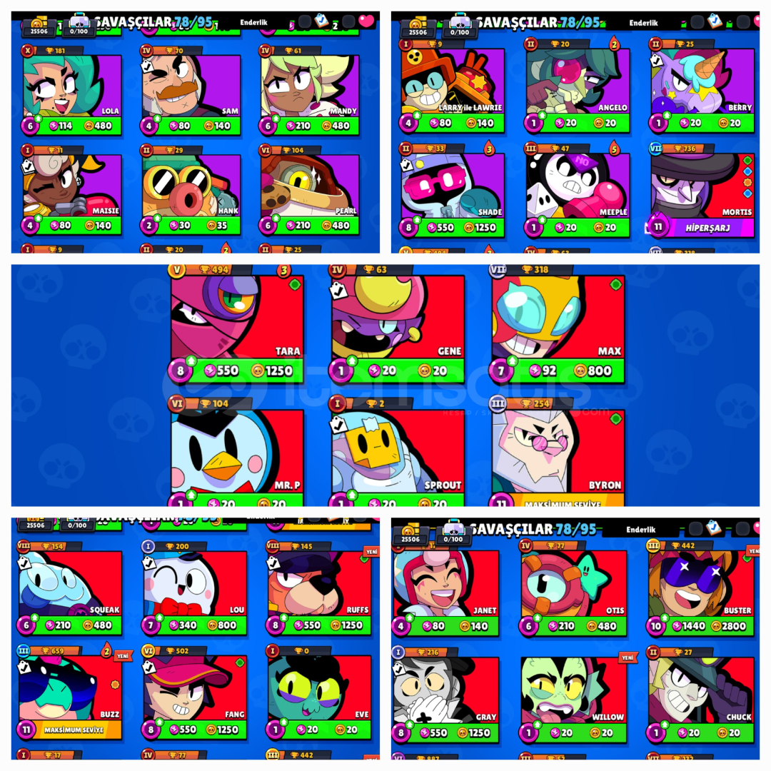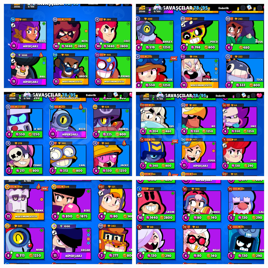 Bawl Stars Hesap Özellikleri :🌟| 79 Karakter bulunmaktadır. (8 Efsanevi, 23 Gizemli, 28 Destansı)🌟| 25.506 kupadır. 🌟| Toplam 205 Kostüm bulunmaktadır.🌟| 3216 altın, 91 elmas, 5036 mücevher ve 6444 güç puanı bulunmaktadır.🌟| Kupasına göre oldukça iyi bir hesaptır. Genel olarak 35-40K arası hesaplar çeşitlilik bakımından ya buna denk ya da bun...