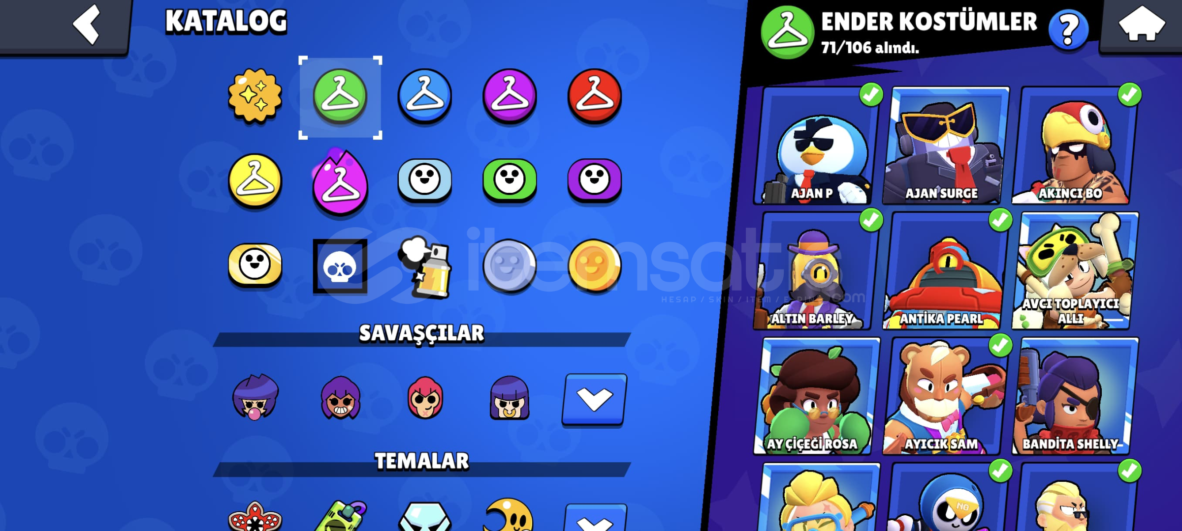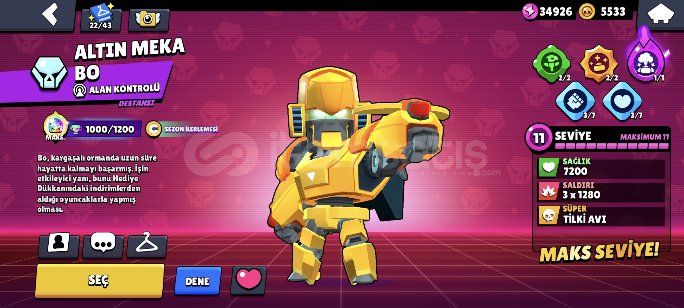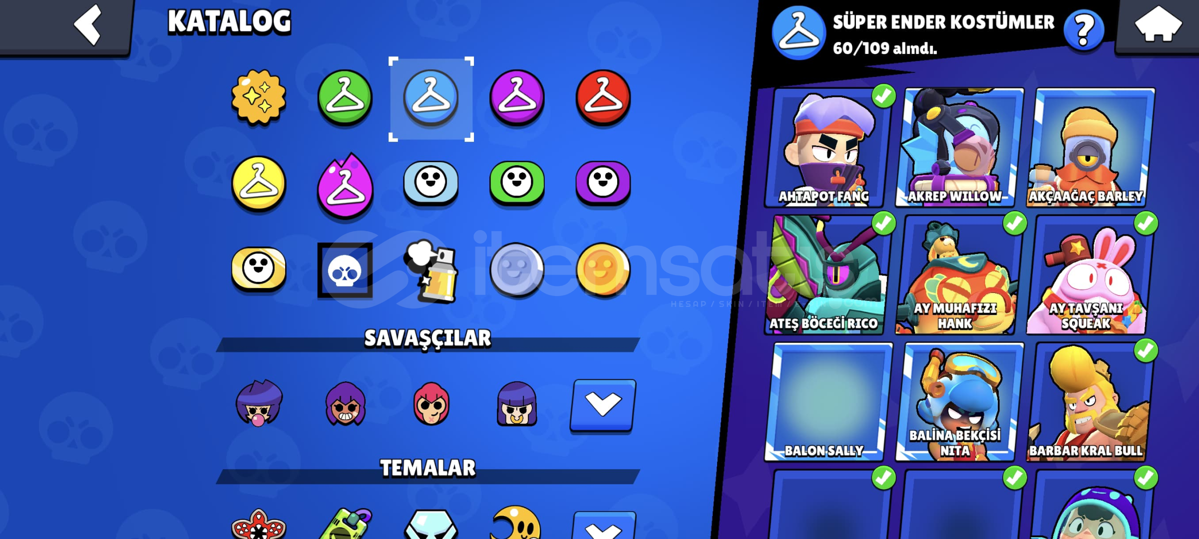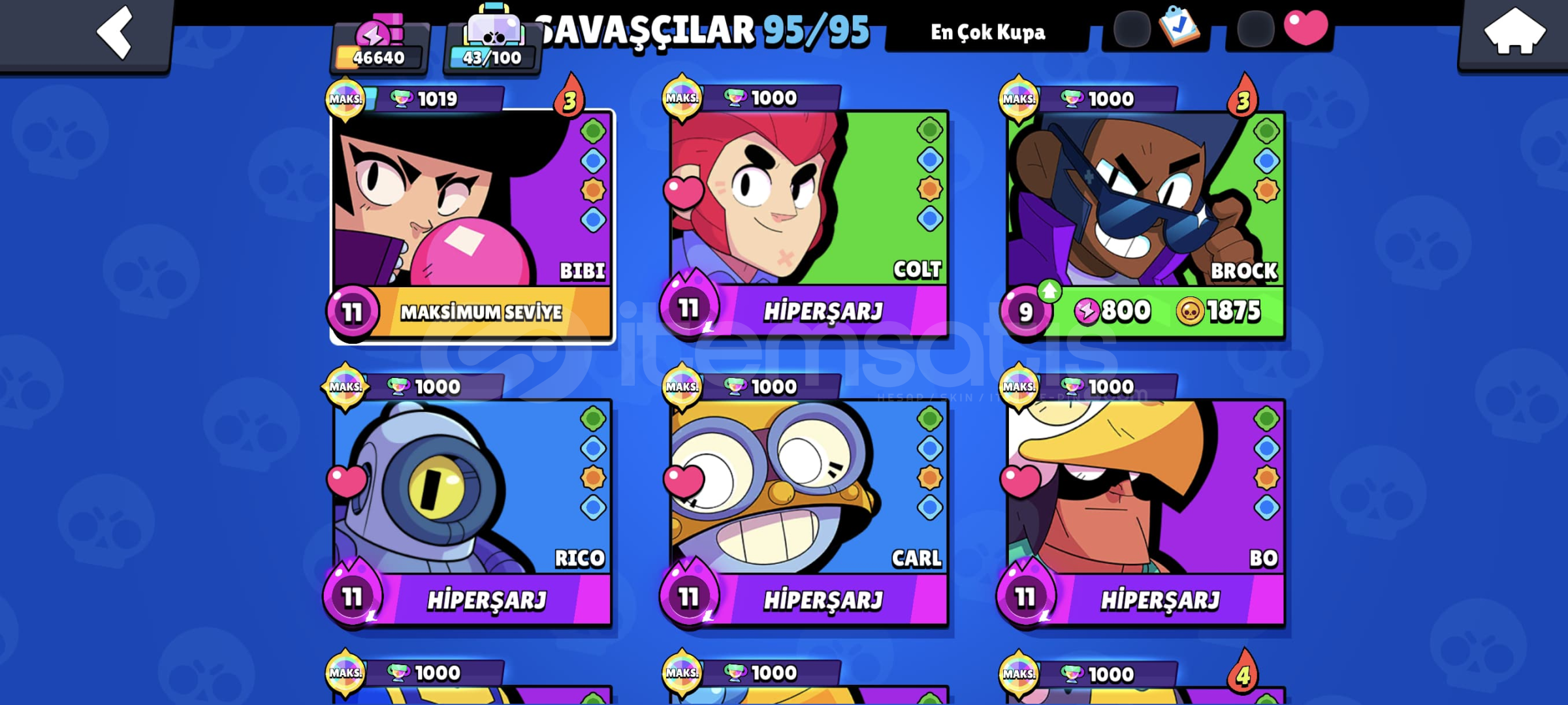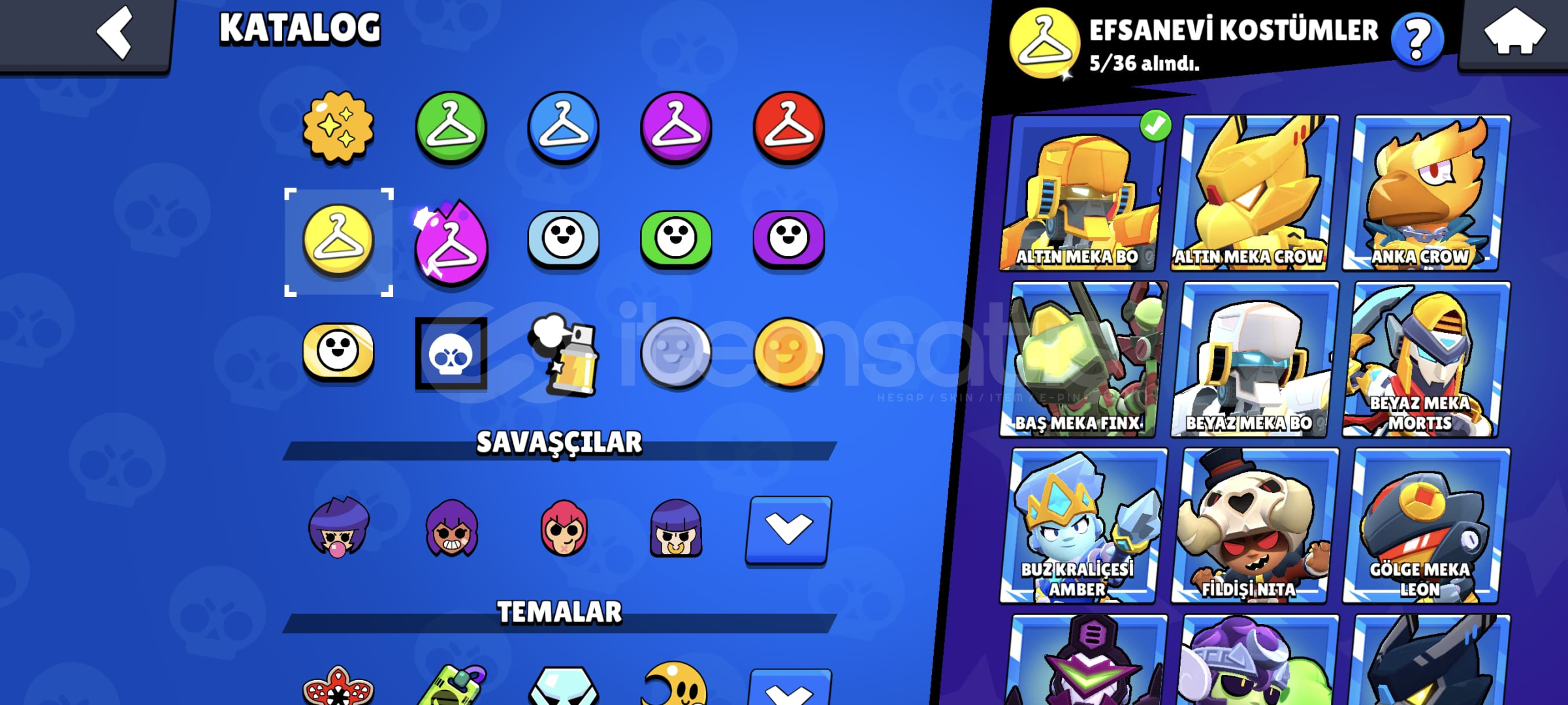 - 46.000+ kupası vardır- hesapta tüm karakterler full olmakla beraber dünya 2 şöhrete sahiptir - 17 tane savaşçı 1000+ kupadadır- hesapta bulunan skin sayısı görüntülerdeki gibidir - hesapta bulunan bazı değerli skinler aşağıdaki gibidir;altın meka bokusursuz meka coltbeyaz kurt leonpenny skini (profildeki)başsız stuoyuncu bibitıknaz darrly