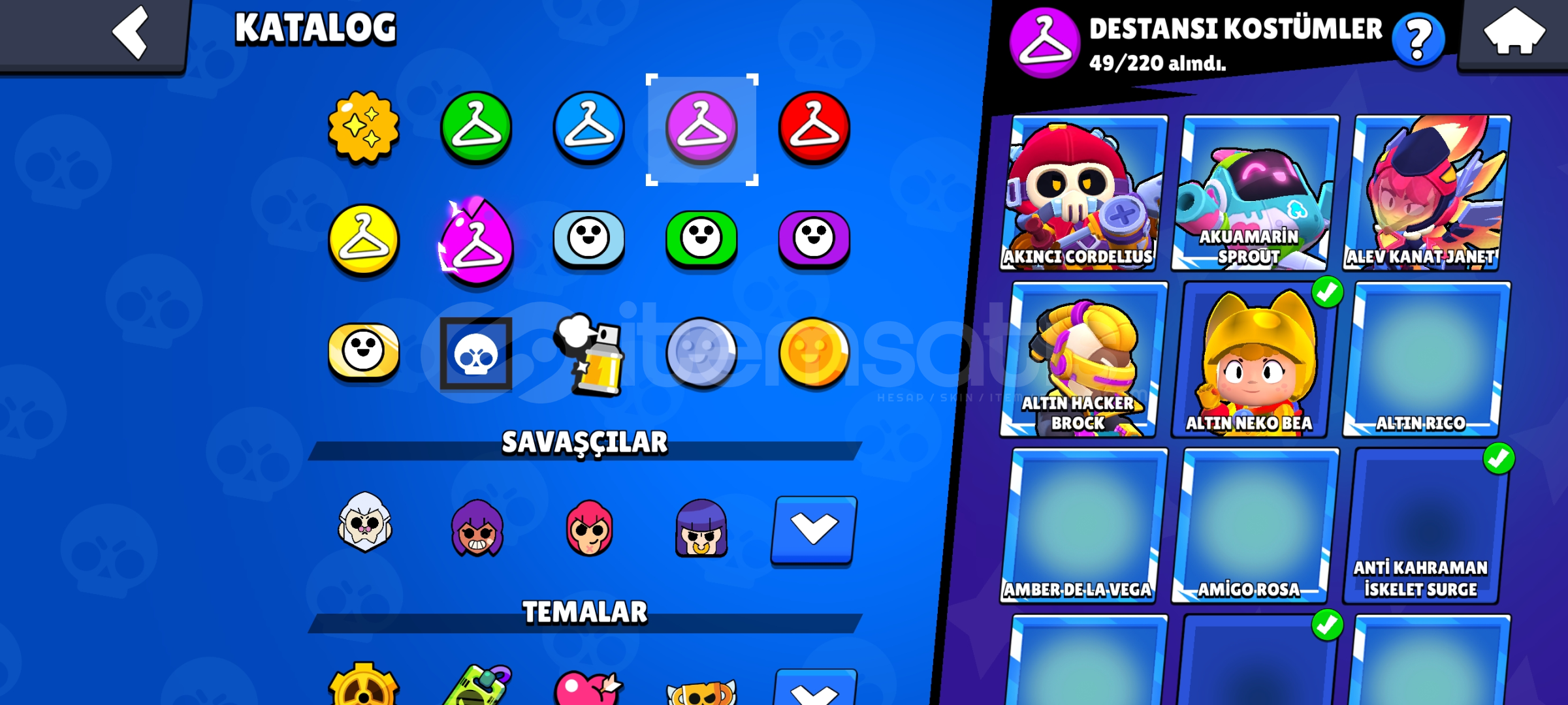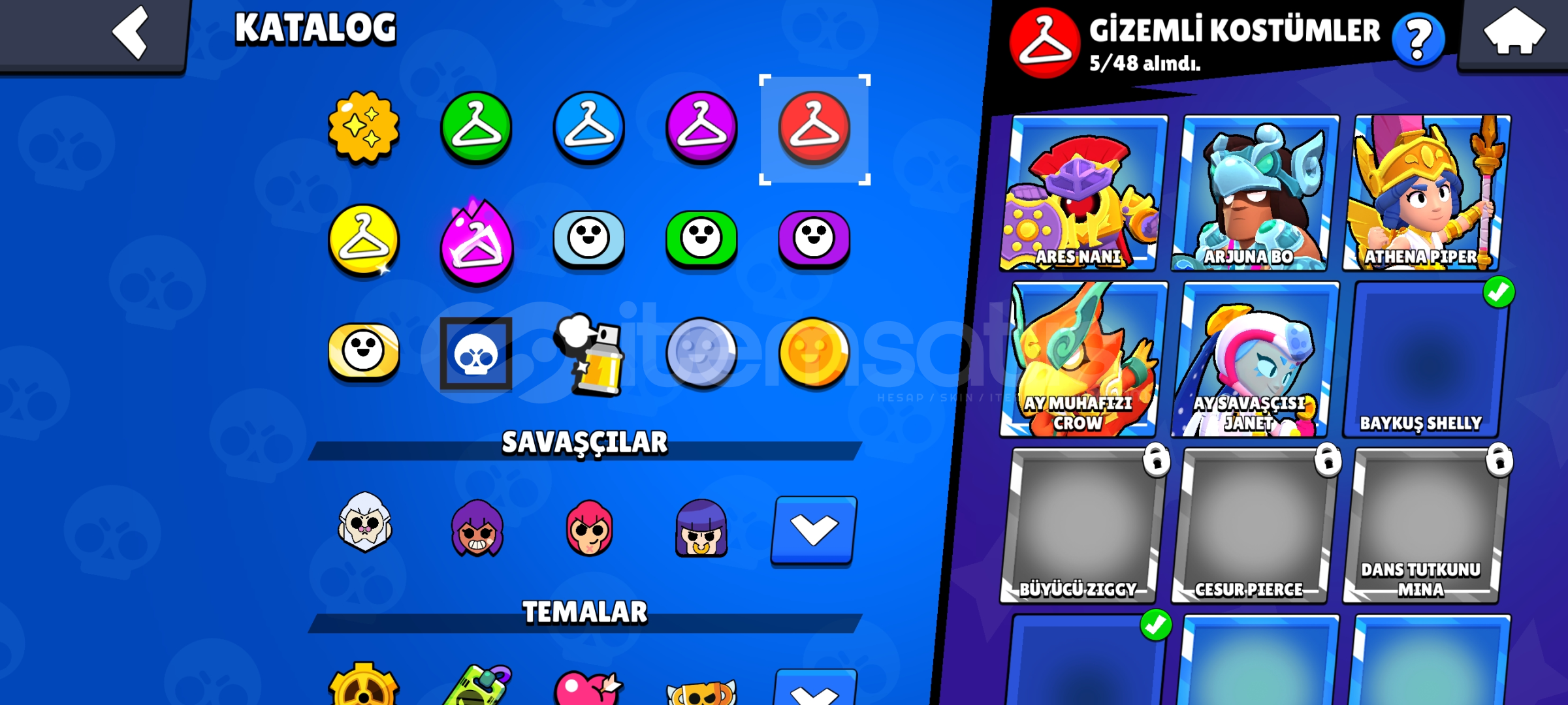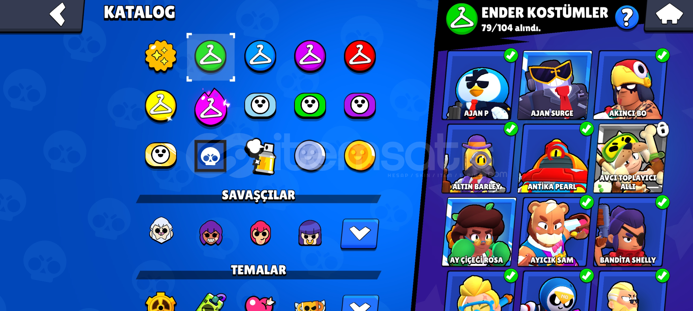 91 karakter vardır bütün karakterlerde fazlasıyla kostüm vardır nadir kostümlerde vardir almak isteyenle iletişime geçebilir
