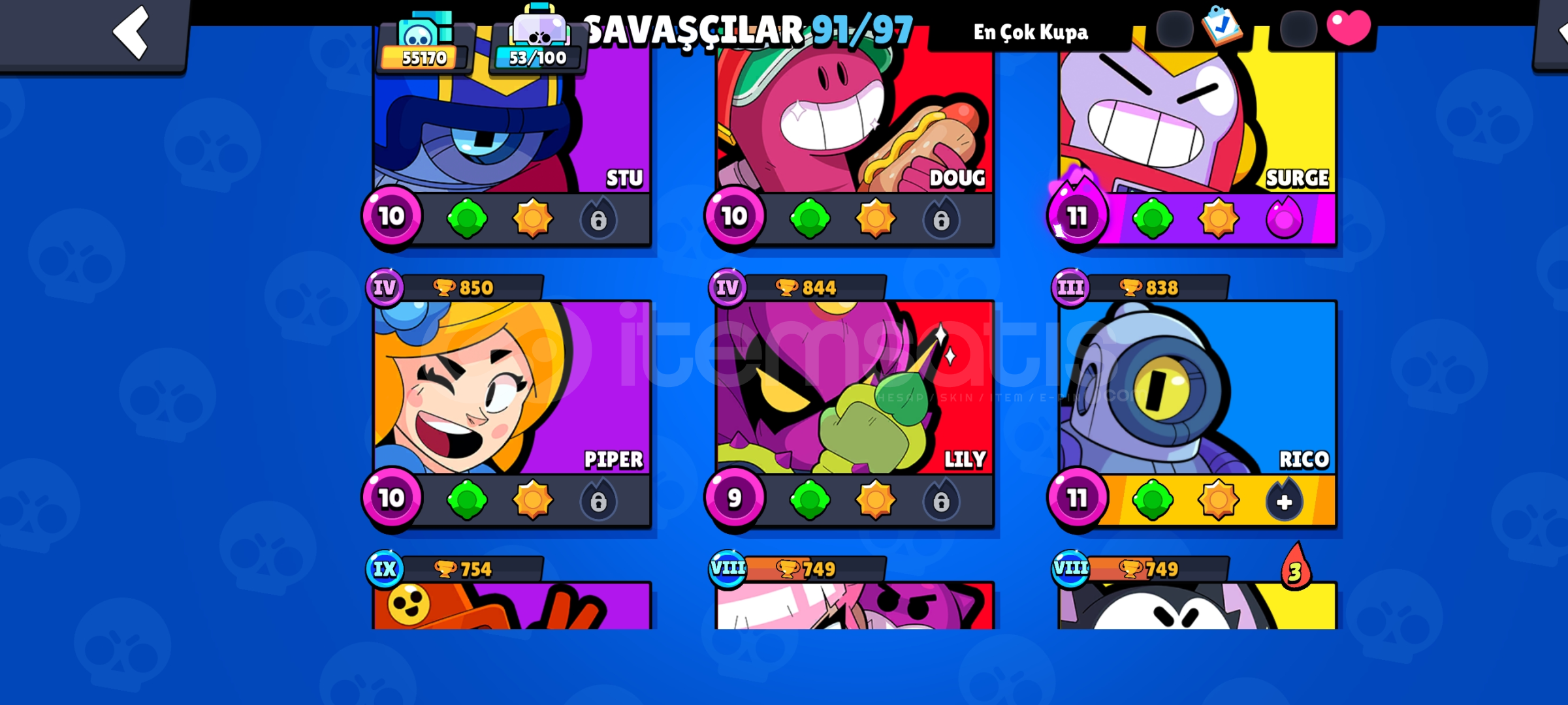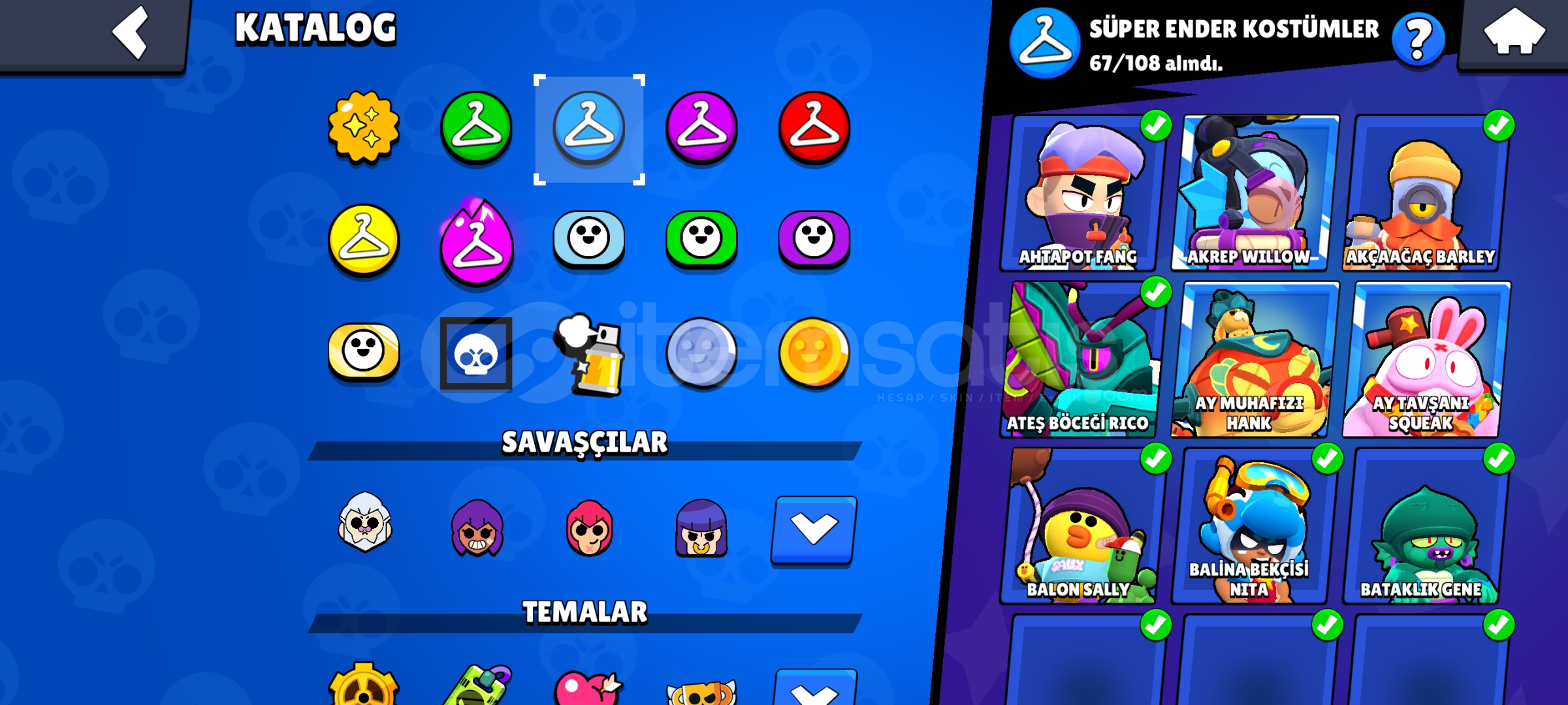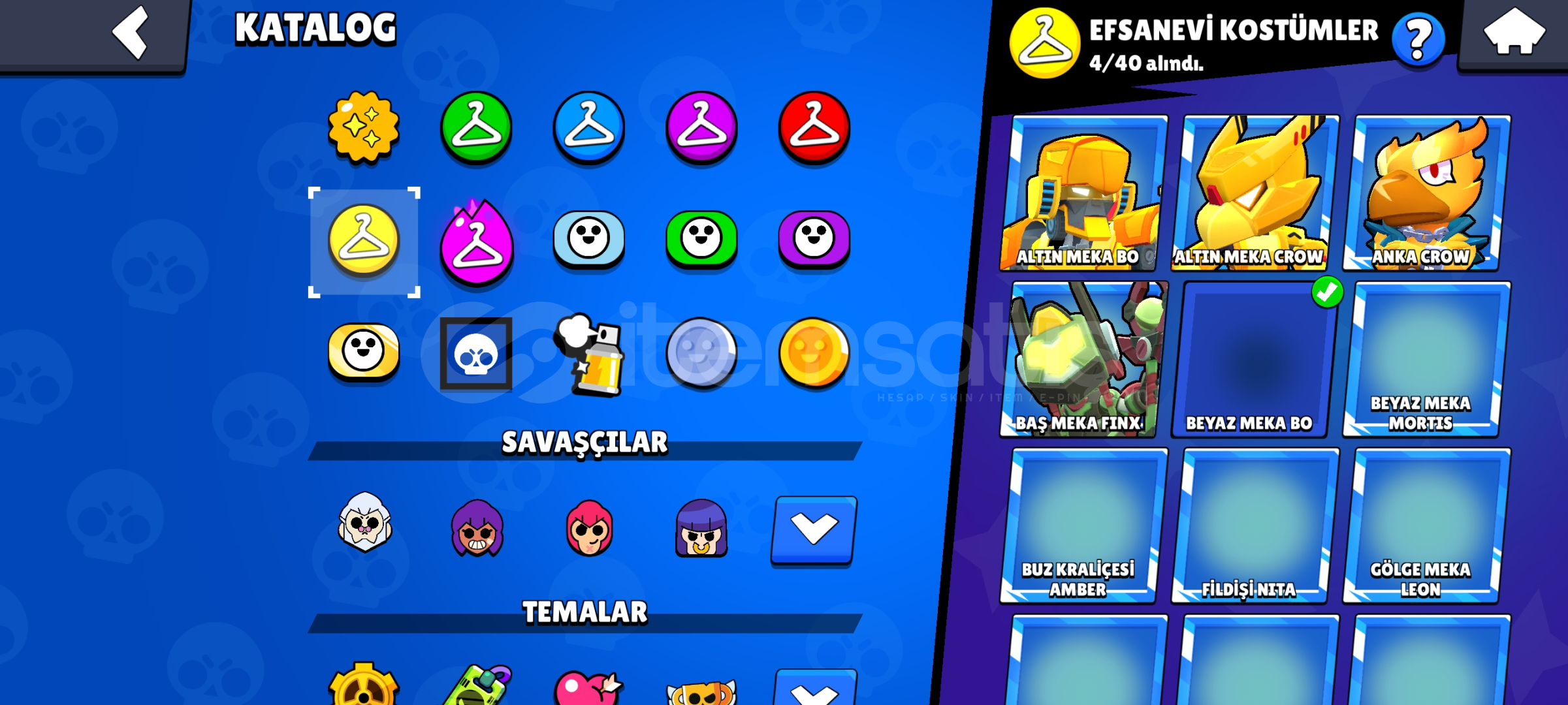 91 karakter vardır bütün karakterlerde fazlasıyla kostüm vardır nadir kostümlerde vardir almak isteyenle iletişime geçebilir