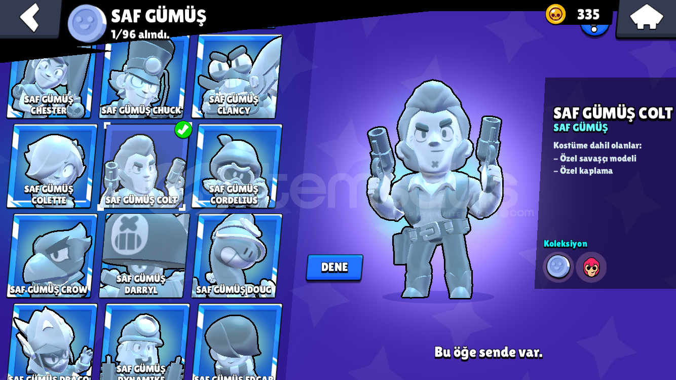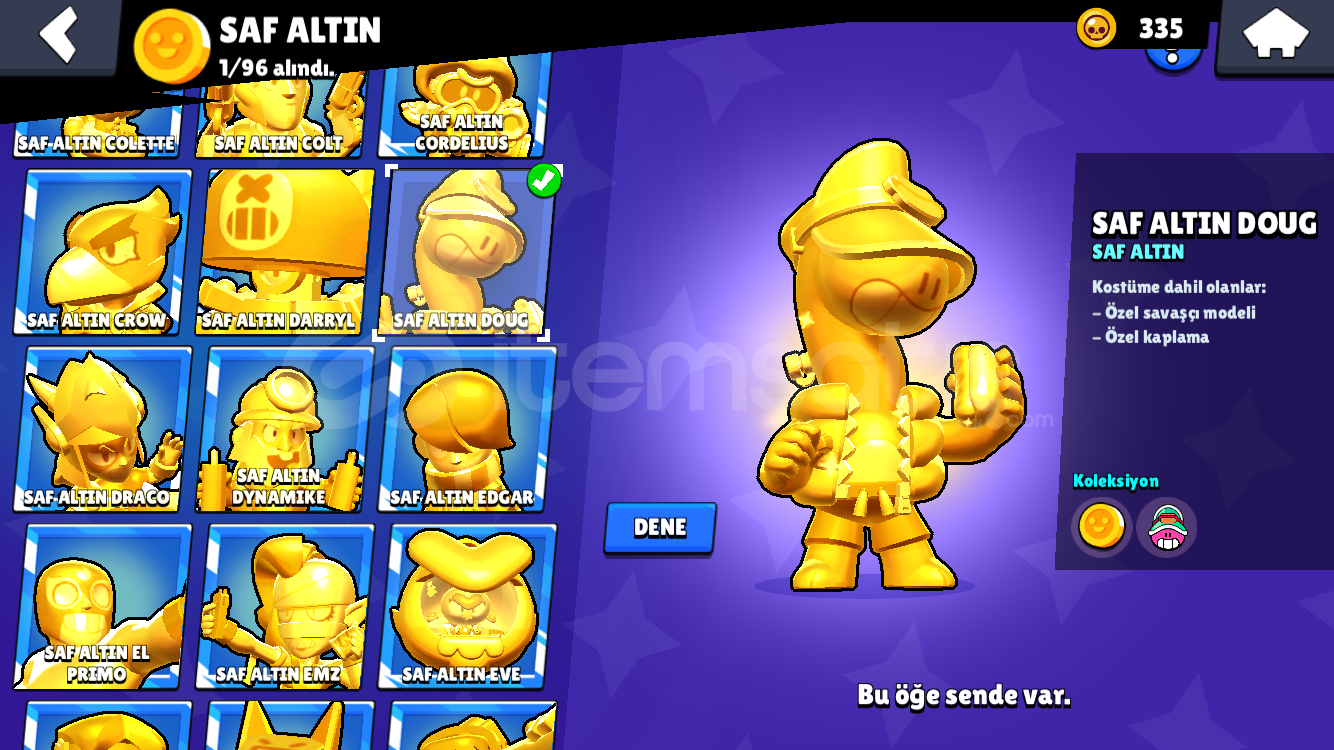 ve son olarak 1 adet saf gümüş (colt) ve 1 adet saf altın (dough) mevcuttur hesabın şifre ve maili size verilecek olup asla başka bir kişinin hesaba girmesi imkansızdır KASMALIK temiz hesaptır alan kişiyi üzmez alan kişiye şimdiden hayırlı uğurlu olsun