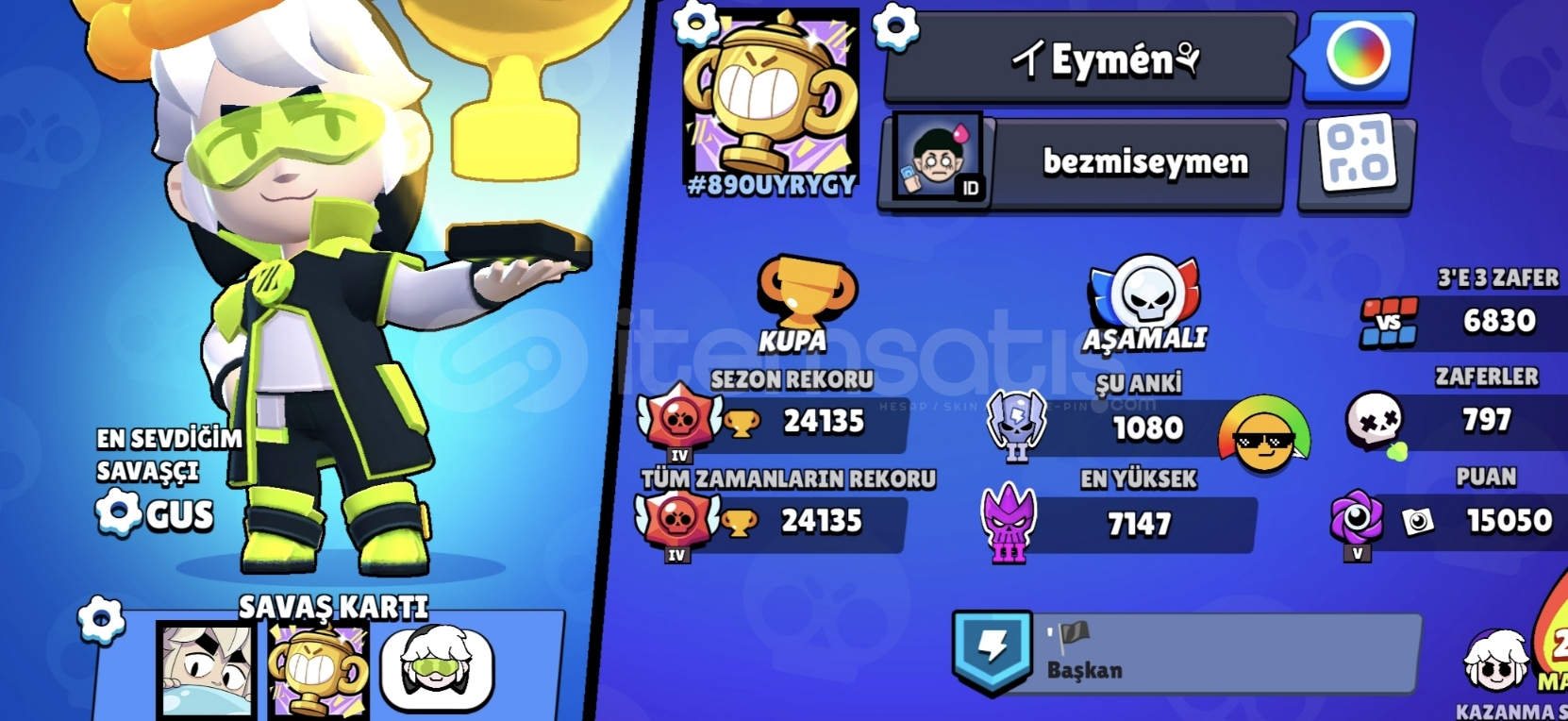 Full emek hesabı 2020 oluşturma yılı varFull emek hesabı 2020 oluşturma yılı var 24k kupa Karakterler 79/95Full ender full Süper ender 29 destansı 21 gizemli 10 efsanevi Kostümler:46 nadir 59 süper ender 54 destansı 5 gizemli 6 efsanevi 3 hiperşarj 2 saf gümüş 3 saf altın 9 ünvan var toplamda 1 kere brawl pass+ bi kere brawl pass açılmıştır alıcısına hayır...