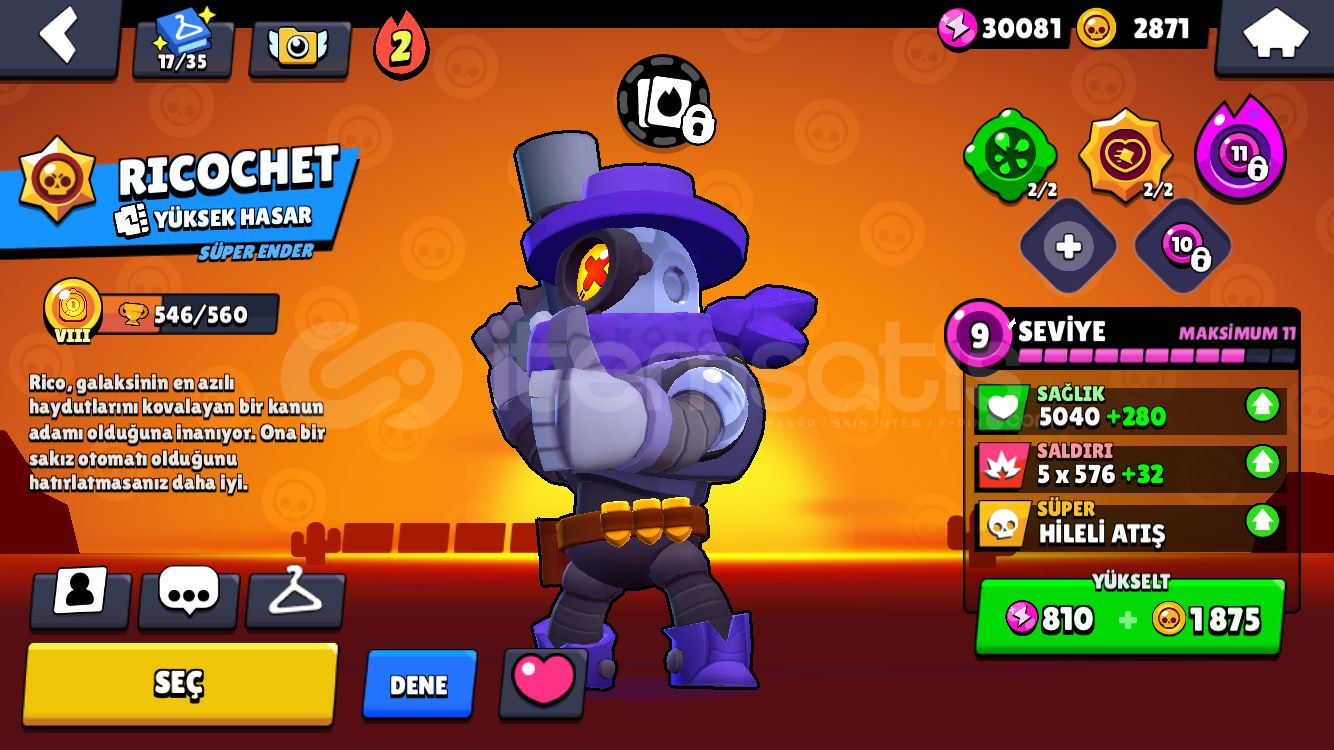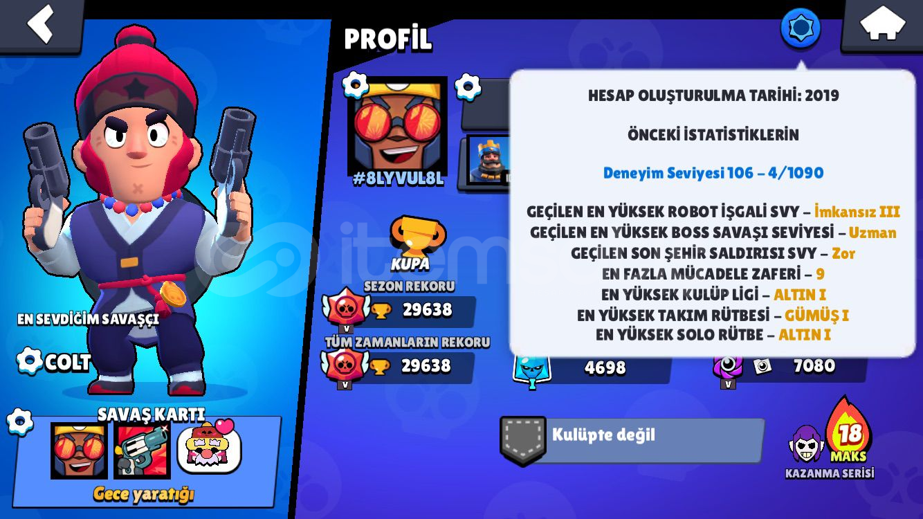 Bütün Bilgiller Sizin üzerinize yapılcak.toplam +180 skin vardırnadir skinler fotoğraflarda vardır.30k kupa