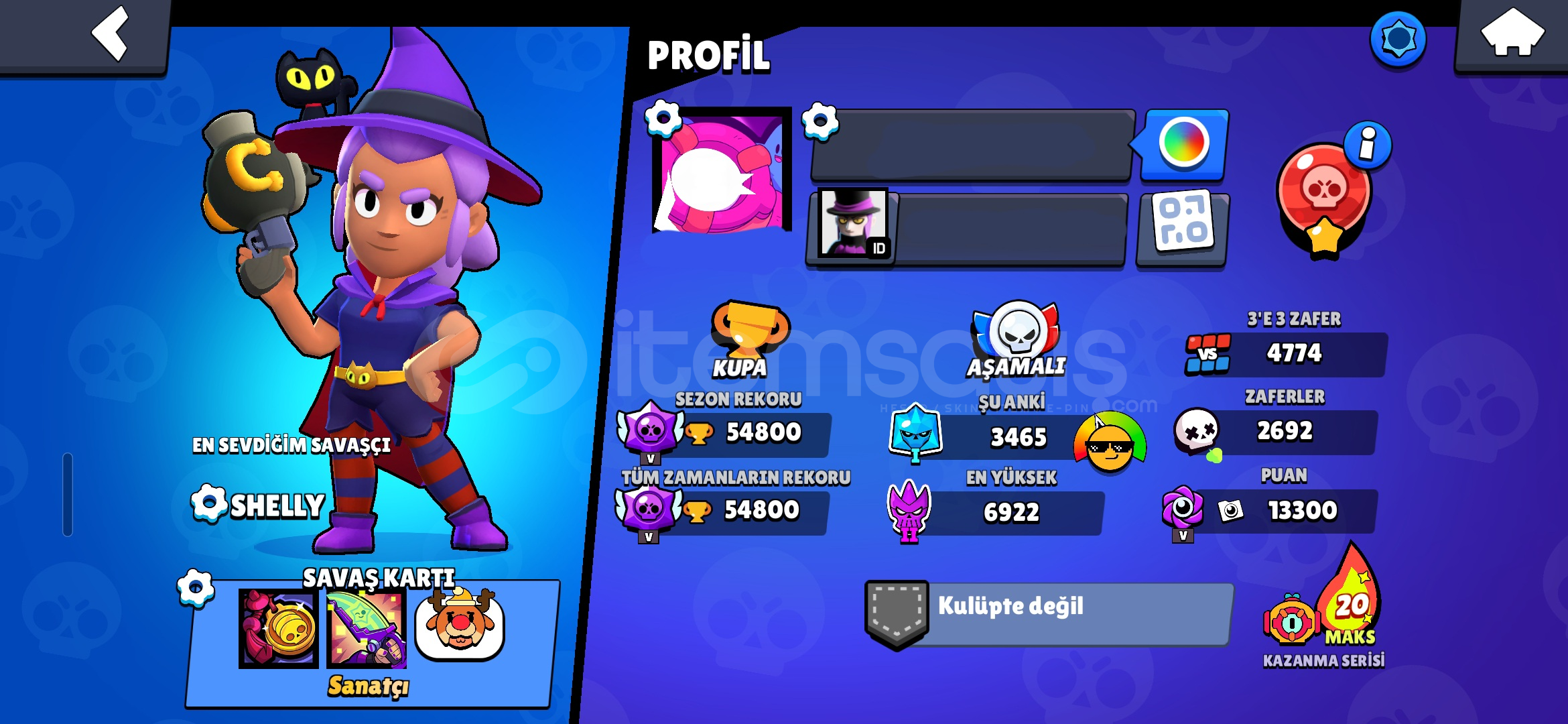🔹 En Yüksek Kupa:54841🔹 Güncel Kupa:54841🔹 3v3:4780🔹 Karakter Sayısı:96🔹 11 Seviye Sayısı:30🔹 Hiperşarj Sayısı 50🔹 Kaç 35 Rank:0🔹 Eski Sistem Pl Bilgisi:Altın 1-Gümüş 3🔹 2024 Master Sayısı: 0🔹 2025 Master Sayısı:0🔹 Ünvan Sayısı (Bp\Ustalık):5🔹 Şöhret:Mars 1🔹 Hesaba Öze...