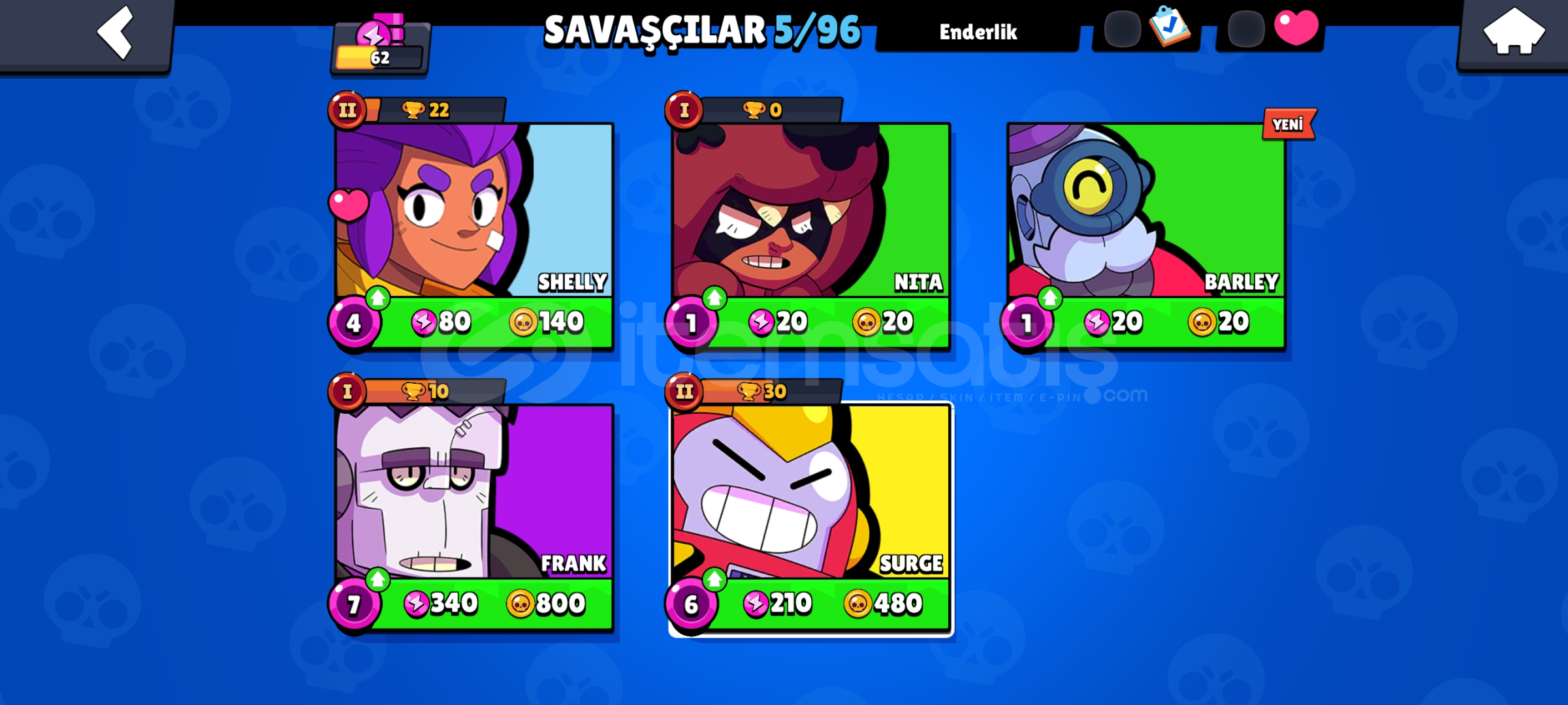 Brawl Stars ; 52 Kupa, Surge ve Frank değerli karakterleri vardır...