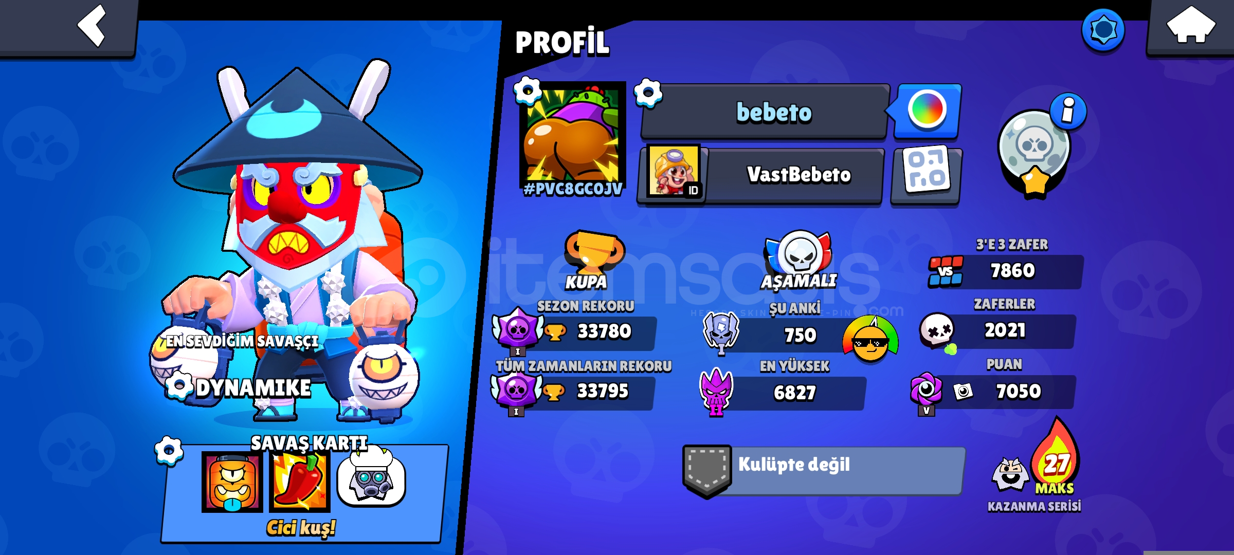 TR SUNUCUSUNDADIRBRAWL STARS:91 karakter71 sıradan kostüm62 ender kostüm61 destansı kostüm3 gizemli kostüm4 efsanevi kostüm3 hiperşarz kostümCLASH ROYALE:8500 kupa 3 kez bp alınmıştırmax usta rankına ulaşmıştıryaklaşık 80 tane emojisi vardırDETAY İÇİN MESAJ YAZABİLİRSİNİZ