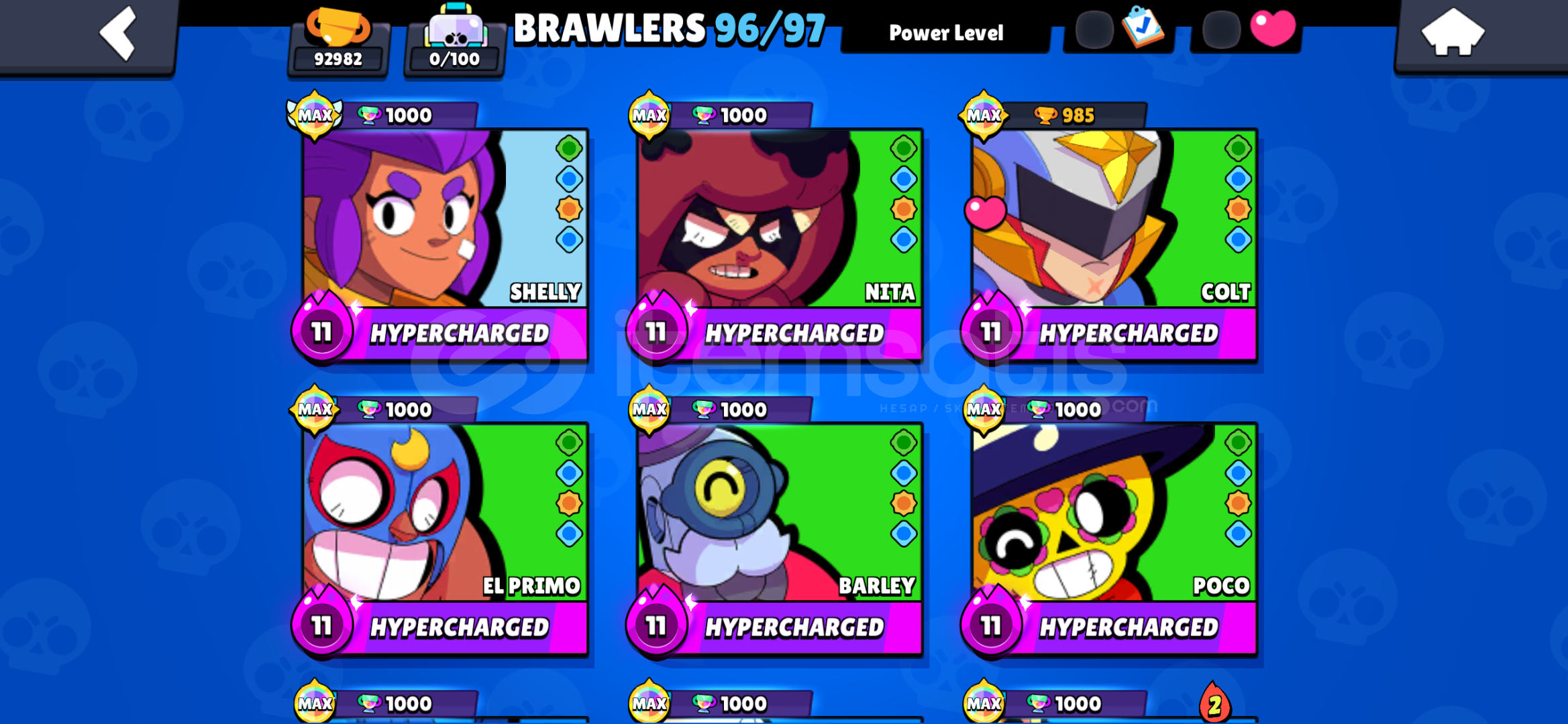 Hesabım Emek Hesabıdır 93500 suanki kupası guncel olarak en yuksekte 100k olundu Hesapta Bütün Karakterler Var gigi haric ve hesap ful artı ful alan kişi kasar ve maxlar zor birsey değil
