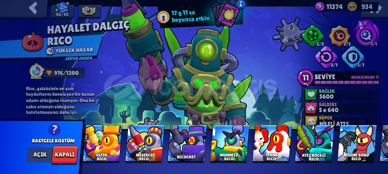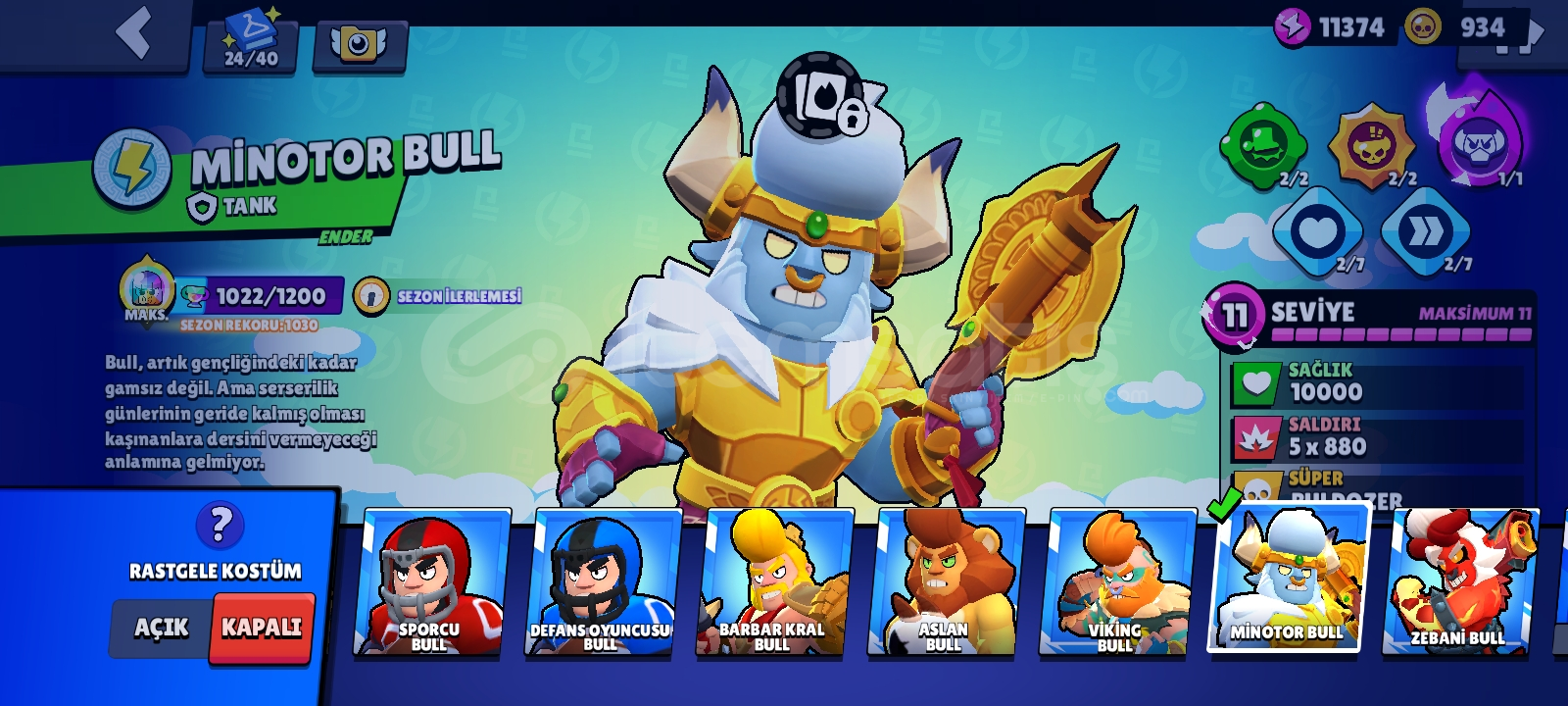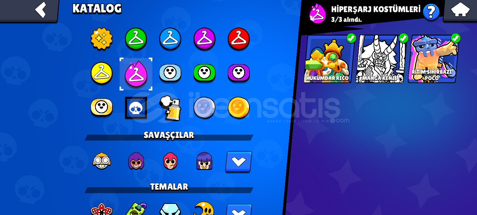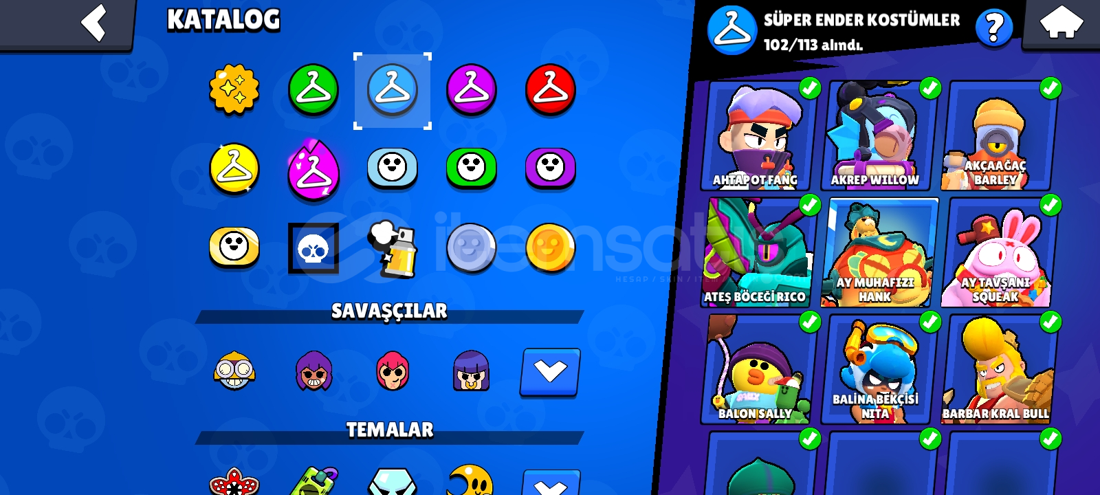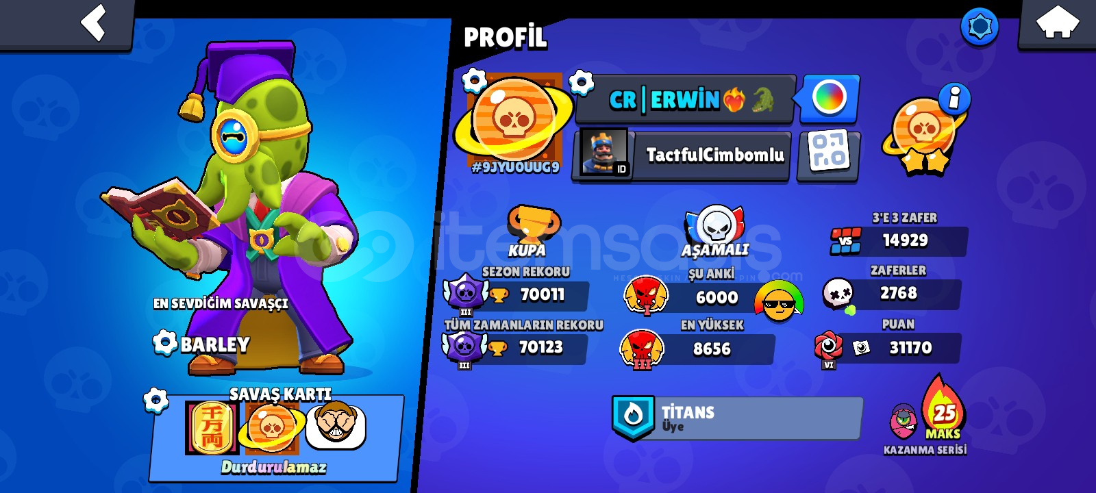 70 K kupa efso 3 olmuş 2019 hesabıdır hesapta 300 de fazla kostüm vardır ve ricochet barbar kral bull ve sokak ninjası tara gibi nadir kostümler mevcuttur ayrıca tam 50 tane hiperşarzlı 11 lvl karakter vardır