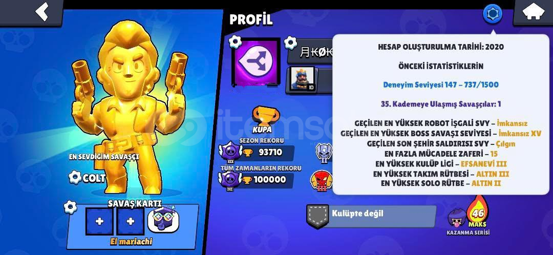 Hesabım 100k kupadır62 tane ünvan vardır2k kredi sonra meteor 2 olcaktır35Rank pini,matcherino spike,matcherino mandy pini,onlarca kupa pini vardırToplamda 436 skin vardırDetaylı bilgi için dmSadece ciddi alıcılar