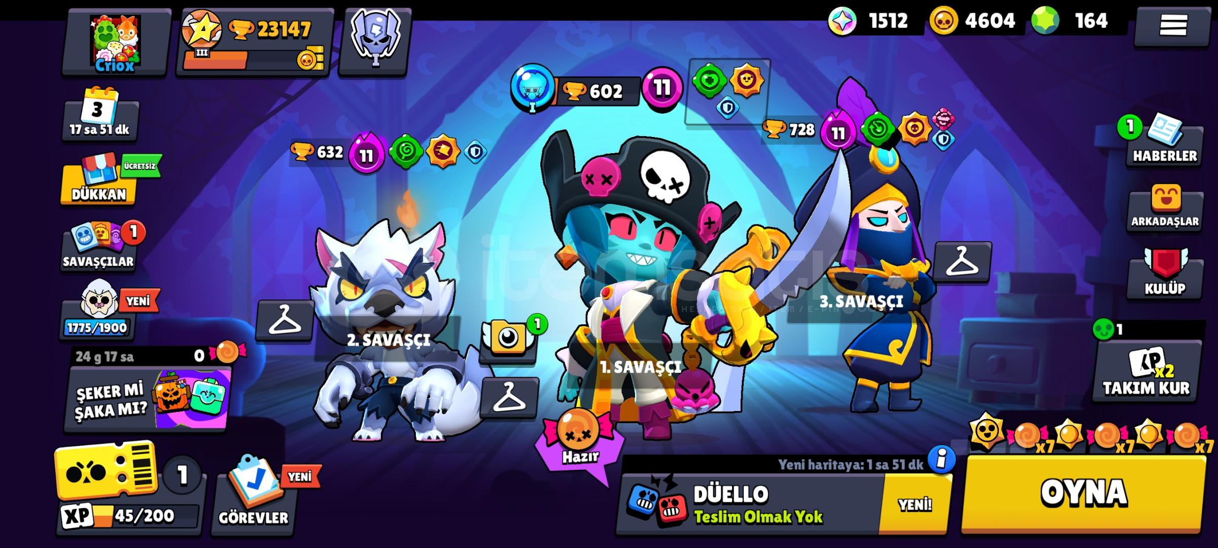 23k kupa64 karakter 120 skin164 elmas4604 Gold1512 mücevher 9 maks karakter 5 hiperşarj mevcutturalana şimdiden Hayırlı olsun...