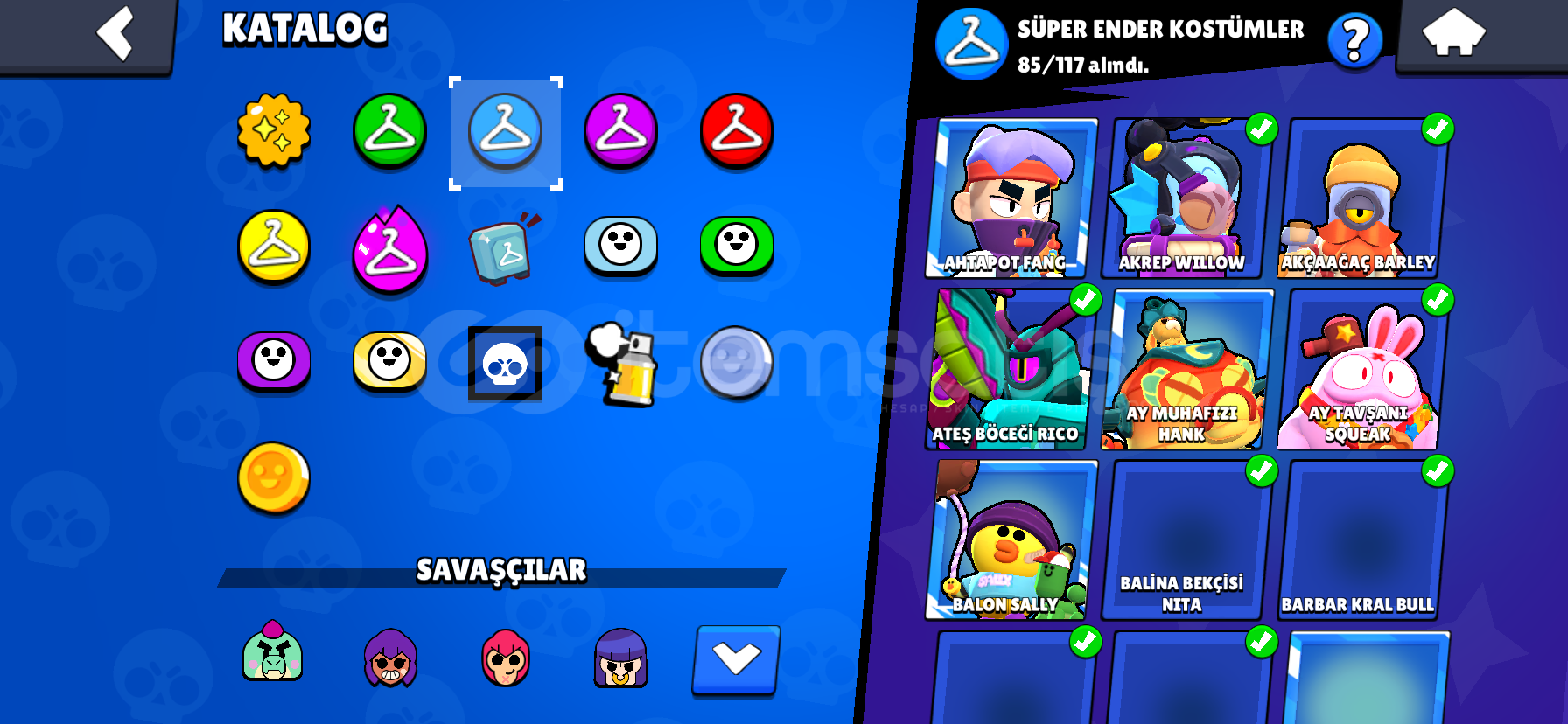 Ender kostum:76Süper ender kostum:85Destansı kostüm:98Gizemli kostüm:11Efsanevi kostüm:6Hiperşarj kostüm:5saf g&uum...