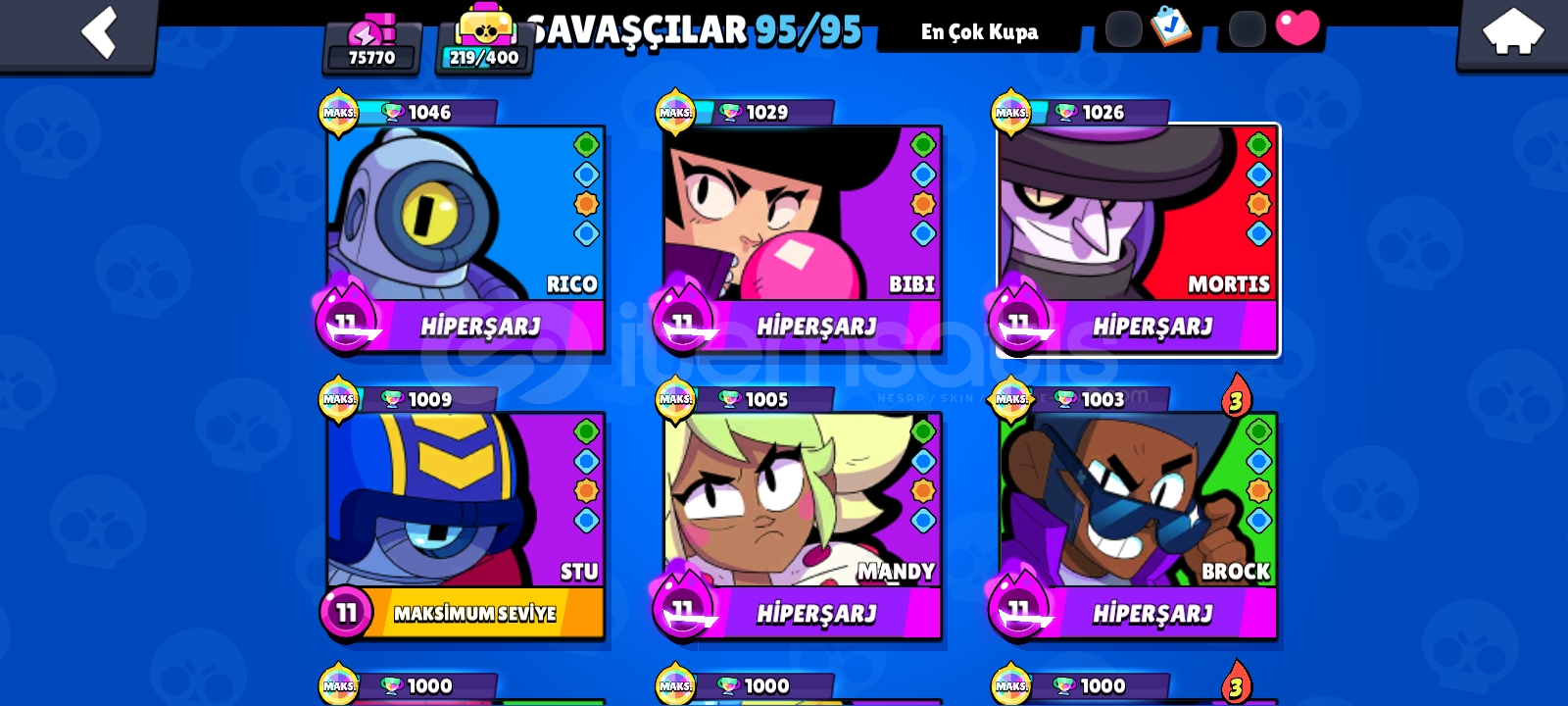 Brawl stars 230 + skin 10 gizemli 8 efsanevi 4 hiper şarj skin 100+ da destansı skin vardır toplam 10 tane BP plus 1 tane normal BP alınmıştır çok İyi hesaptır Dengi yok bu fiyata
