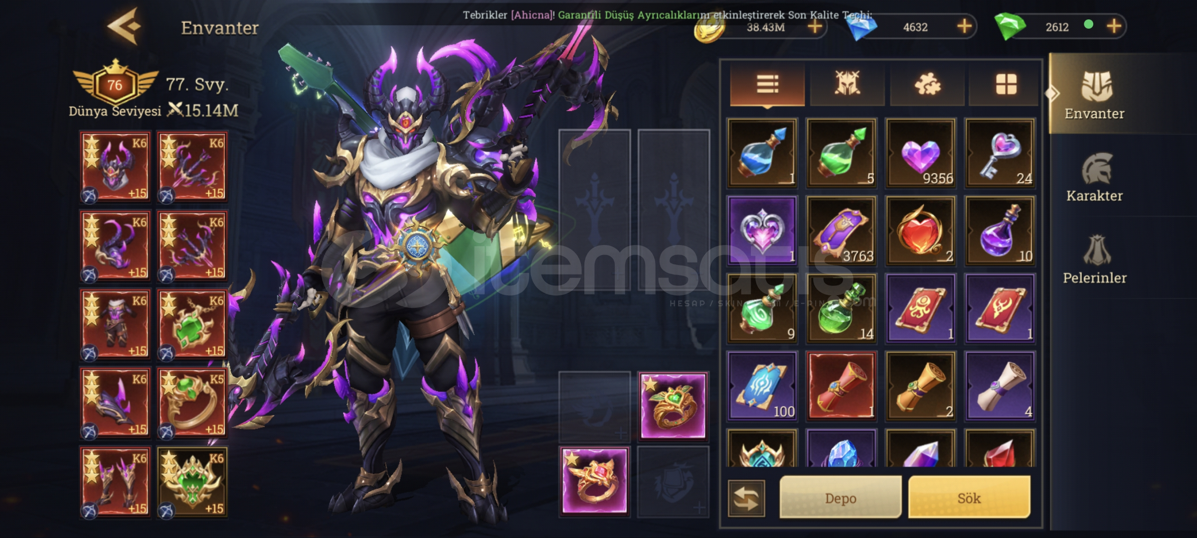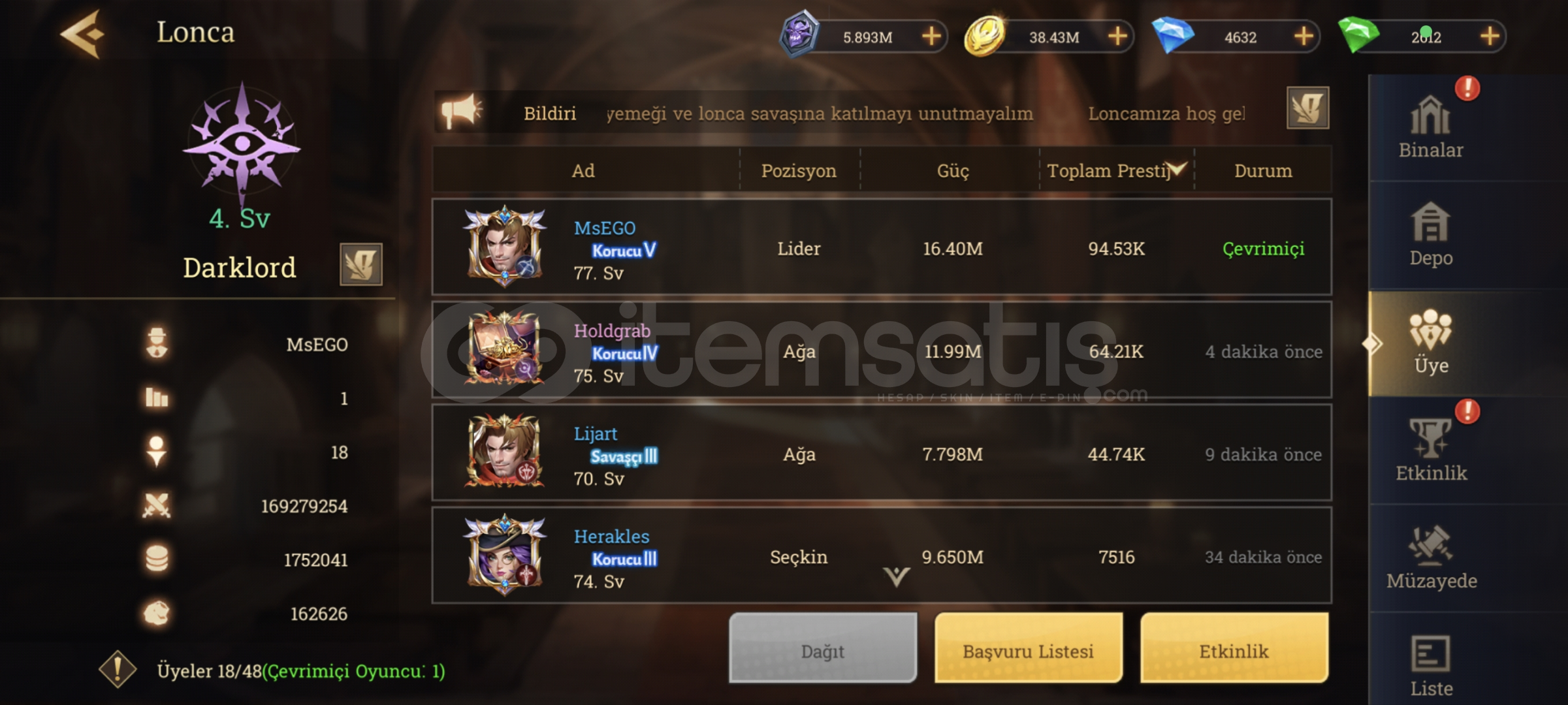 --Hesao vip 6--Lonca lideri--Güçte sıralamada--Suikastçi sınıftır hasarı yüksek--Hesaba 6 binden fazla para yatırıldı istenirse dekontunu bulabilirim.--Extra elmas ve para yükledim istediğiniz gibi kullanabilirsiniz.