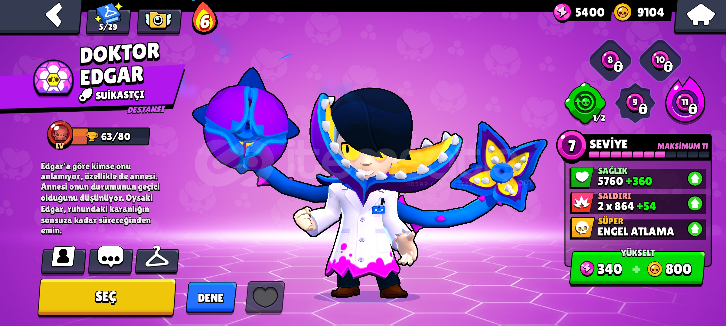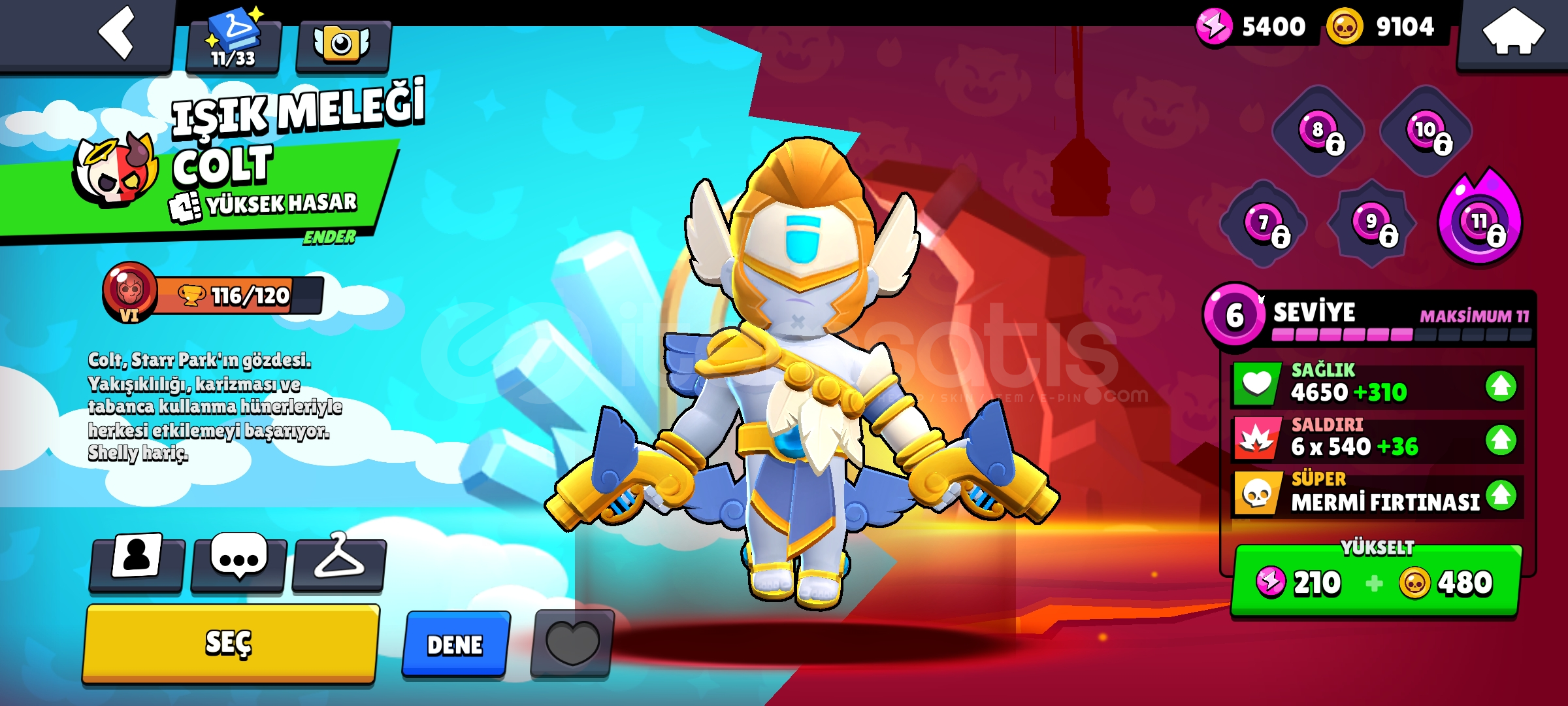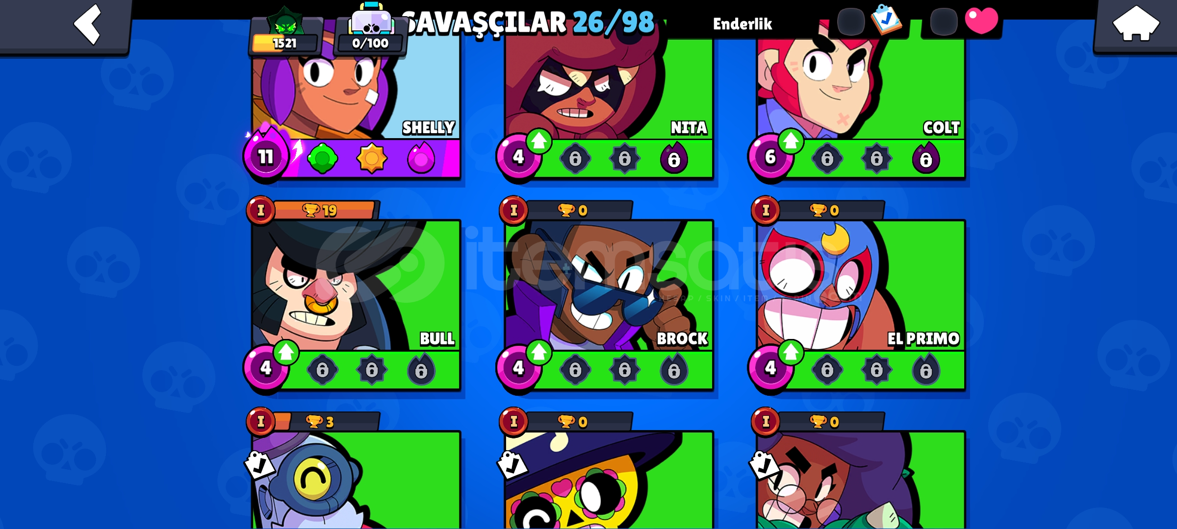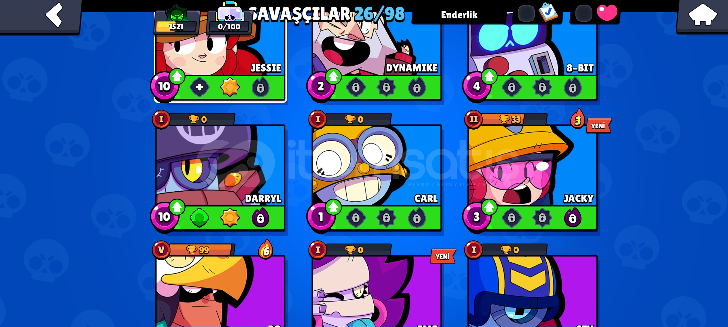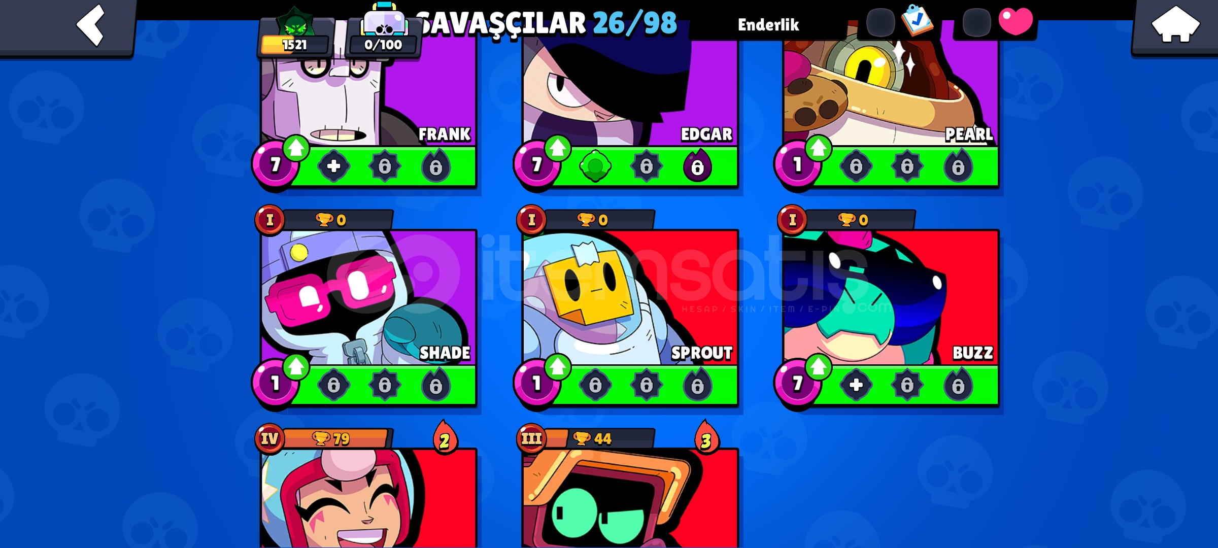 Hesapta görseldekilerden fazla kostüm vardır.Hesabı alıp kaynaklarla istediğiniz karakterleri yükseltip kostümlerini alarak kupa kasabilirsiniz.