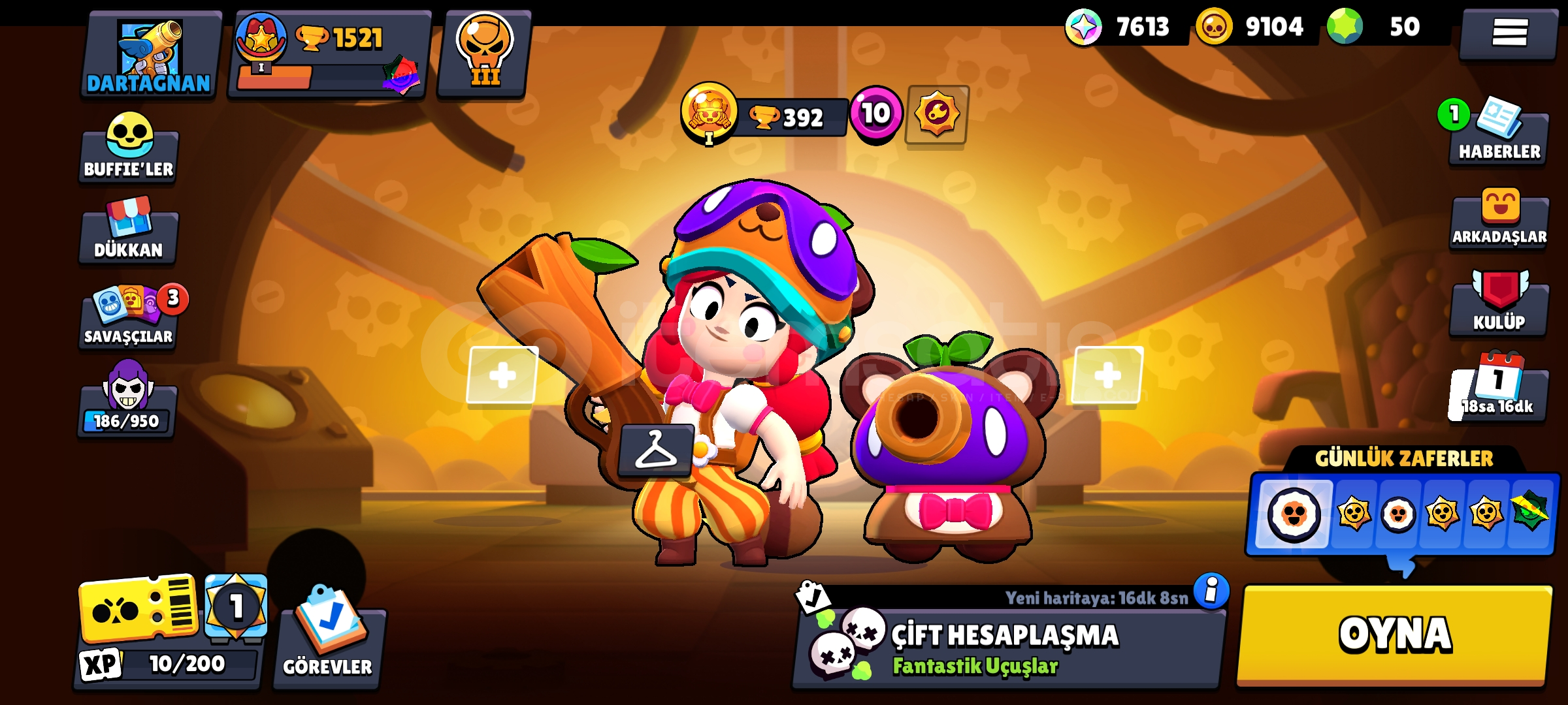 Hesabı alıp kaynaklarla istediğiniz karakterleri yükseltip kostümlerini alarak kupa kasabilirsiniz.