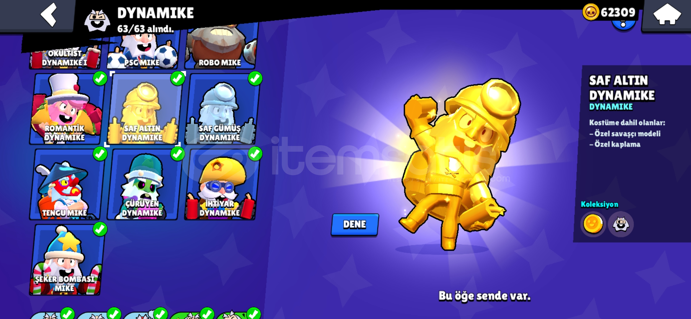 Hesapta dynamike koleksiyonu fulldür 63/63 tür hesapta güzel kostümler vardır her karakterde iyi bir kostum vardir 6 tane hip...