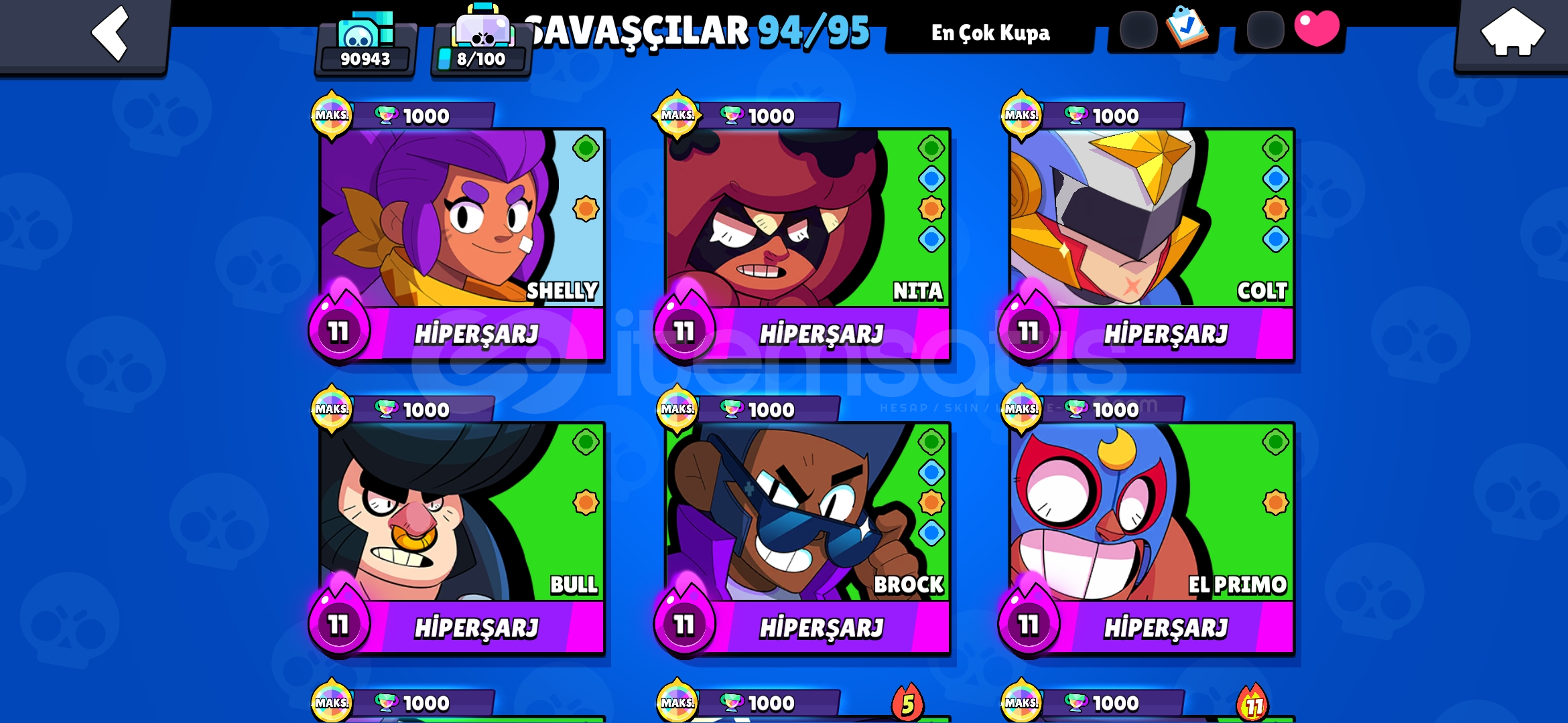 +71 hiperşarj var+77 tane 11 lvlDiğerleri +17 tane 10 lvl179 tane yıldız gücü var