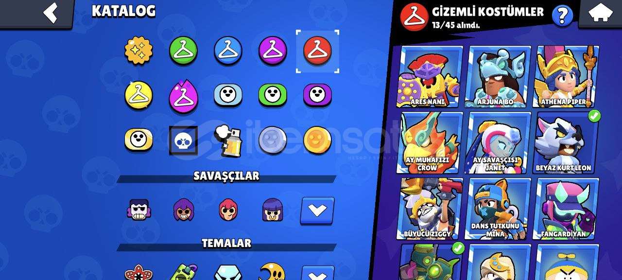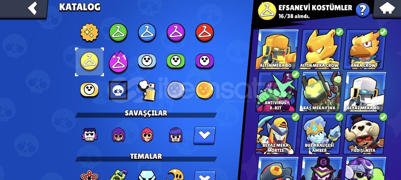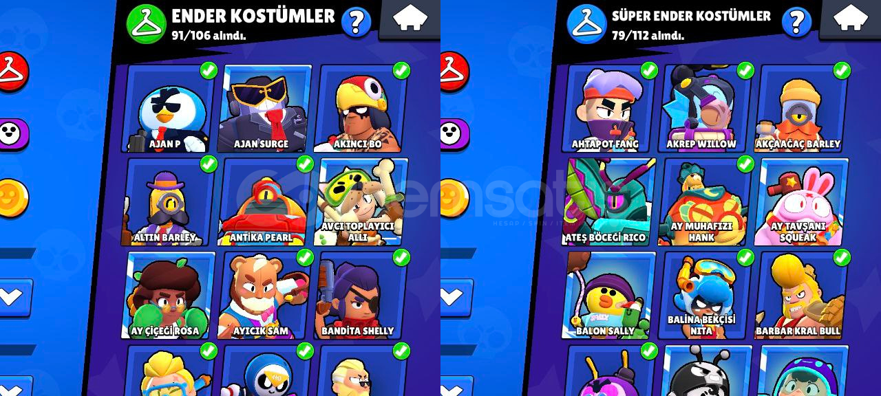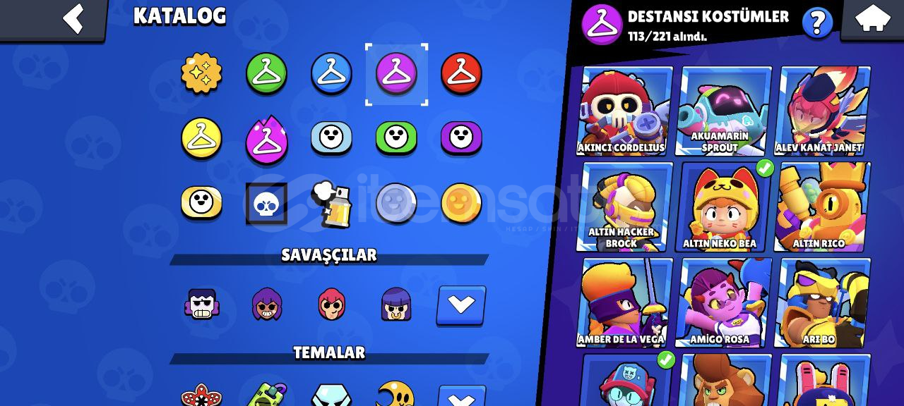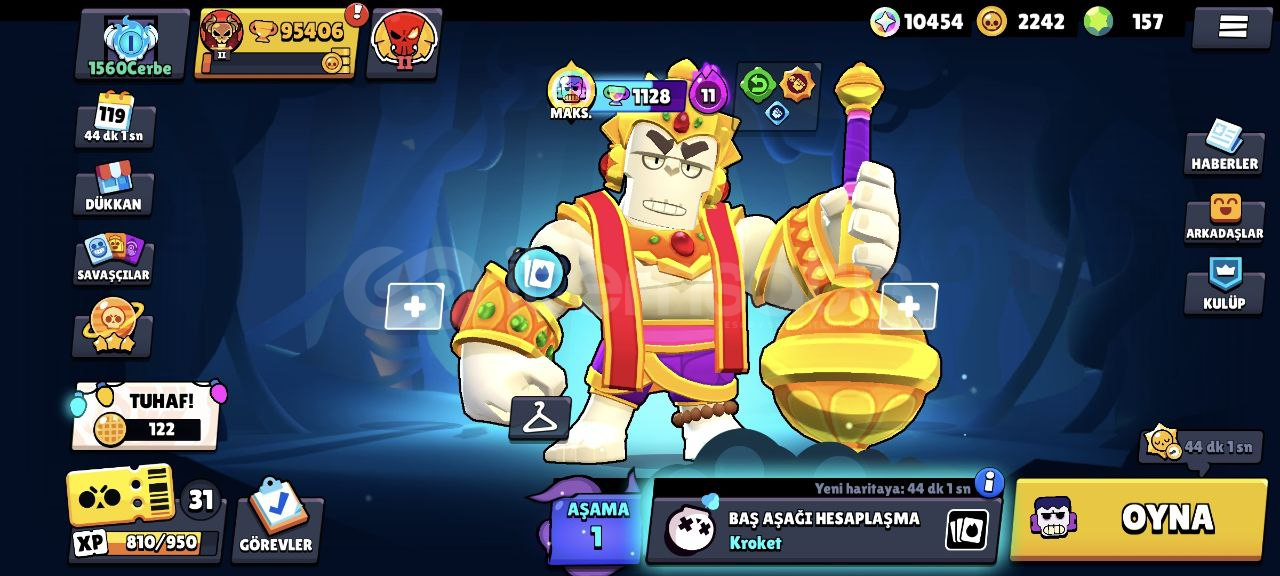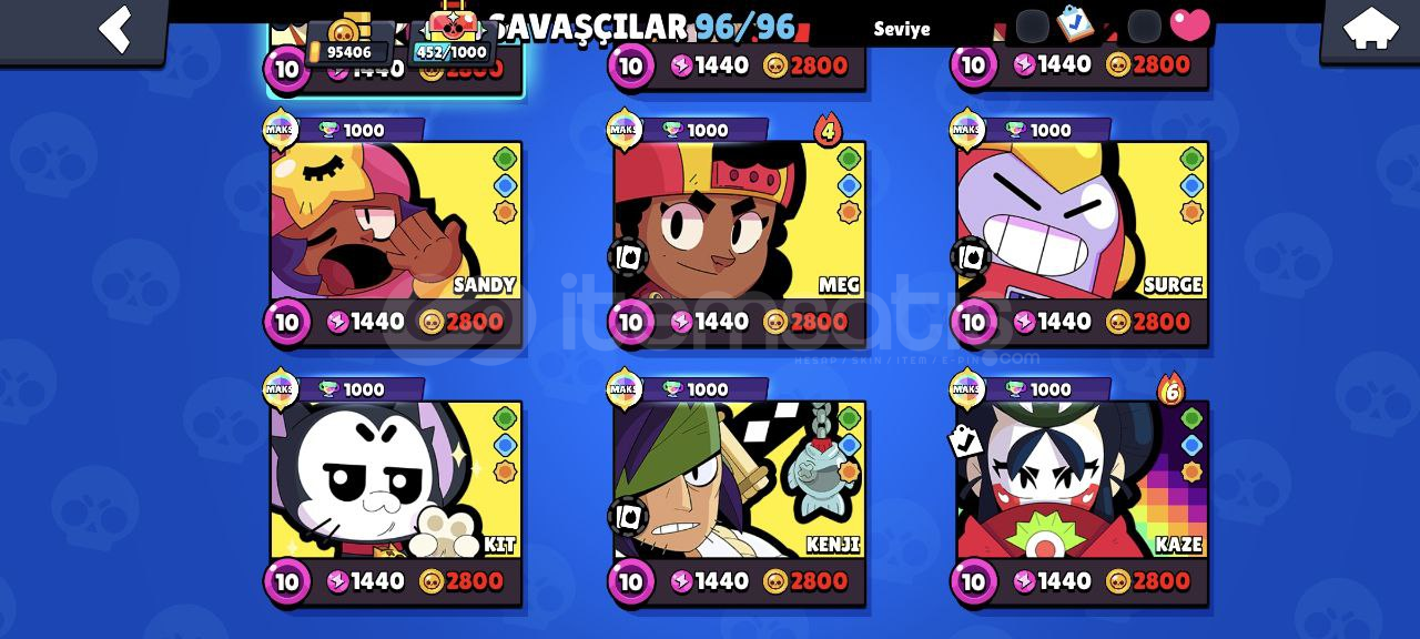 Hesap Özellikleri:96/96 Karakter, 61 tanesi 11 35'i 10 seviye!58 Hiperşarj (hepsi kullanılabilir durumda)153/192 Yıldız Gücü179/192 Aksesuar146 Eşya 91 Ender kostüm79 Süper ender kostüm113 Destansı kostüm13 Gizemli kostüm16 Efsanevi kostüm5 Hiperşarj kostümü (Kara Melek Edgar'da aralarında var.) Kupa yolunda 70k dan sonraki hiçbir ödül toplanmadı. Kayıtlarda da 125 ...