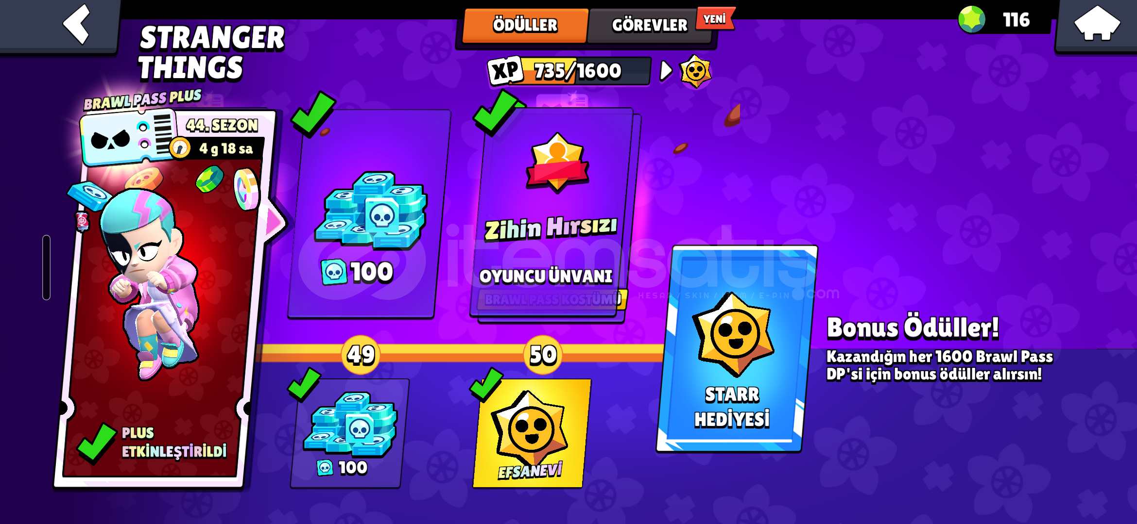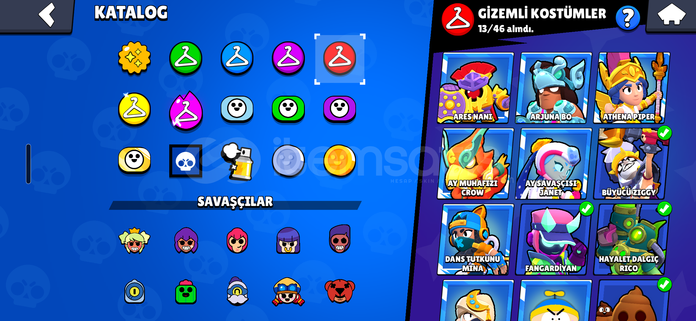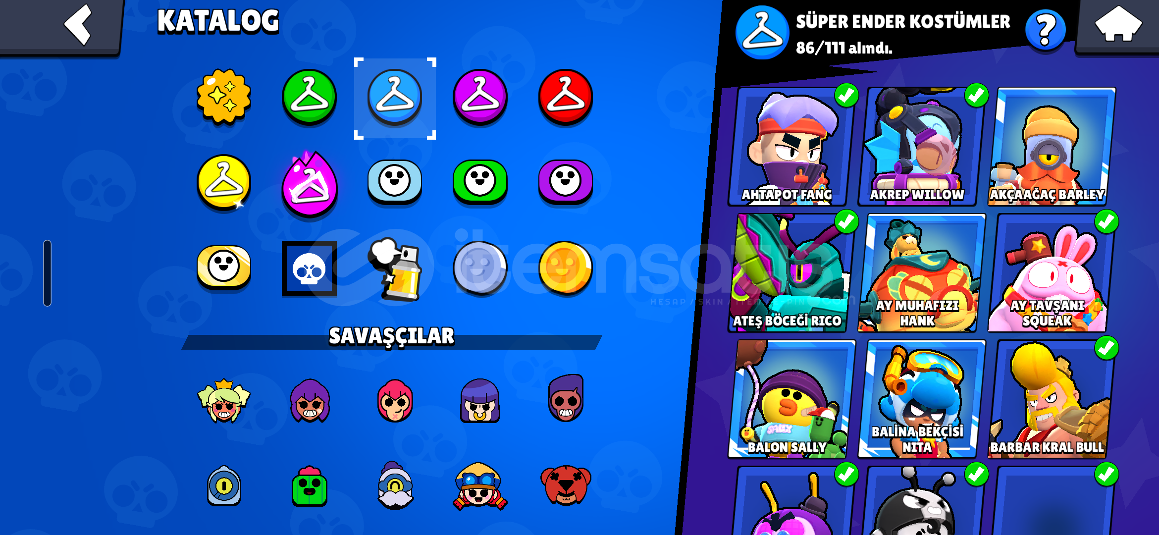 İçinde 30 dan fazla max karakter ve 30 dan fazla 1k karakter vardırBütün karakterler açıktırBu sezonun brawl pas plus u açıktırÇoğu sezon pass açılmıştır Nadir kostümler bulunmaktadır bu hesap bu fiyata kaçmaz alıcısına hayırlı olsun
