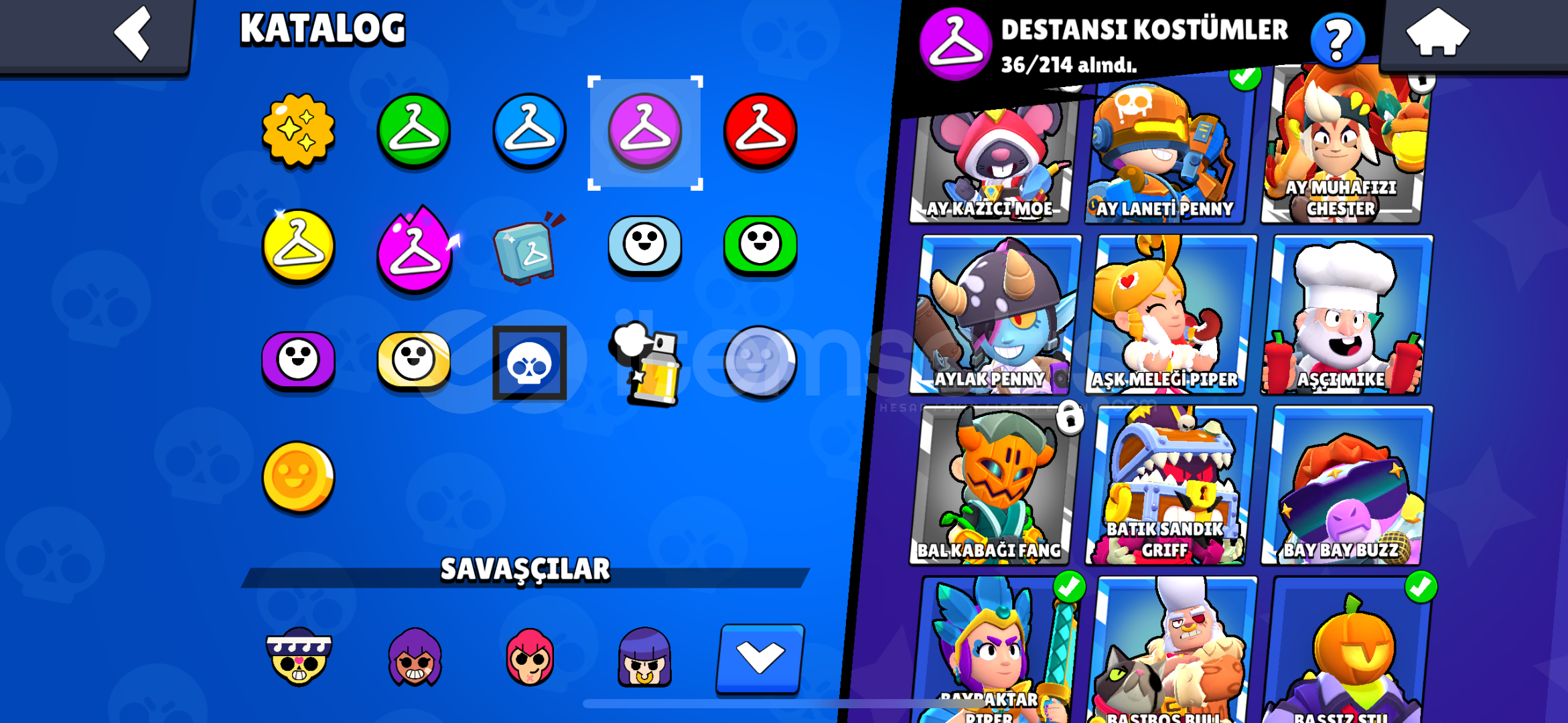 Default skinlerle beraber toplam 200Skin var31K70 Karakter13 karakter 1000 kupa126 ElmasPazarlık yapılır az da olsaBağ Değişecek üzerinize yapılacak
