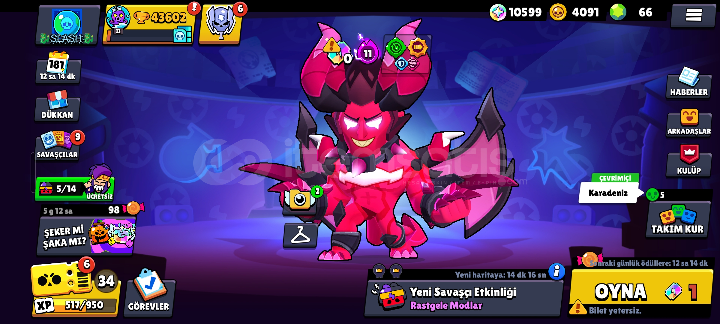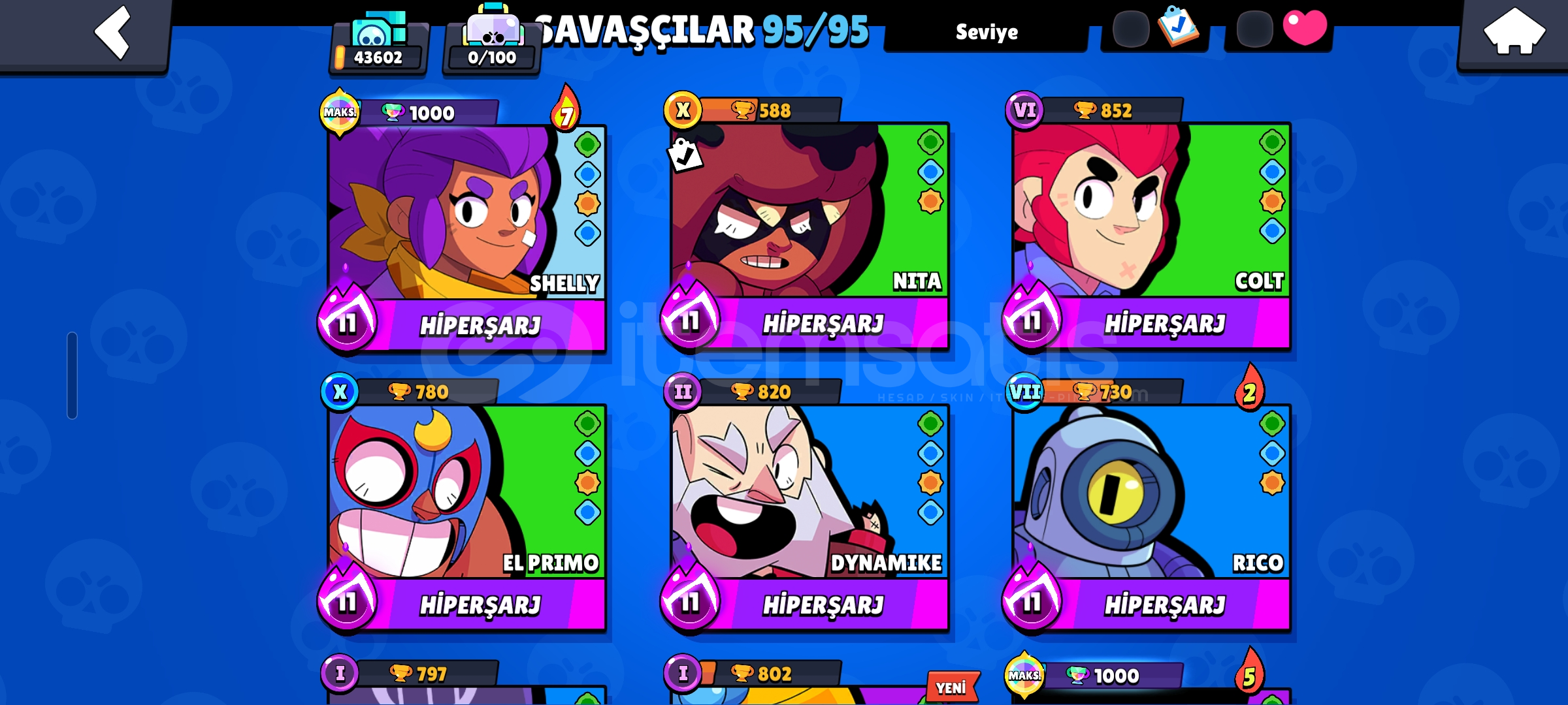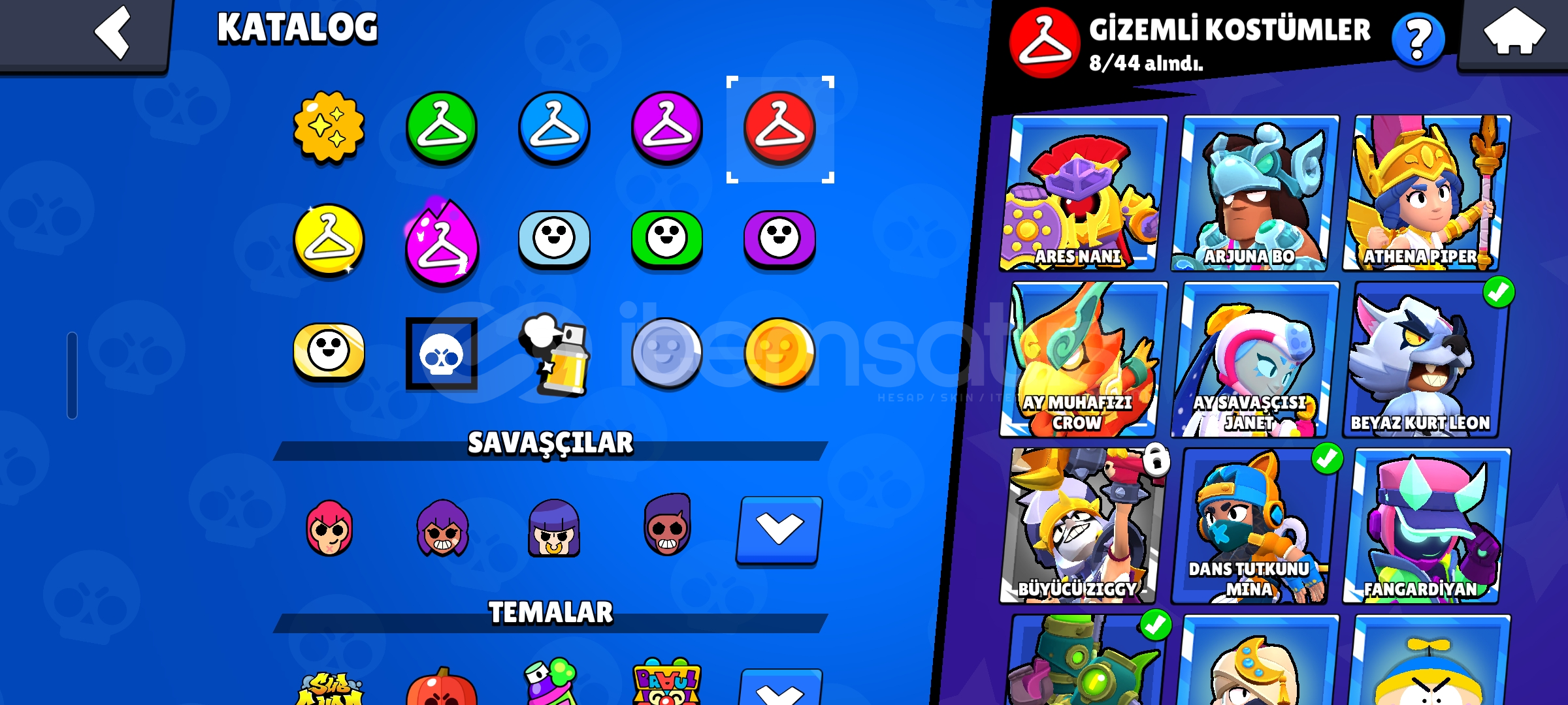 43k266 kostüm 10k mücevher korsan kostümleri max5 den fazla brawl ppass pllus alınmıştır 32 tane max level karakter