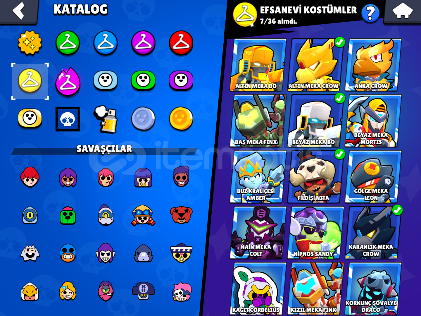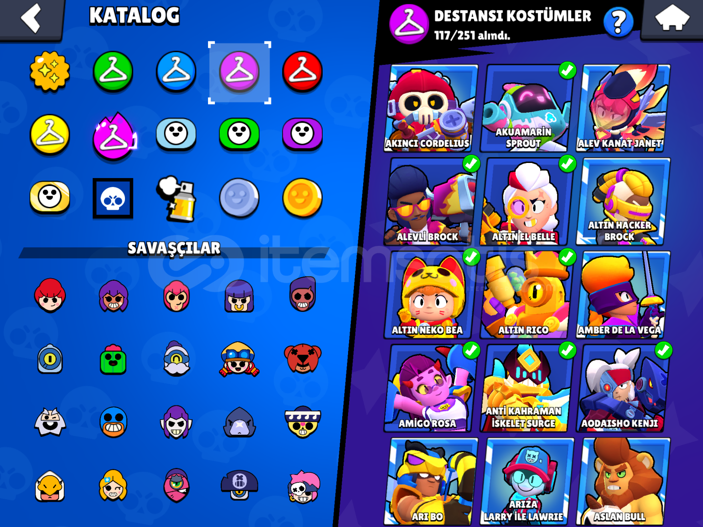 Kurt adam leon,kahraman bibi,elf penny,tıknaz darrly,sokak ninjası tara bu tür eski kostümler mevcutturESKİ BRAWL PASSLARkötü colettekral lousamuray ruffAltın el belleDoğuştan kötü buzzninja ashasi lolabu tür eski passlar varEski Power ligtenYönetmen buzzkaçakçı penny vardır yeşili29k 3v360 tane 11 seviye en kötğ yanıEKSİ 2K TAŞ VARDIReski Bir tek masteri vardır