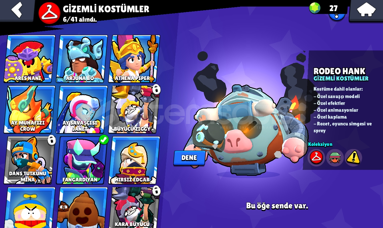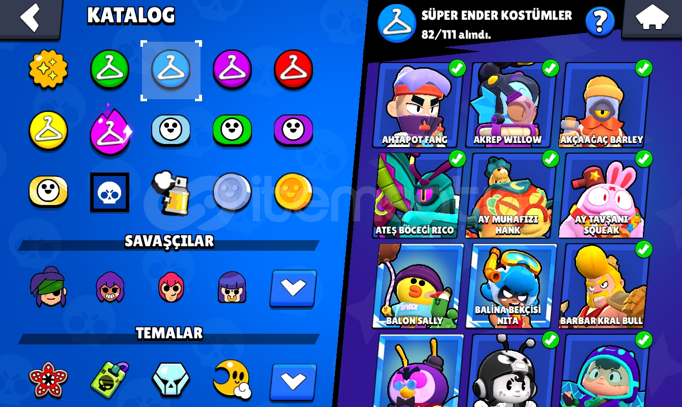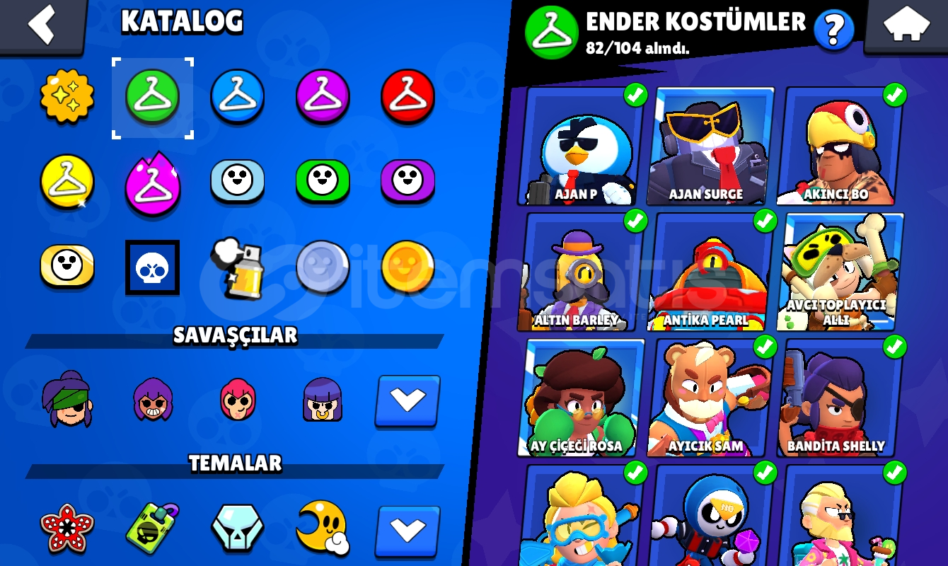 94 karakter 43 hipersarjlı karakter en düşük 7 seviye-82 ender kostüm-82 süper ender kostüm-59 destansı kostüm-6 gizemli kostüm-4 efsanevi kostüm-10 adet ünvanBedava isim değiştirme hakkı 60 tl brawl pass açma şansını kaçırmayın
