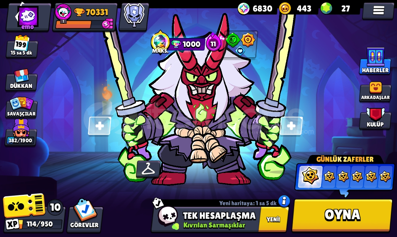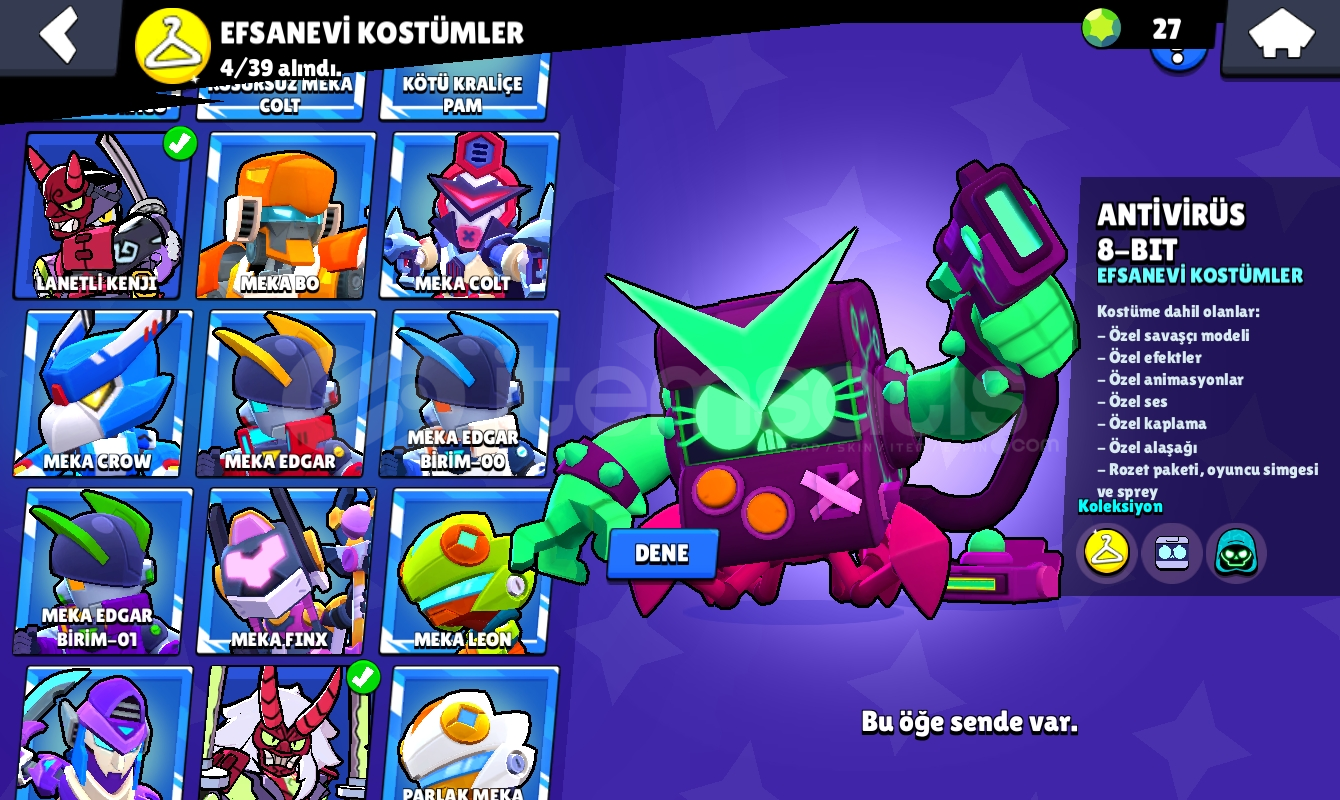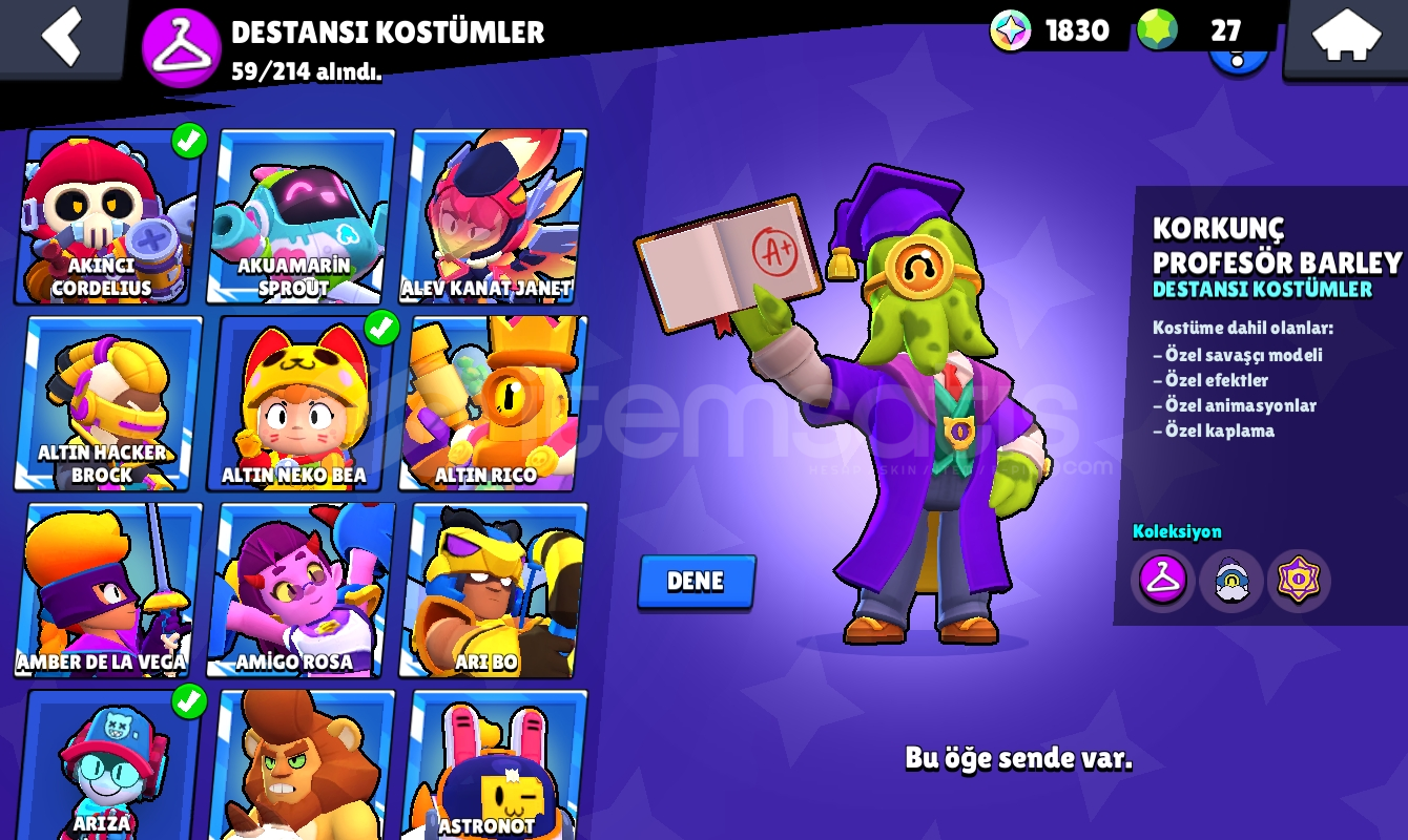 94 karakter 43 hipersarjlı karakter en düşük 7 seviye-82 ender kostüm-82 süper ender kostüm-59 destansı kostüm-6 gizemli kostüm-4 efsanevi kostüm-10 adet ünvanBedava isim değiştirme hakkı 60 tl brawl pass açma şansını kaçırmayın