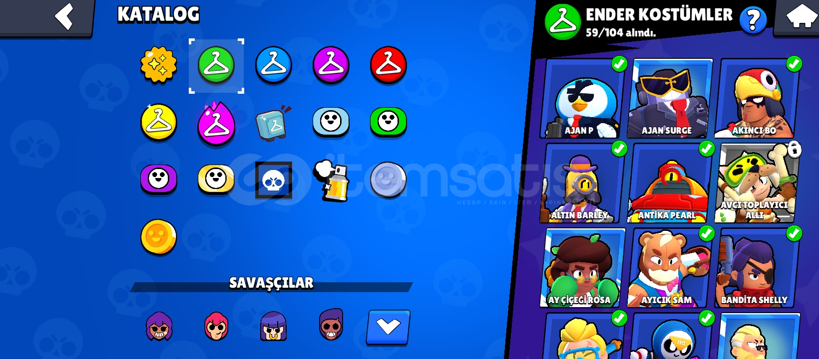 hesap 2022 cikisli hesaptq 71 karakter 7si efsanevi dir hesapta 59 ender/52 super ender/ 43 destansı/ 3 gizlemli /2 efsanevi / KOSTÜM vardir hesap 17.556 KUPA dir hesap ta. Karakterlerin genelindr kostüm vardır ve hesal nadir kostumler bulunmaktada bu fiyata baska bulunmaz. Pazarlık/indirim yapilir