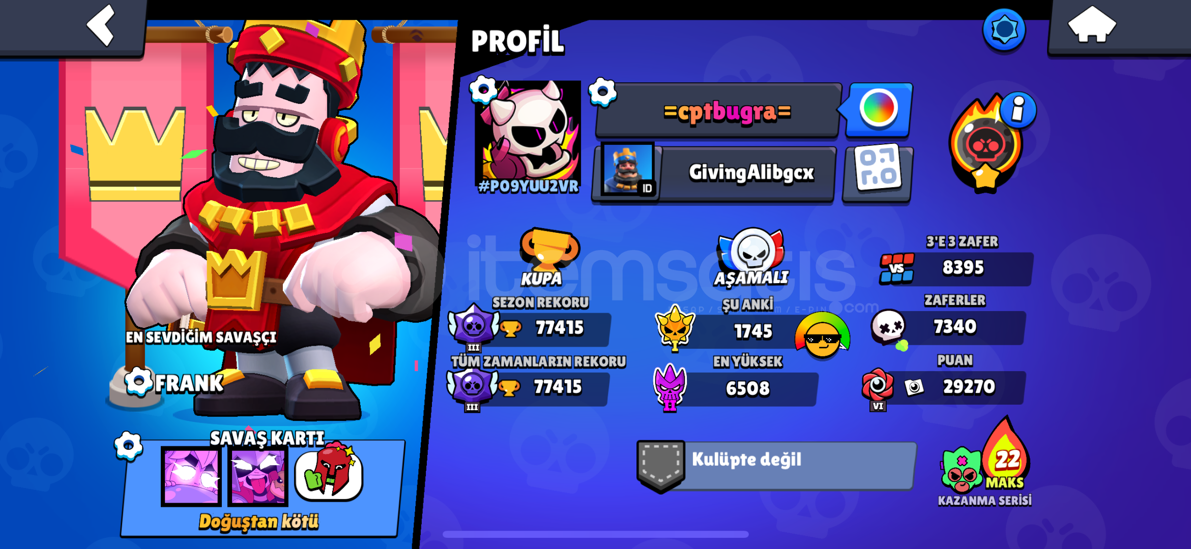 77.400 KUPA 97/97 KARAKTER AÇIK 88 TANE HİPER ŞARJ GÖKTAŞI 2 PRO PAS AÇIK 4200 ID REWARS MAX HESAP 590 KOSTÜM NADİR KOSTÜMLER VAR İNDİRİM VARDIR ⭐️ajan colt ⭐️⭐️ retbrock ⭐️⭐️ barbar bul ⭐️⭐️ sokak ninjası tara ⭐️⭐️ dünya finali leon ⭐️⭐️ alevli brock ⭐️ ...