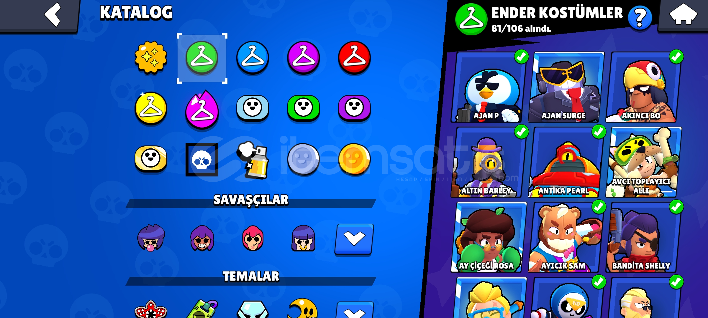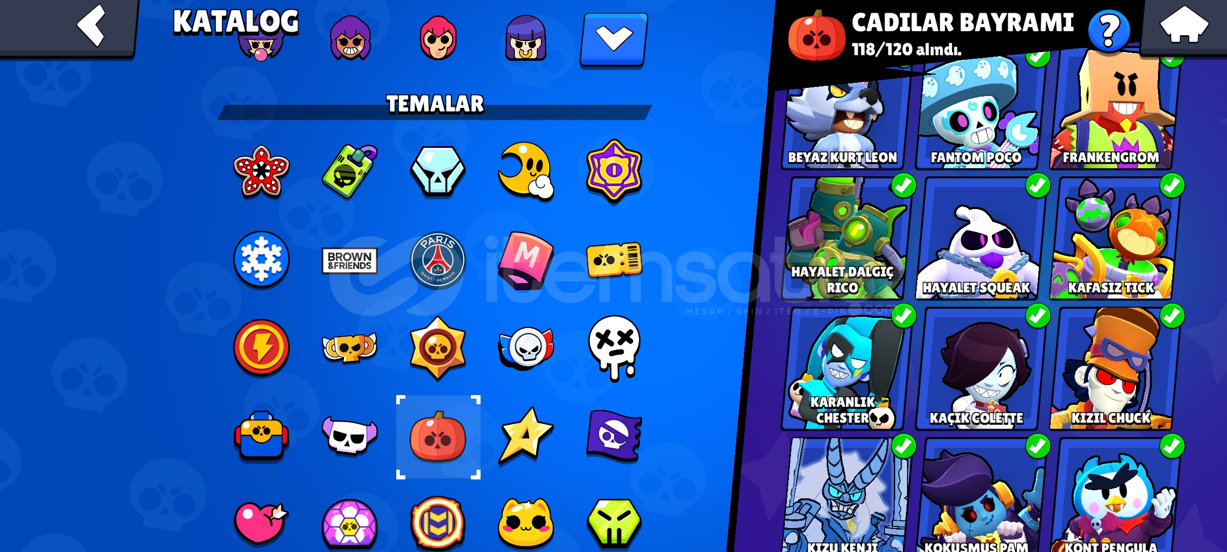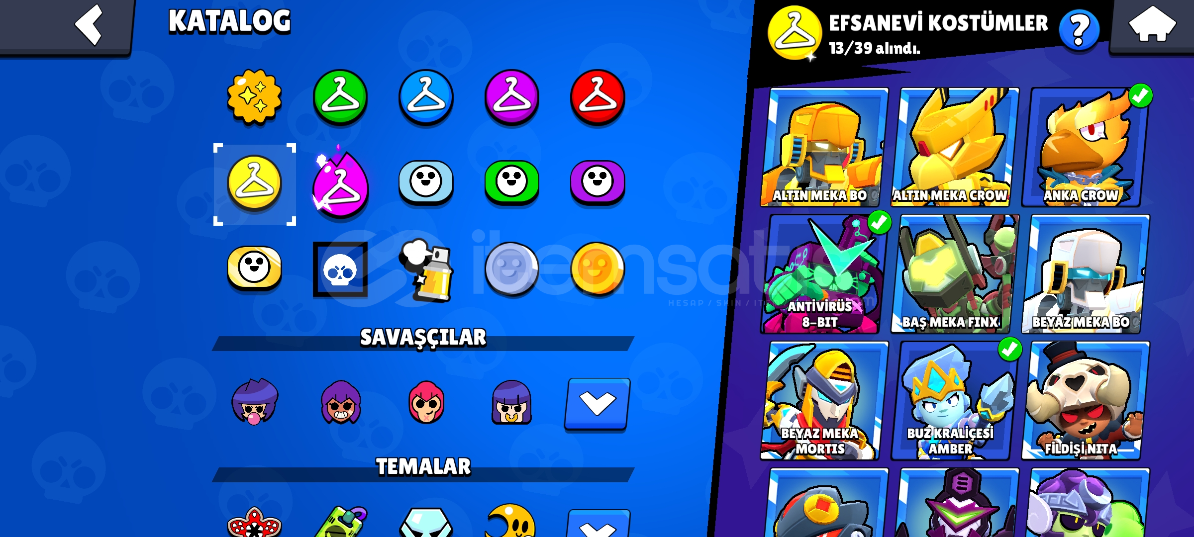 🎃 Cadılar Bayramı Özel Hesap Paketi!💎 Ana Hesap Özellikleri:- 2000k+ elmas harcandı- 121 kozmetik öge (kostümler + rozetler dahil) mevcut, bunların 121 i açık- 81 Ender, 90 Süper Ender, 119 Destansı, 11 Gizemli, 13 Efsanevi kostüm- 4 Hiper Şarj kostümü- 63k kupa, 2 Prestij, Güneş Şöhreti, 20k+ 3v3 zaferi- 2019’dan kalma nadir ve artık alınamayan özel kost&uum...