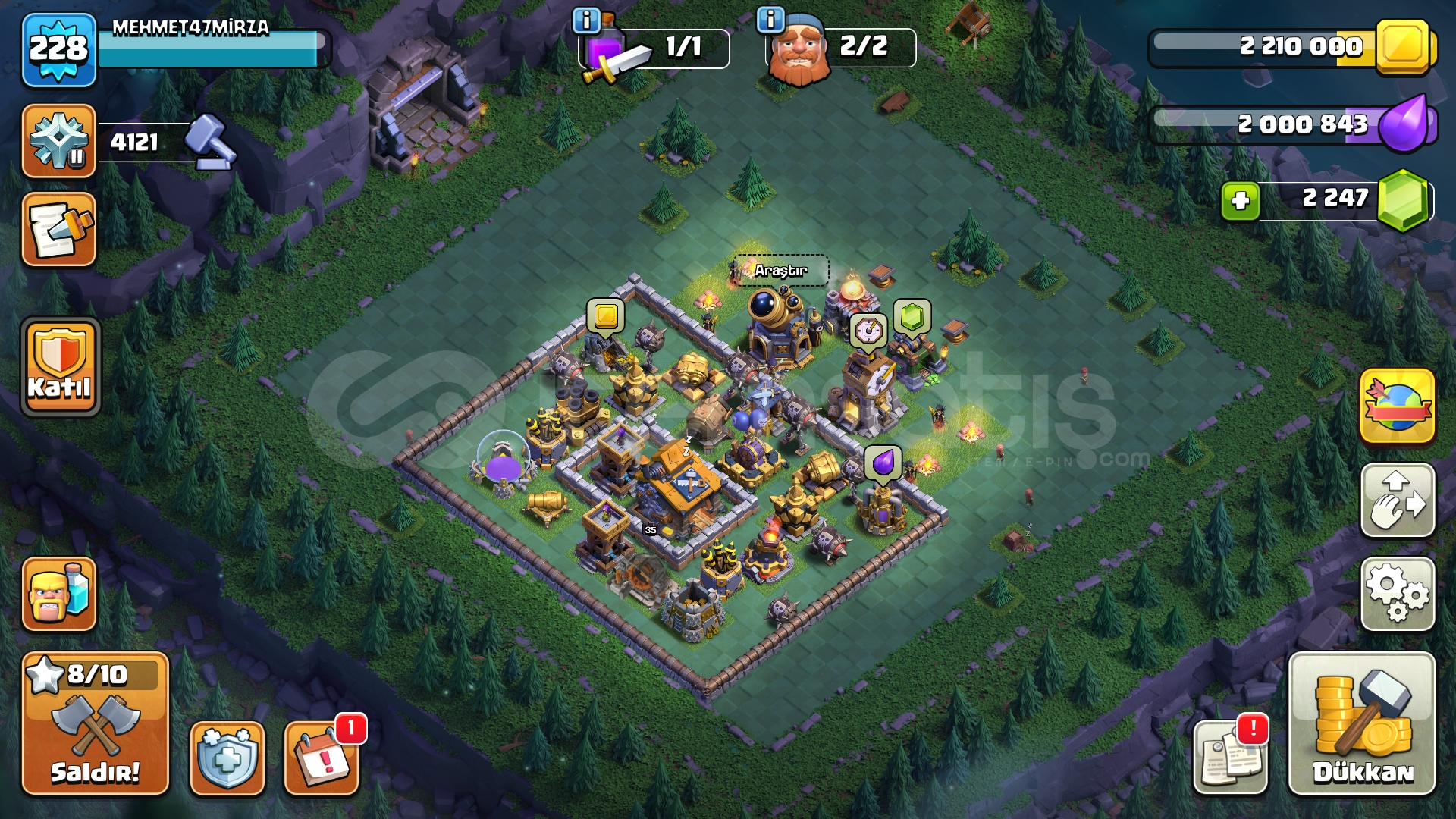 Hesap 16 bb 2200 Elmas var 6 inşaatçı 2 senedir oynamıyorum en son ana köy fullemiştim yan koyler duvarlar tek basılcak 7 senelik güzel bir hesap o da