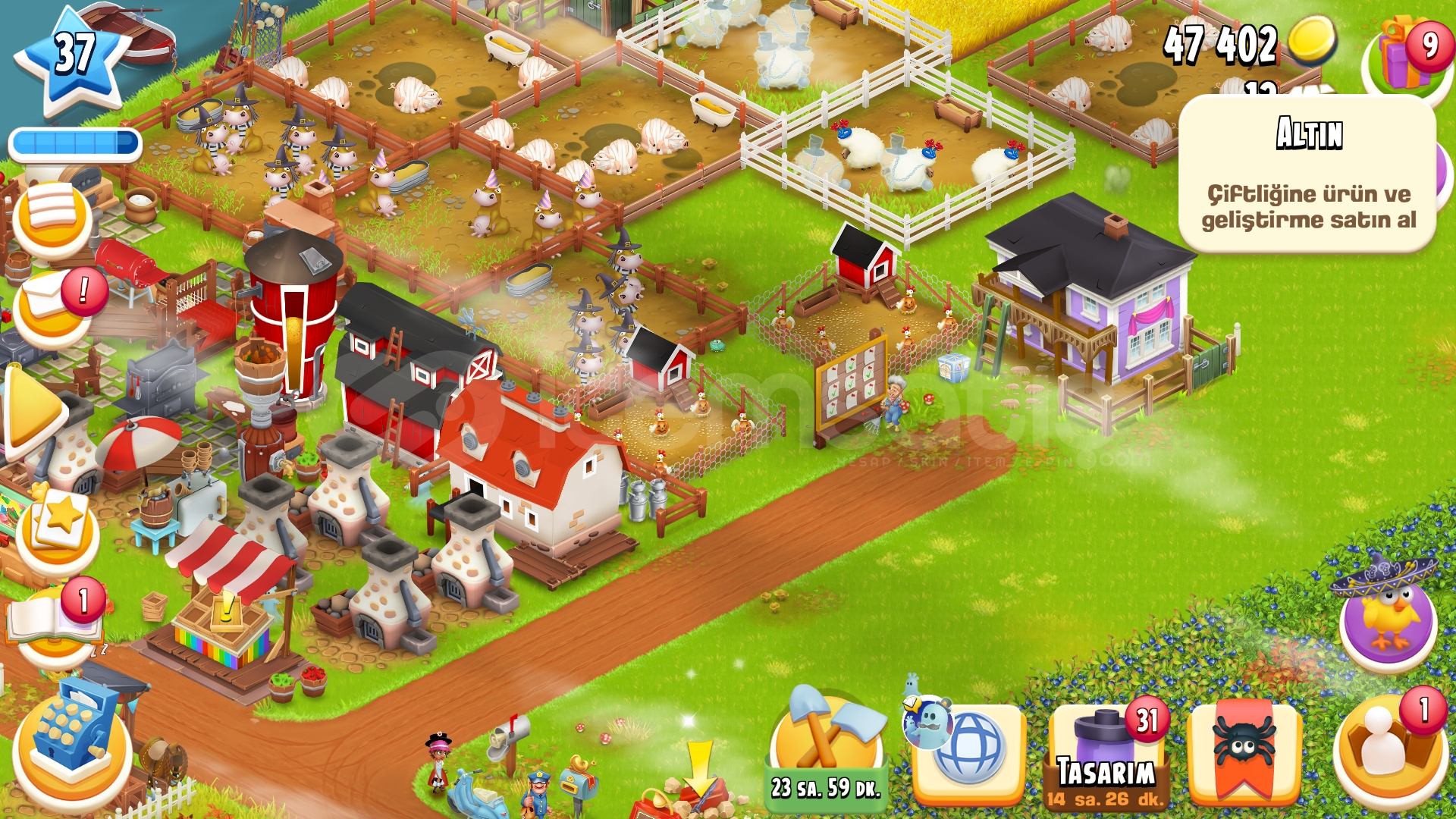 Hay day 37 seviye baya bi çalı ekili 500 e yakın onları biçip pazarda elmasa çevirirseniz ordan 700 k ya yakın altın gelicek Pazar yerinde 29 tane stand var o da güzel bir hesap